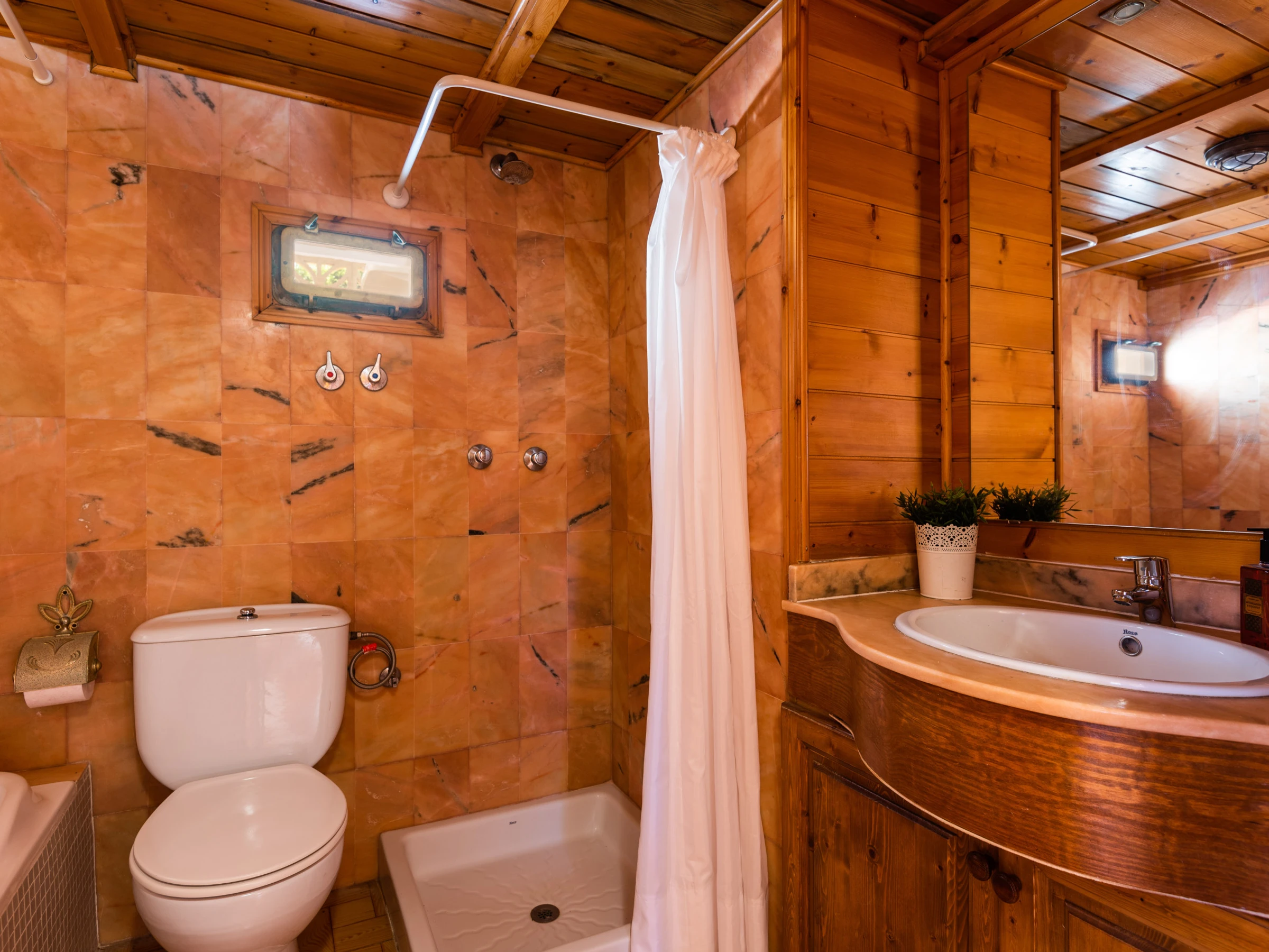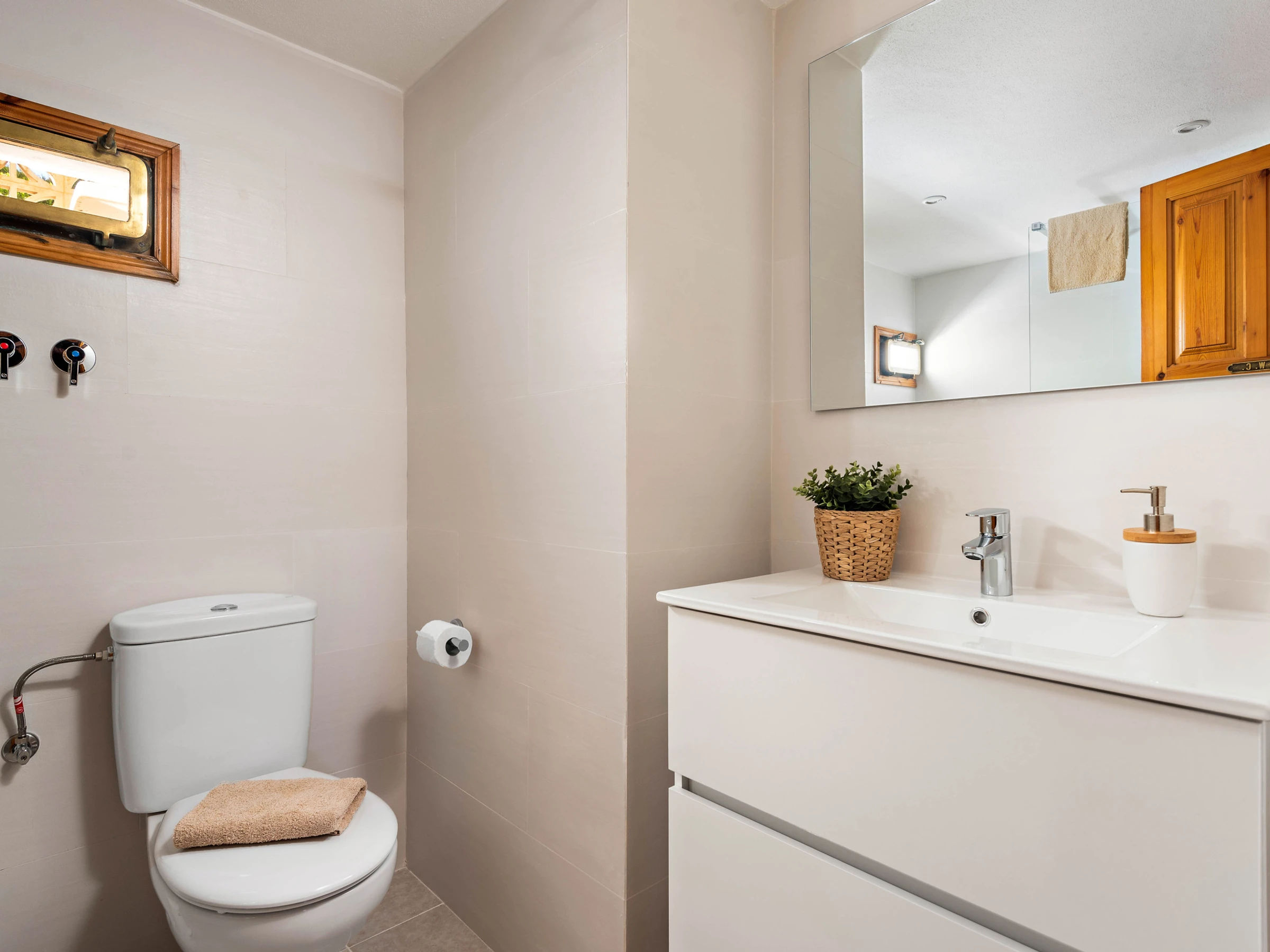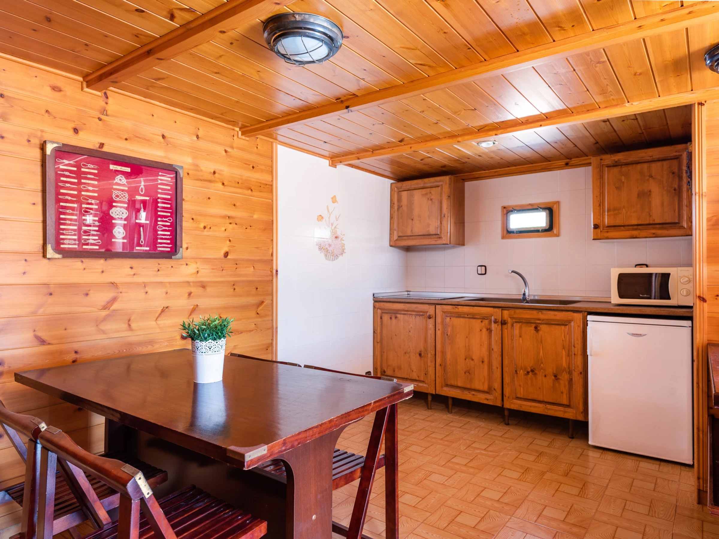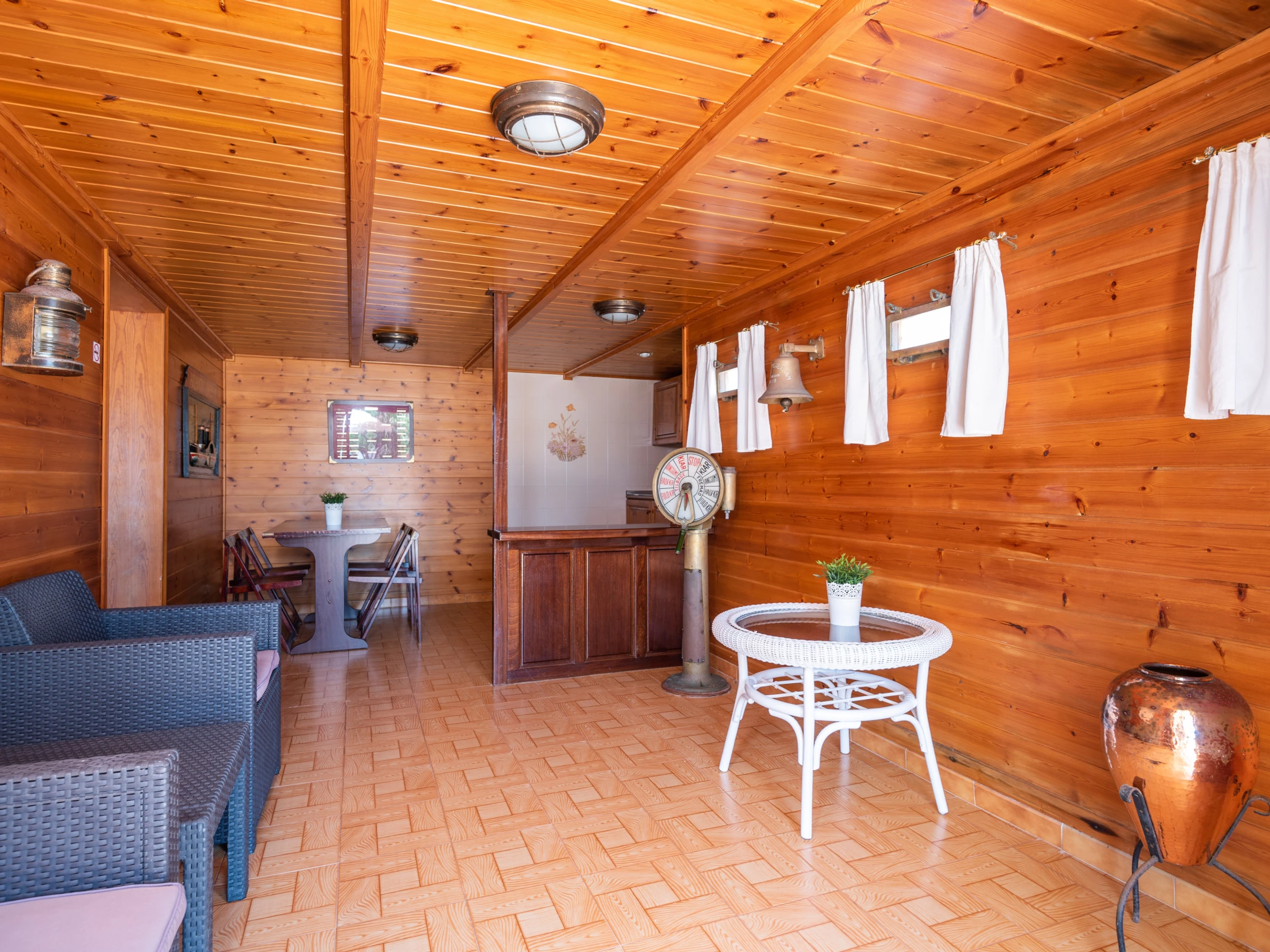 El interior está completamente equipado con aire acondicionado en la sala de estar y algunas habitaciones, lo que resulta perfecto para los días más calurosos. La cocina independiente está totalmente equipada con electrodomésticos como nevera, lavadora, horno, lavavajillas, microondas, tostadora, cafetera y otros utensilios que facilitarán la preparación de comidas familiares.