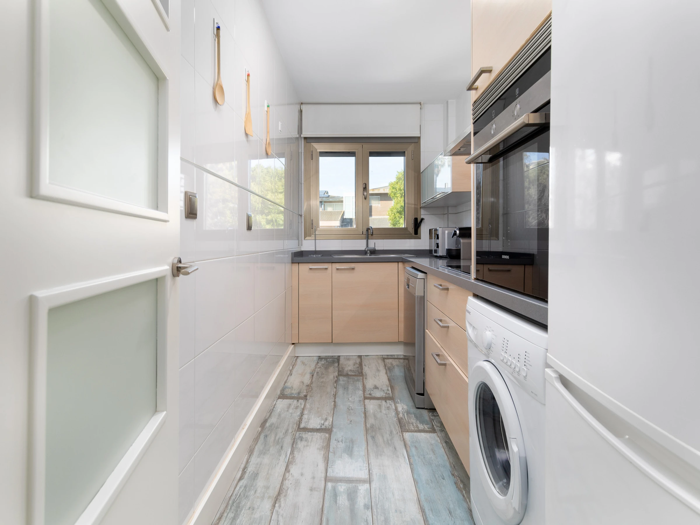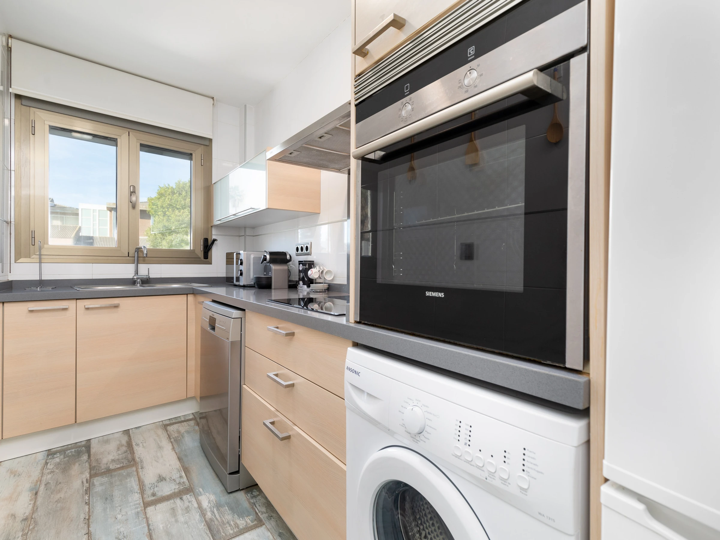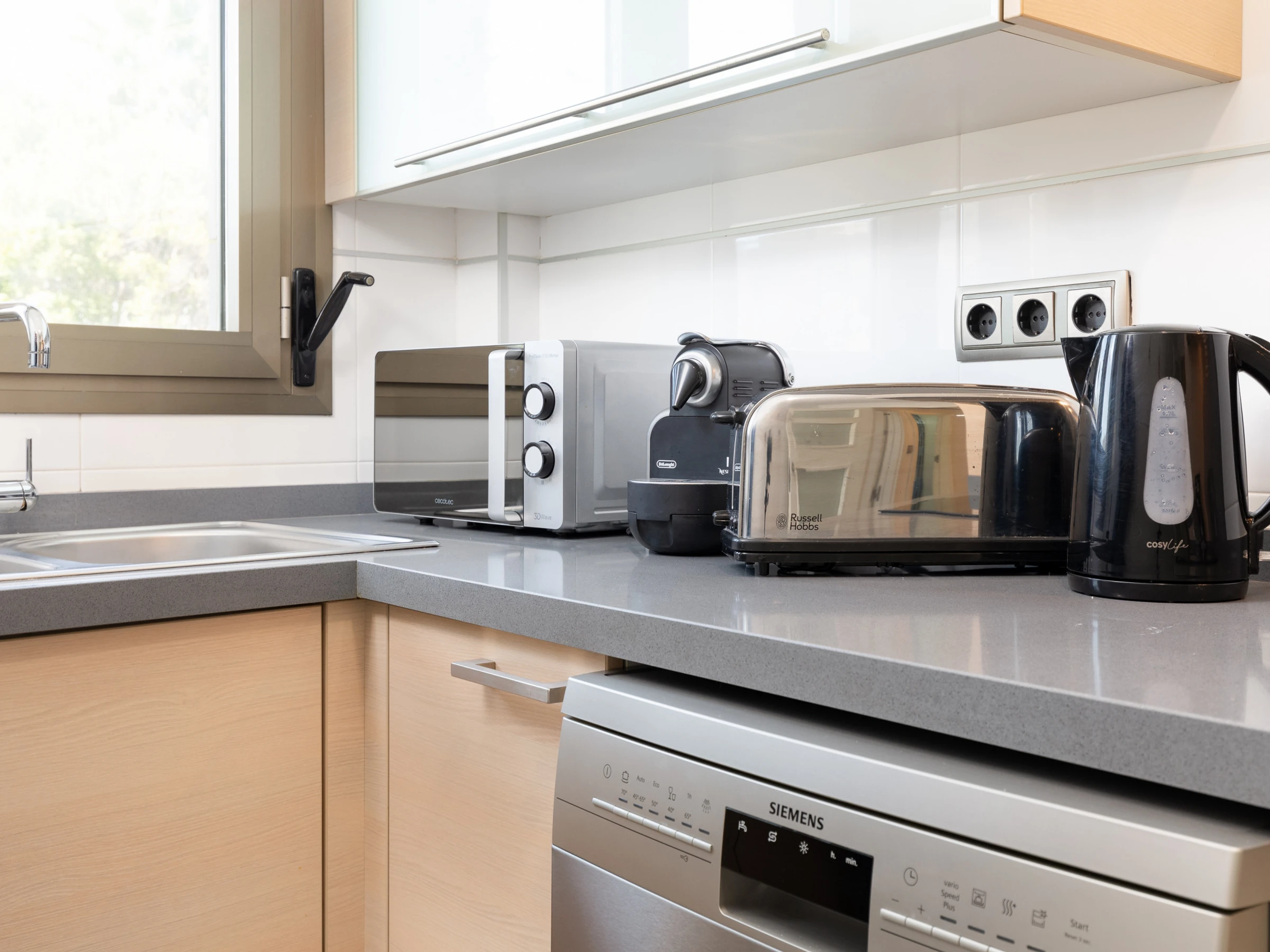 - Práctica cocina independiente totalmente equipada, con lavavajillas, lavadora, microondas, horno, frigorífico/congelador, cafeteras Nespresso e italiana, hervidor, tostadora, batidora…