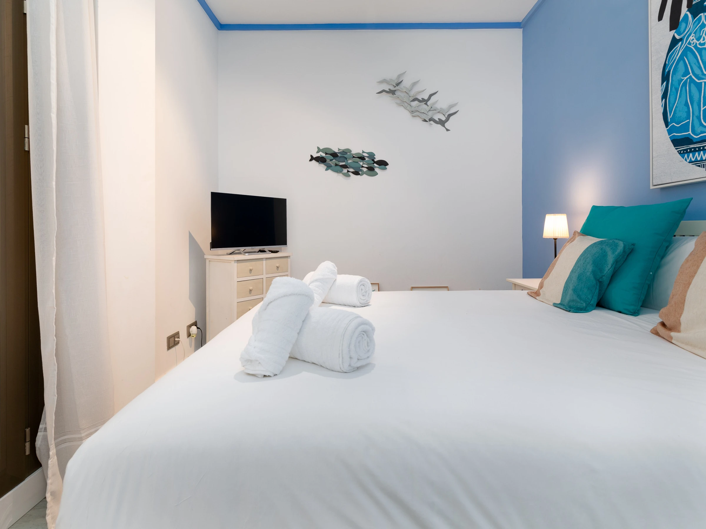 Estupendo apartamento situado en primera línea de playa. Puede alojar hasta 4 personas. Cuenta con parking privado y un bonito patio con zona de estar con mesa y sillas, en donde podrás desconectar y disfrutar del sabor del verano.
