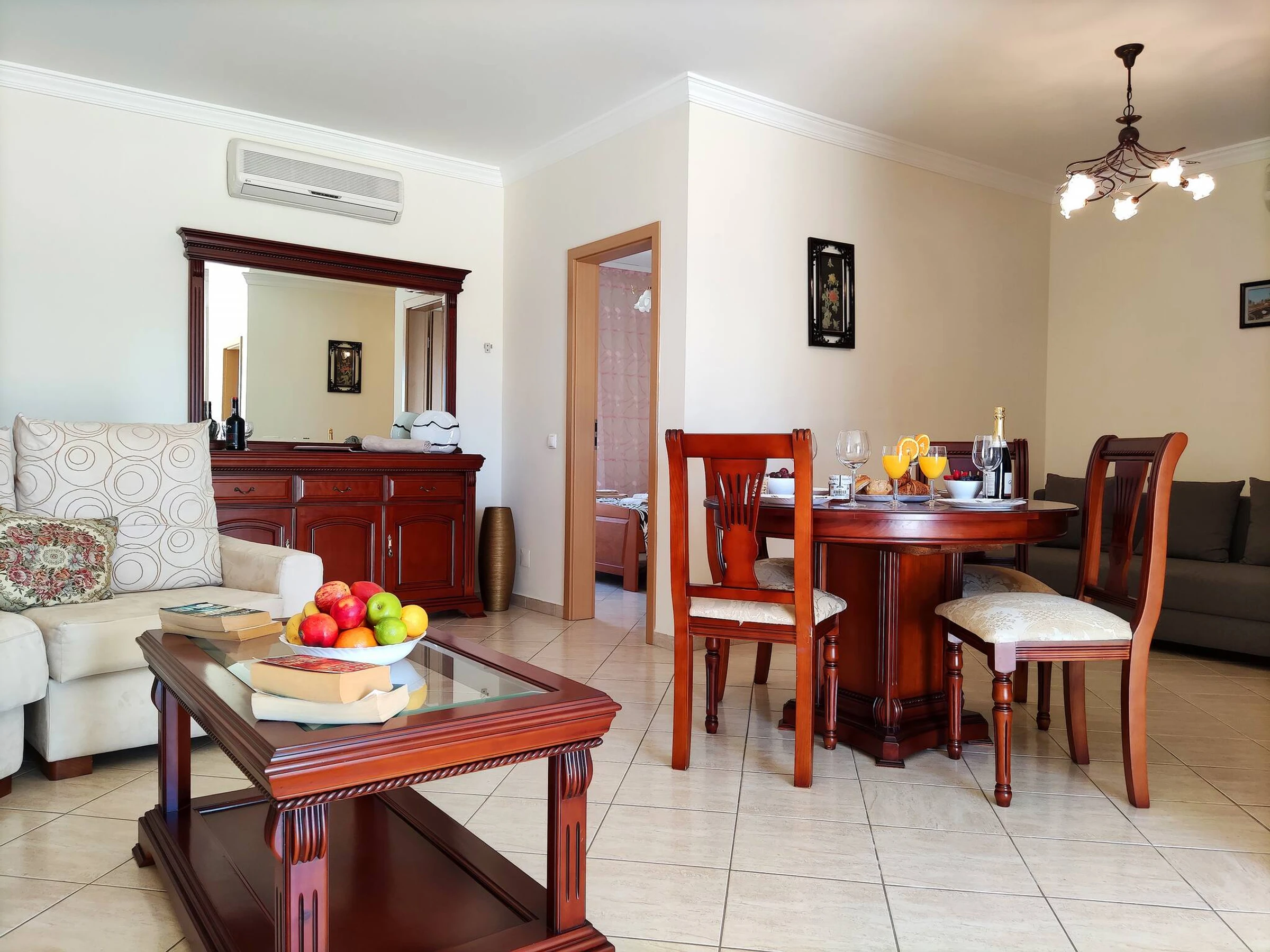 El apartamento tiene 2 dormitorios, 2 baños, decorado de manera tradicional portuguesa, tiene una terraza con barbacoa, WiFi gratuito y canales internacionales. En el área de comedor hay un sofá-cama adicional, una cuna y una trona, una cocina bien equipada con lavavajillas.