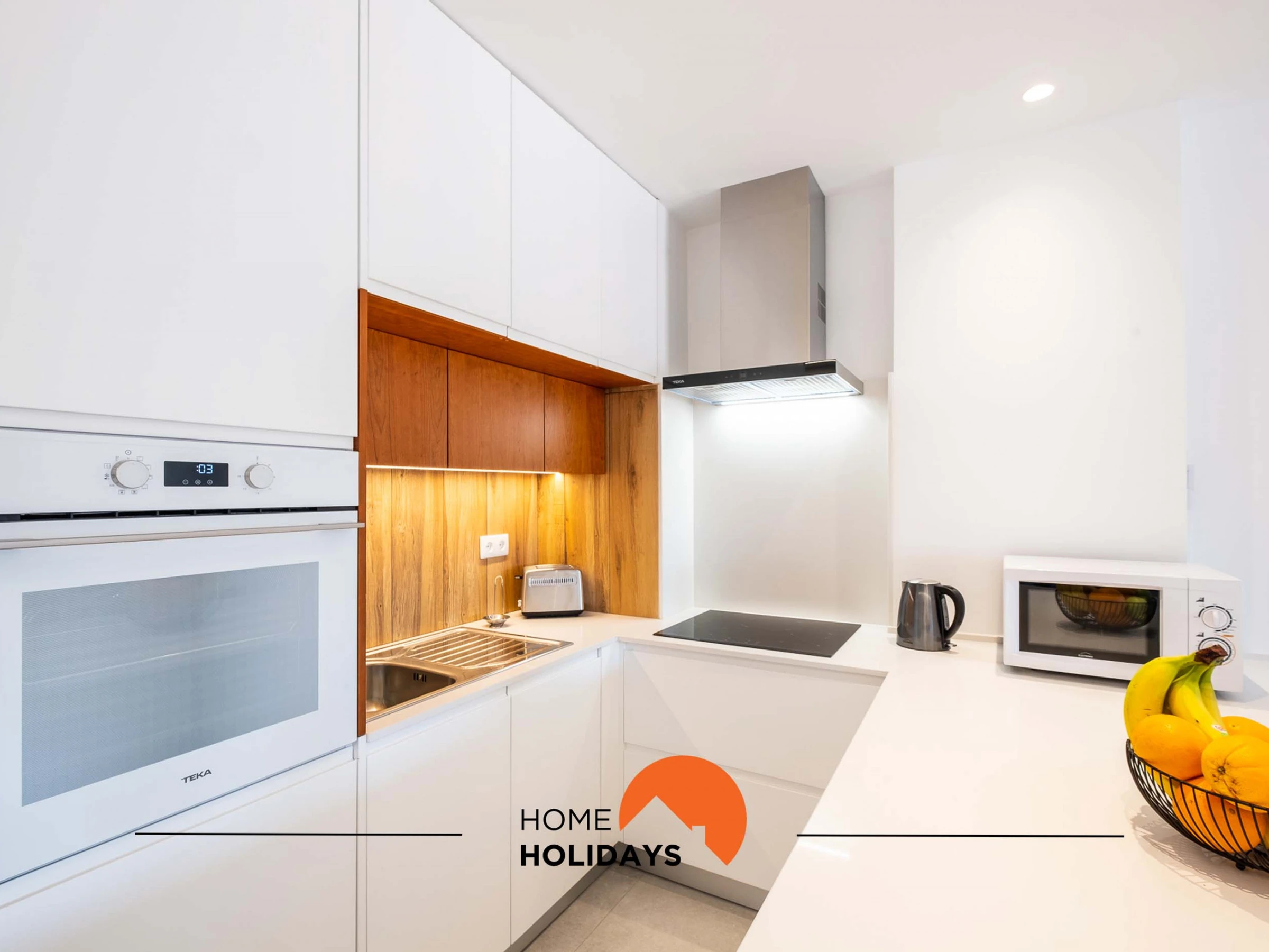 La cocina, de mixta: gas y eléctrica, está equipada con nevera, microondas, horno, congelador, lavavajillas, vajilla/cubertería, cafetera, tostadora, hervidor de agua, exprimidor y fogones.