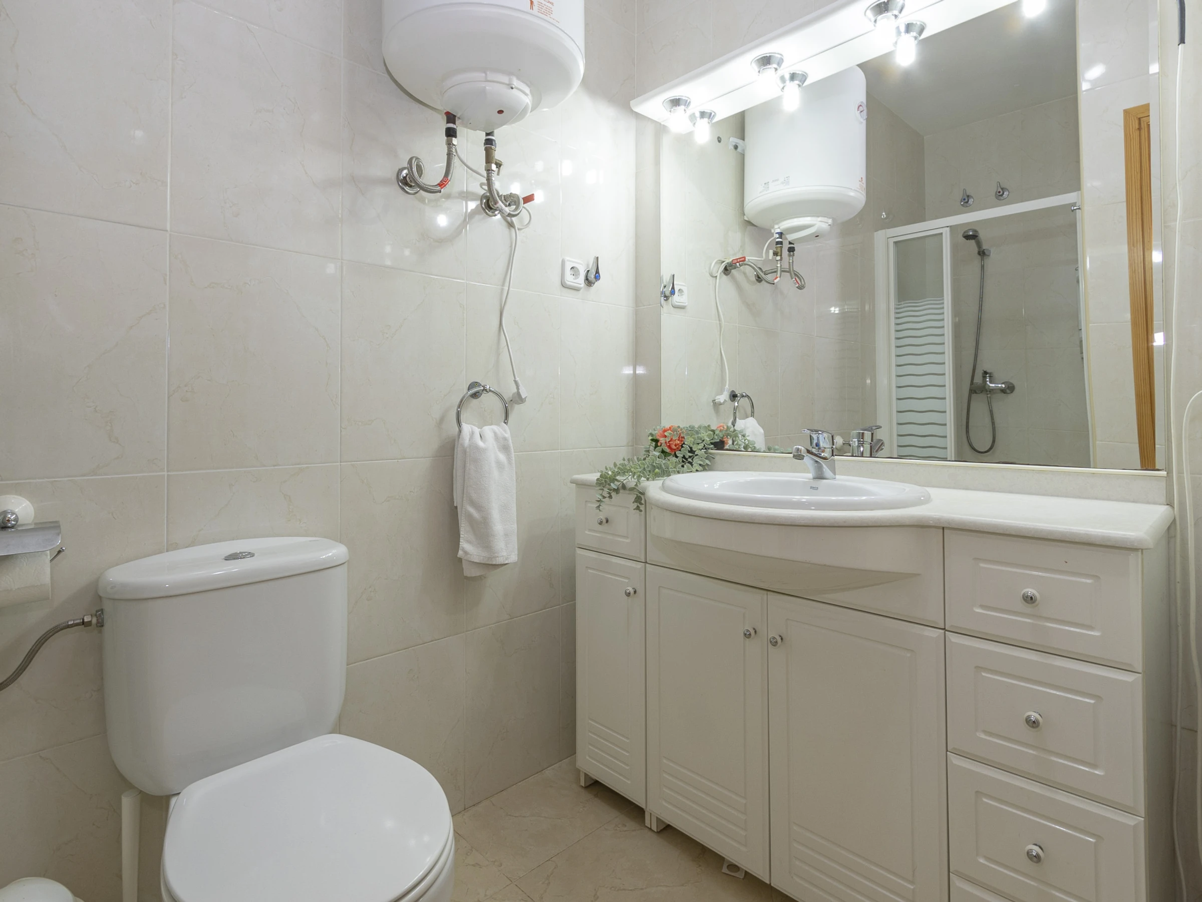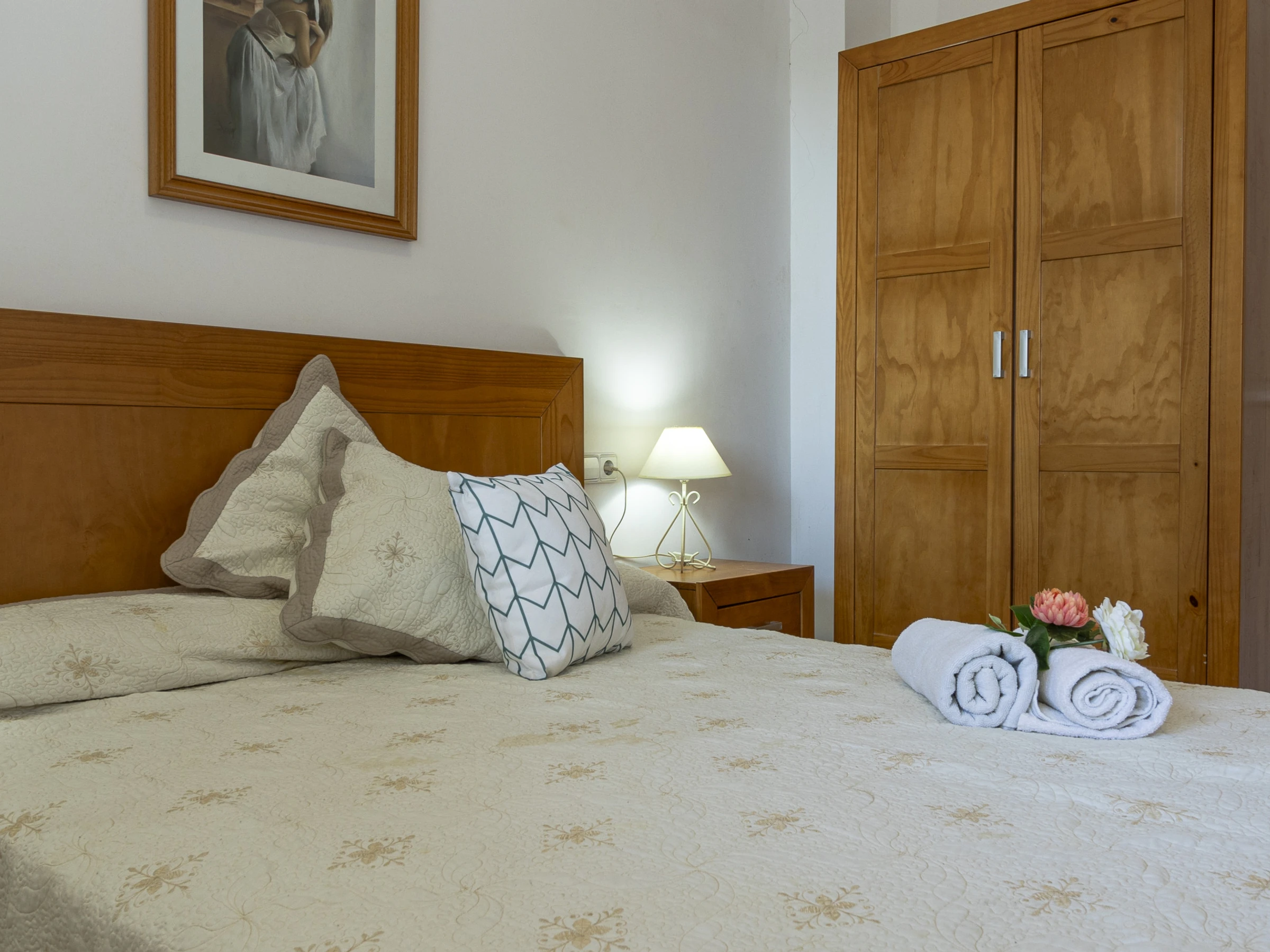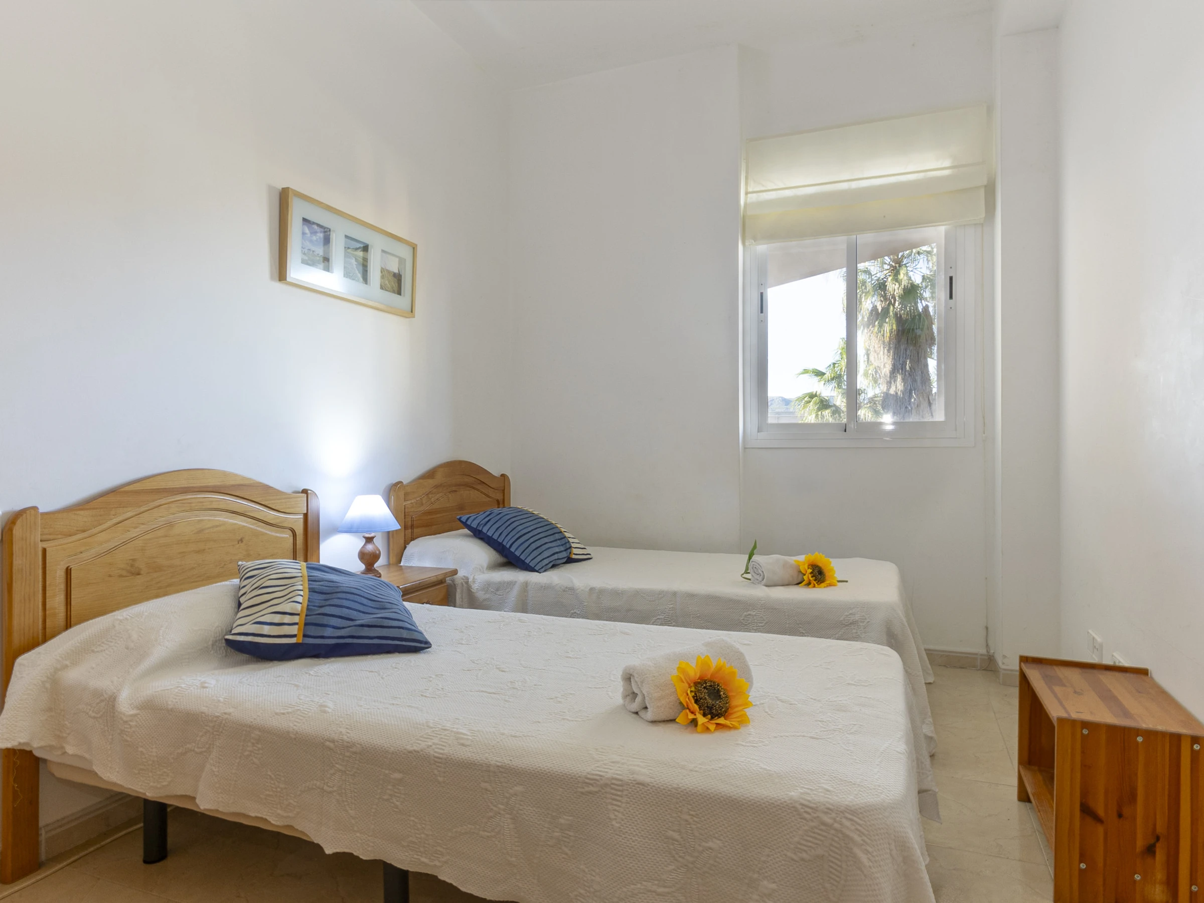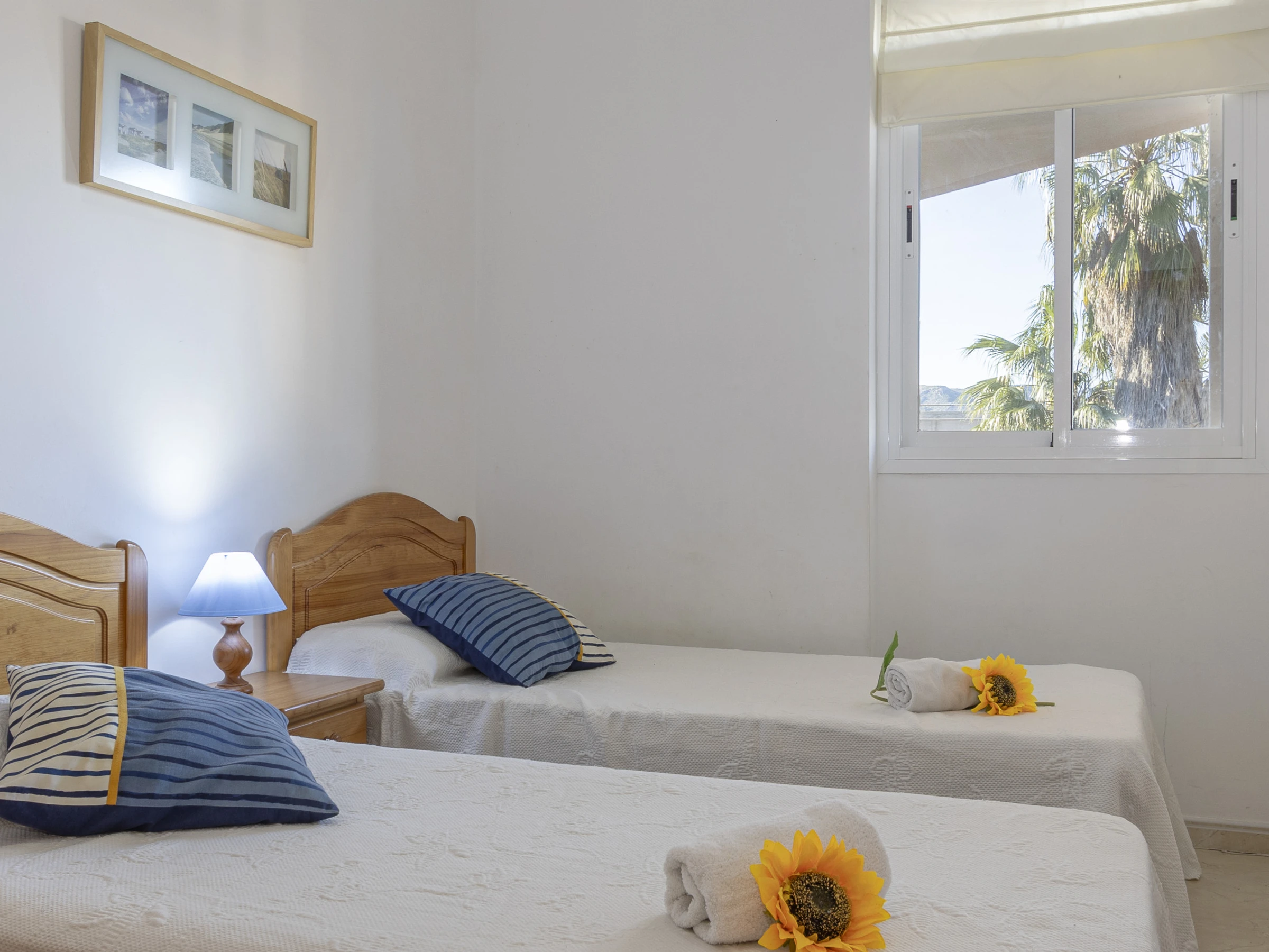 El dormitorio principal, con cama de matrimonio, dispone de aire acondicionado. El segundo dormitorio cuenta con dos camas individuales de 90 cm. Ambos comparten un cuarto de baño.