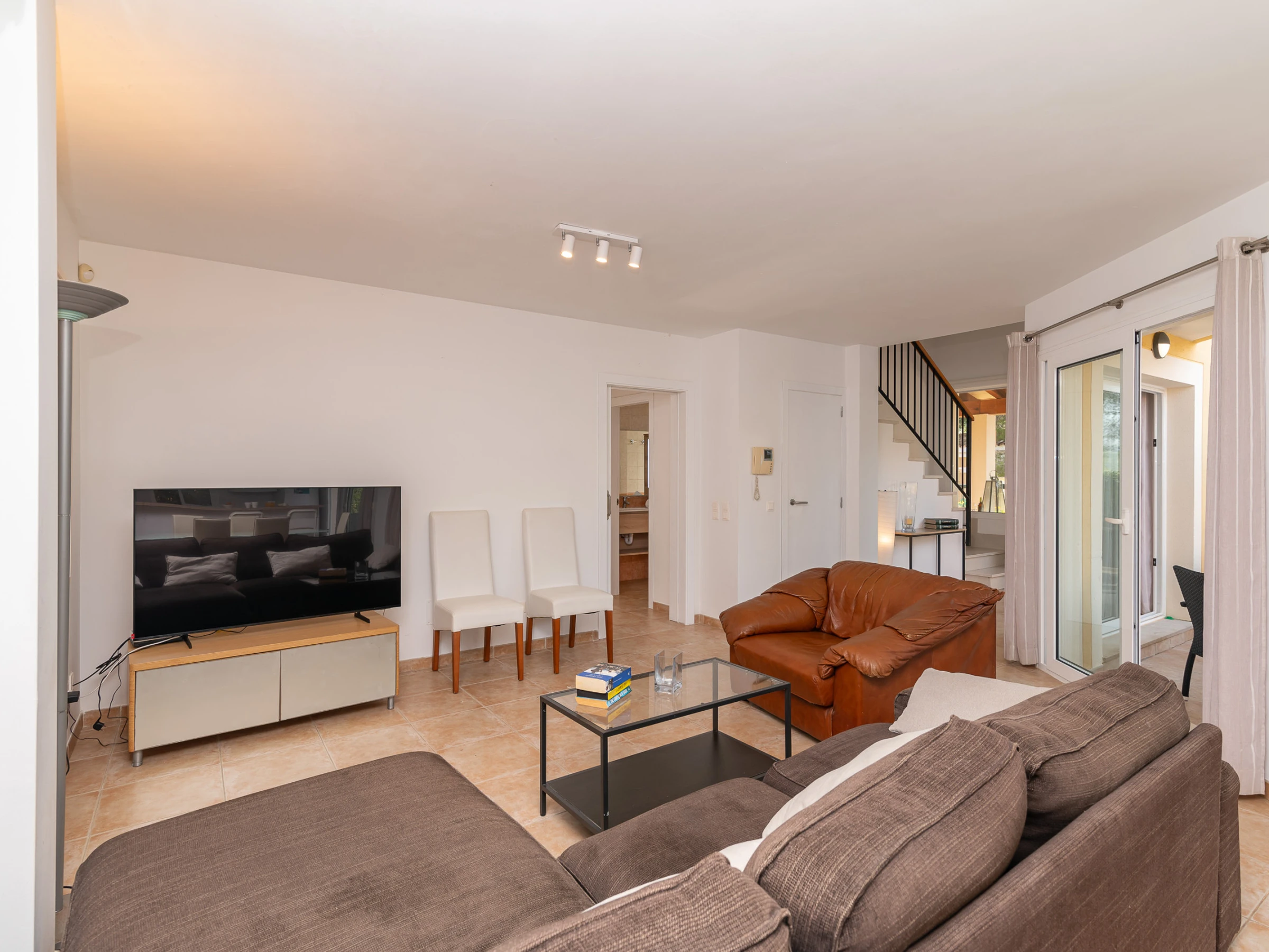 En la planta baja de la villa encontrará una moderna cocina americana totalmente equipada, que se abre a un espacioso salón-comedor, donde grandes ventanales permiten que la luz natural inunde todo el espacio, creando un ambiente cálido y acogedor. En esta planta también se encuentran dos habitaciones: una con cama doble y otra con dos camas individuales, así como un baño completo con ducha.