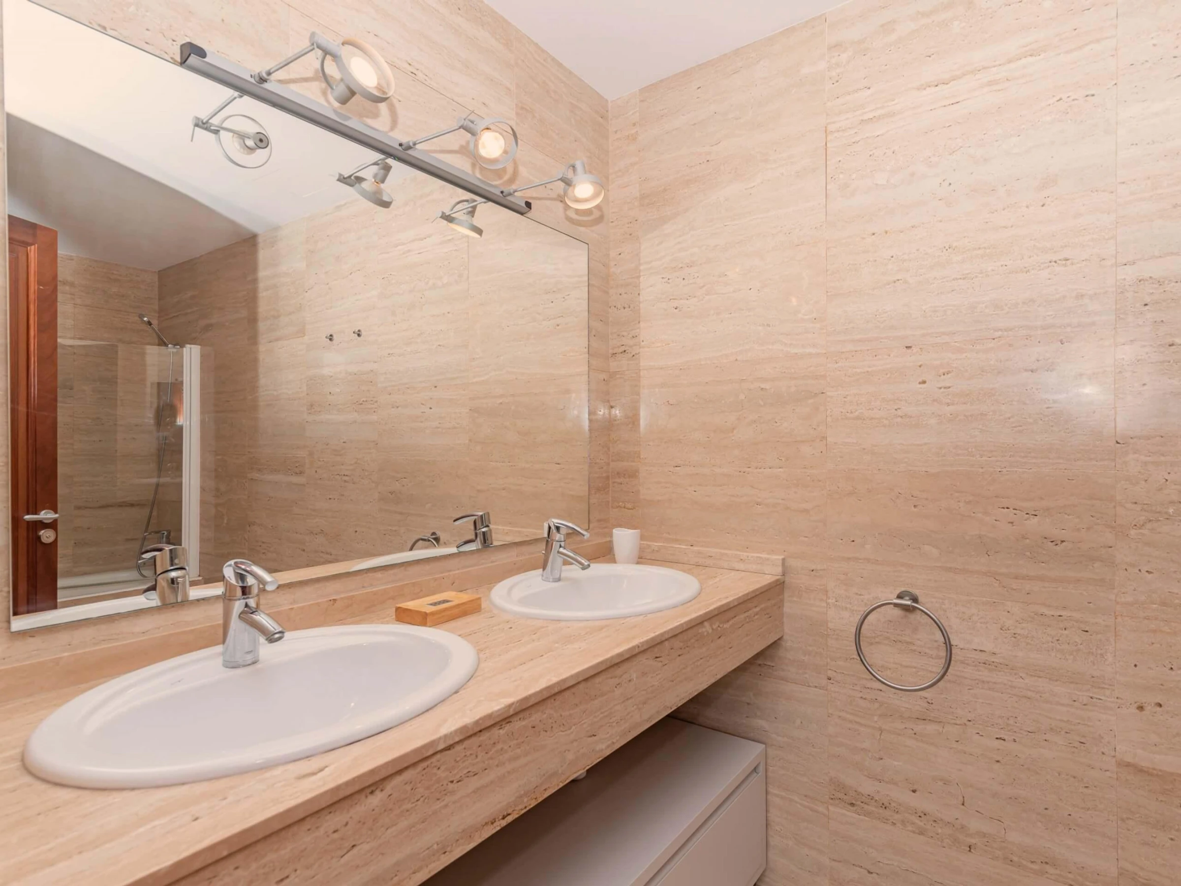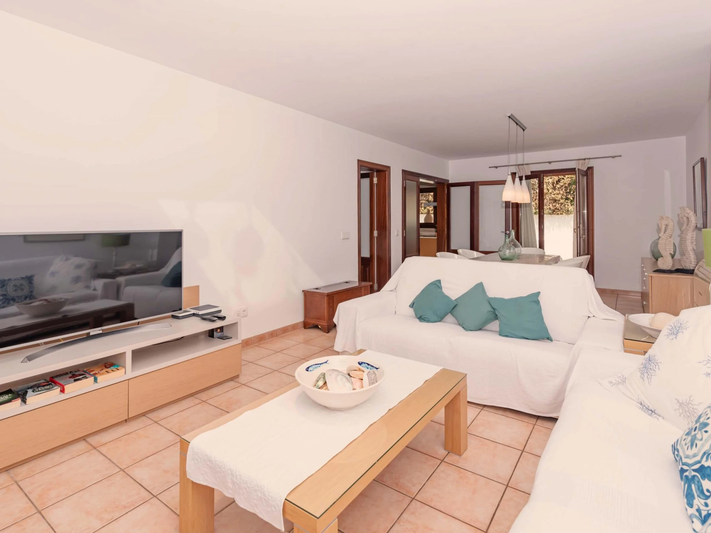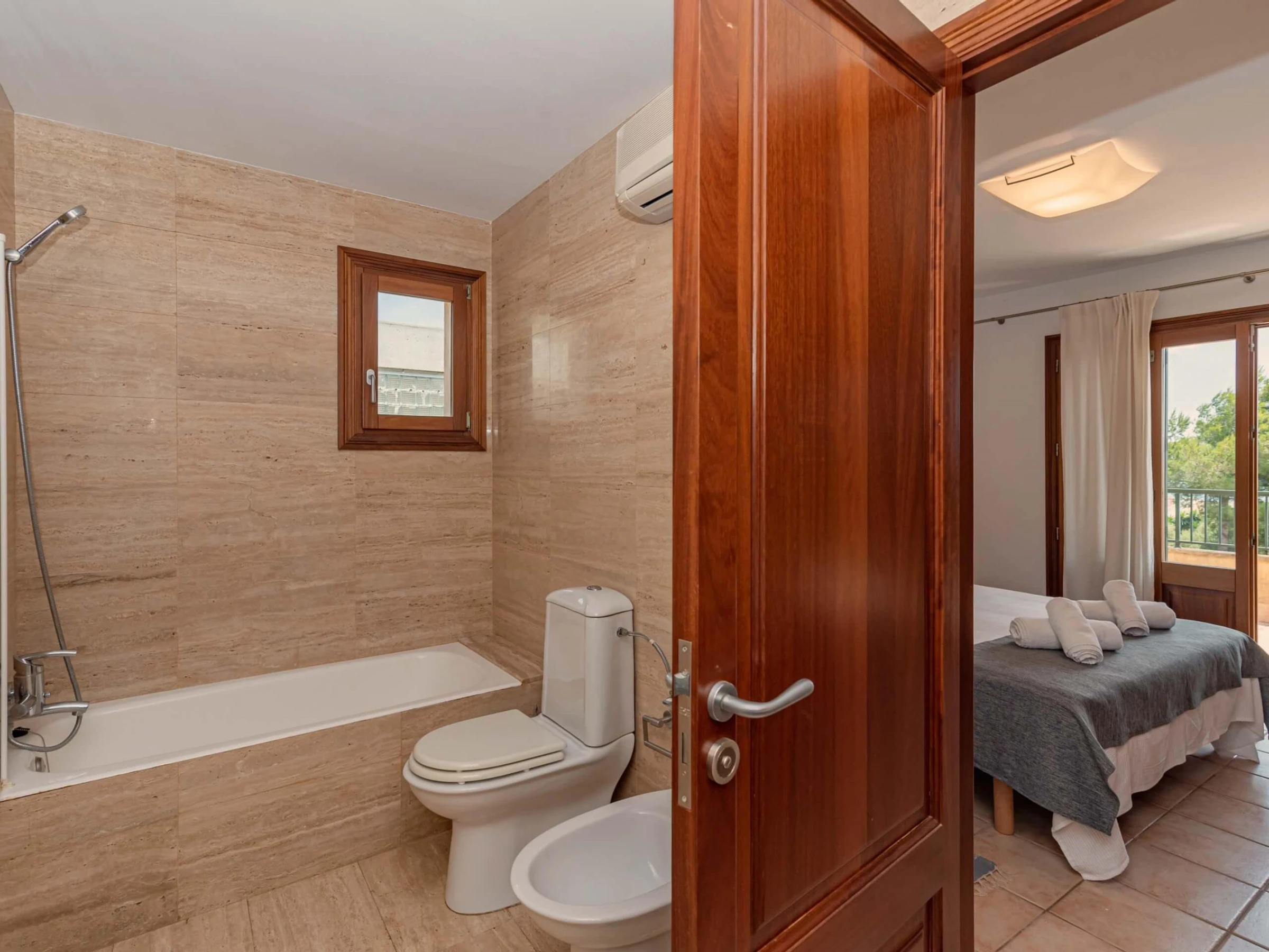 La villa cuenta con cuatro amplios dormitorios, uno de ellos con baño privado en suite, y dos baños adicionales que garantizan la comodidad de los huéspedes. Las habitaciones están decoradas con un estilo elegante y moderno, creando un ambiente acogedor y relajante. Una de las habitaciones se encuentra en la primera planta, lo que proporciona una mayor privacidad.