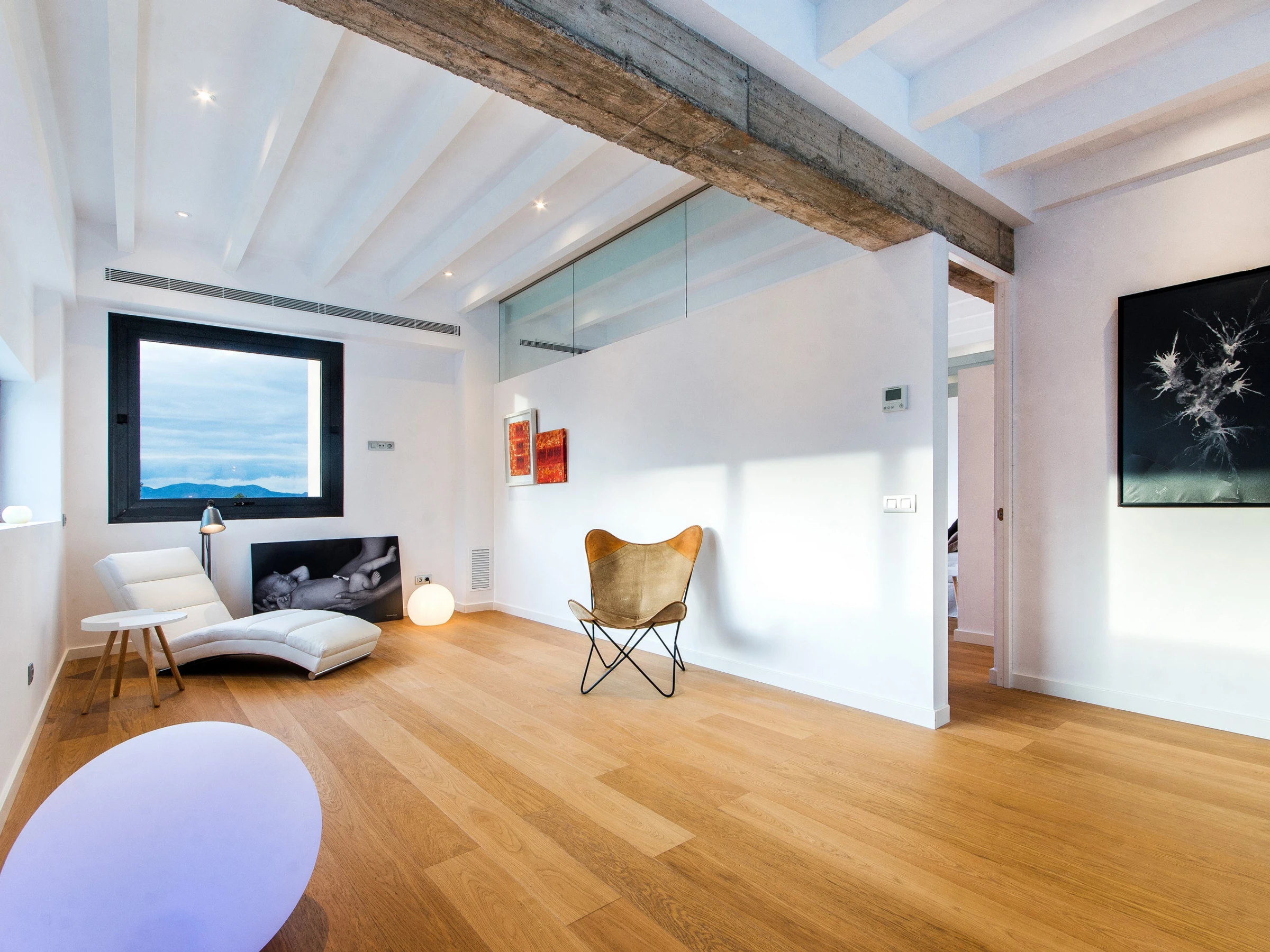 En el rellano hay una zona informal para sentarse con un diván que es perfecto para leer tranquilamente y relajarse.