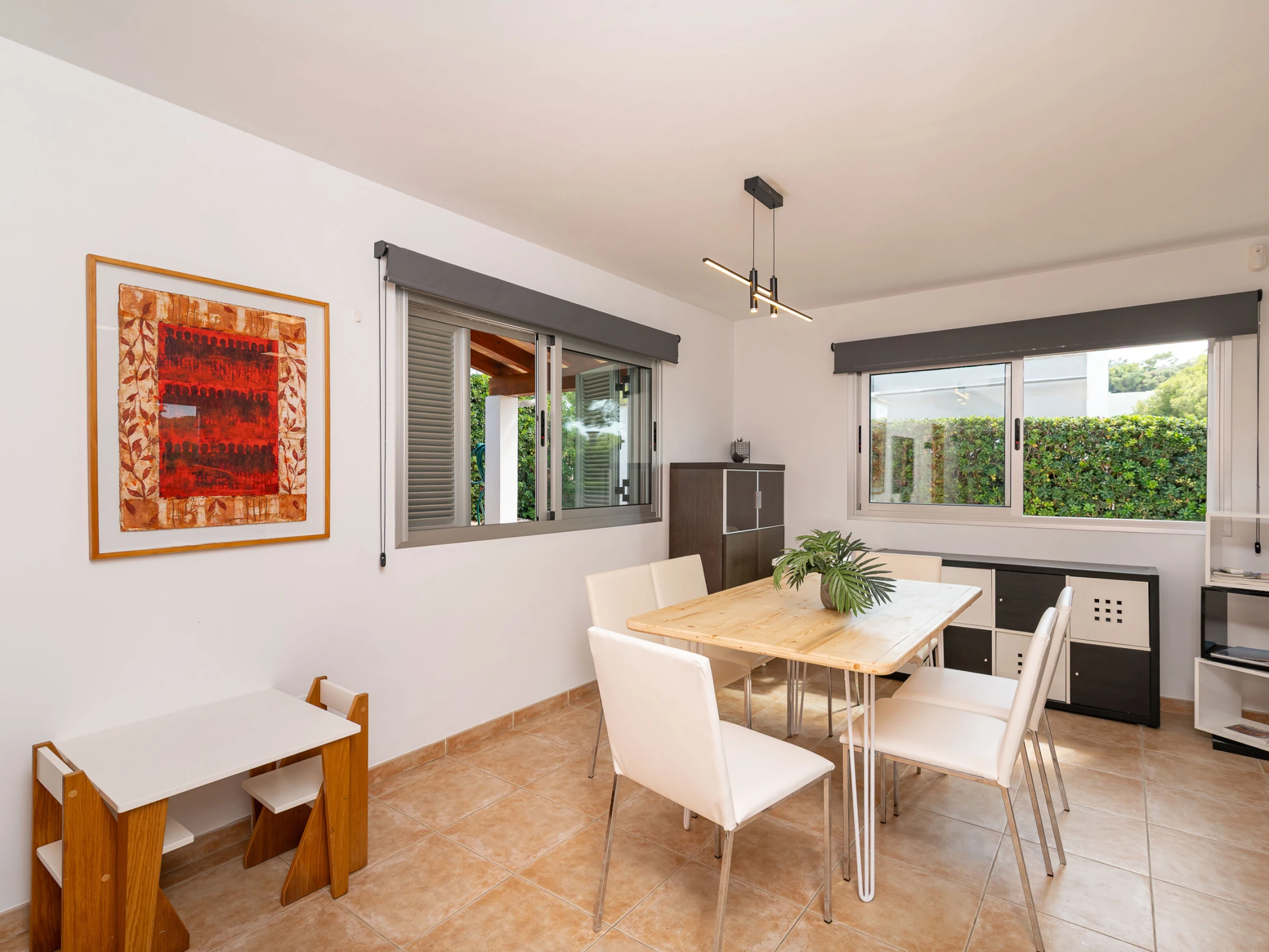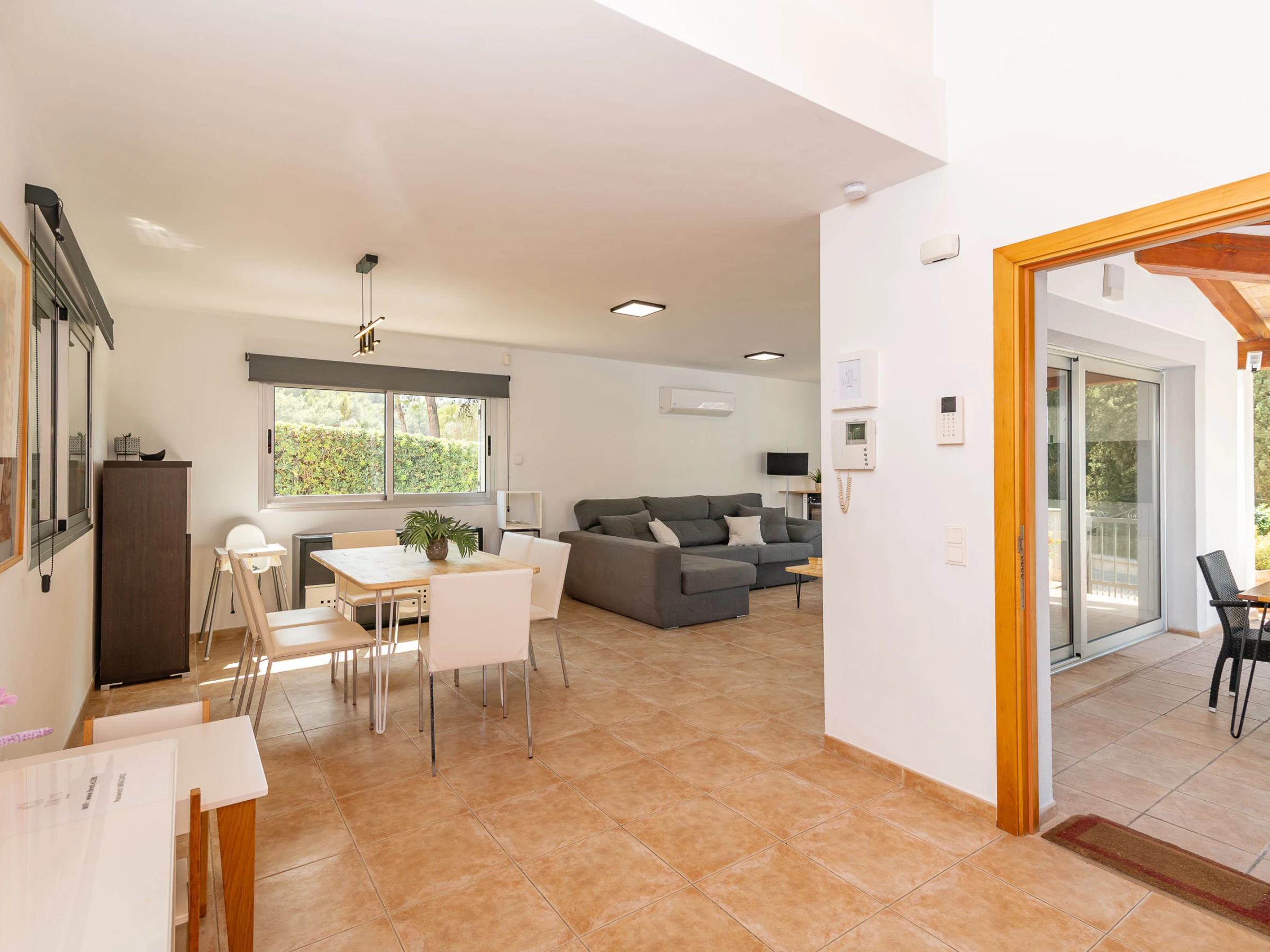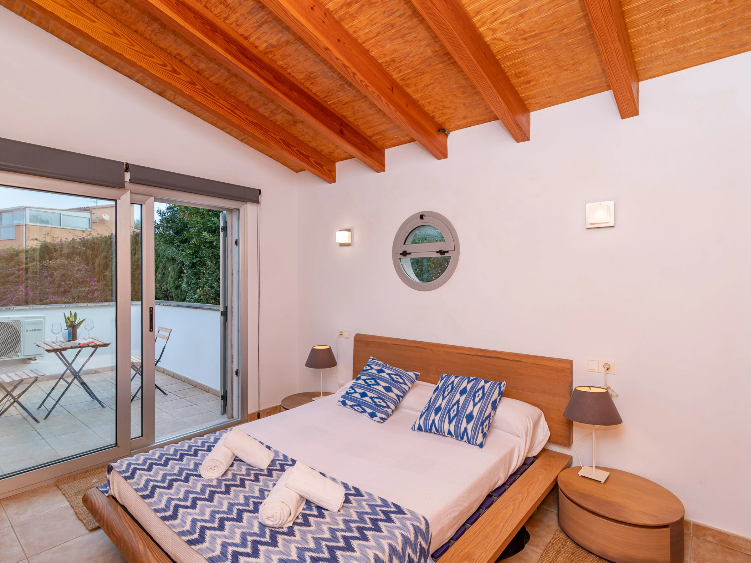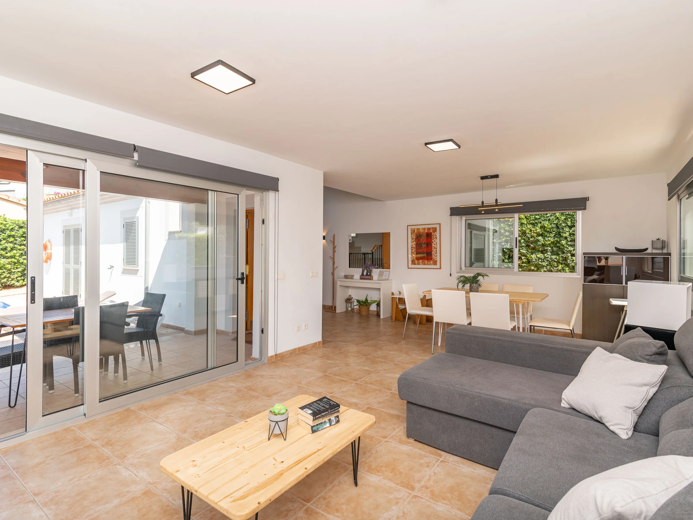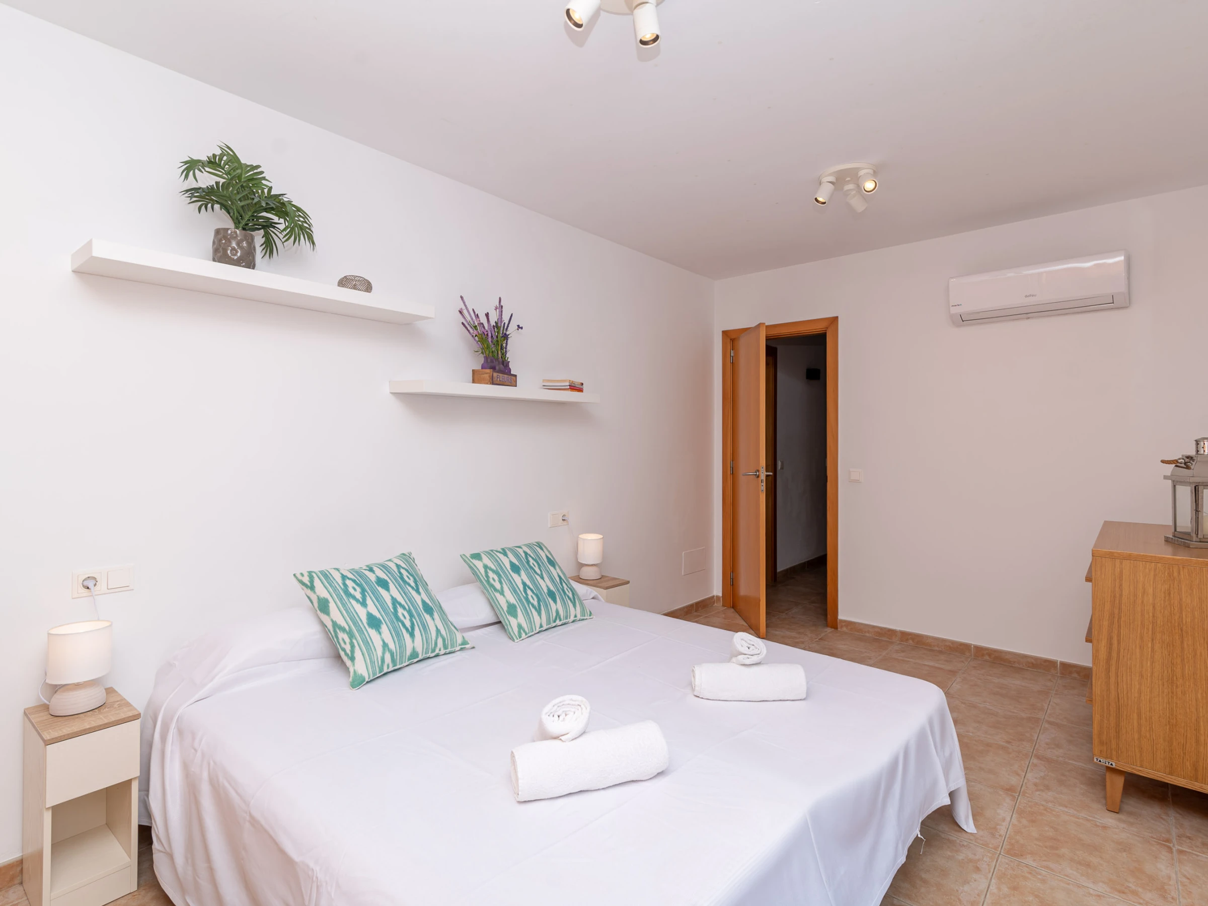La ubicación de la casa es otro de sus grandes atractivos, situada en Bonaire, una zona tranquila y muy solicitada, a solo unos minutos en coche del centro de Alcudia. En el centro encontrarás todos los servicios necesarios, como supermercados, centros de salud, restaurantes, entre otros. También podrás pasear por el centro histórico del pueblo, rodeado de una impresionante muralla medieval del siglo XIV, o aprovechar para visitar el mercado dominical, donde podrás comprar productos locales frescos para cocinar en casa.
