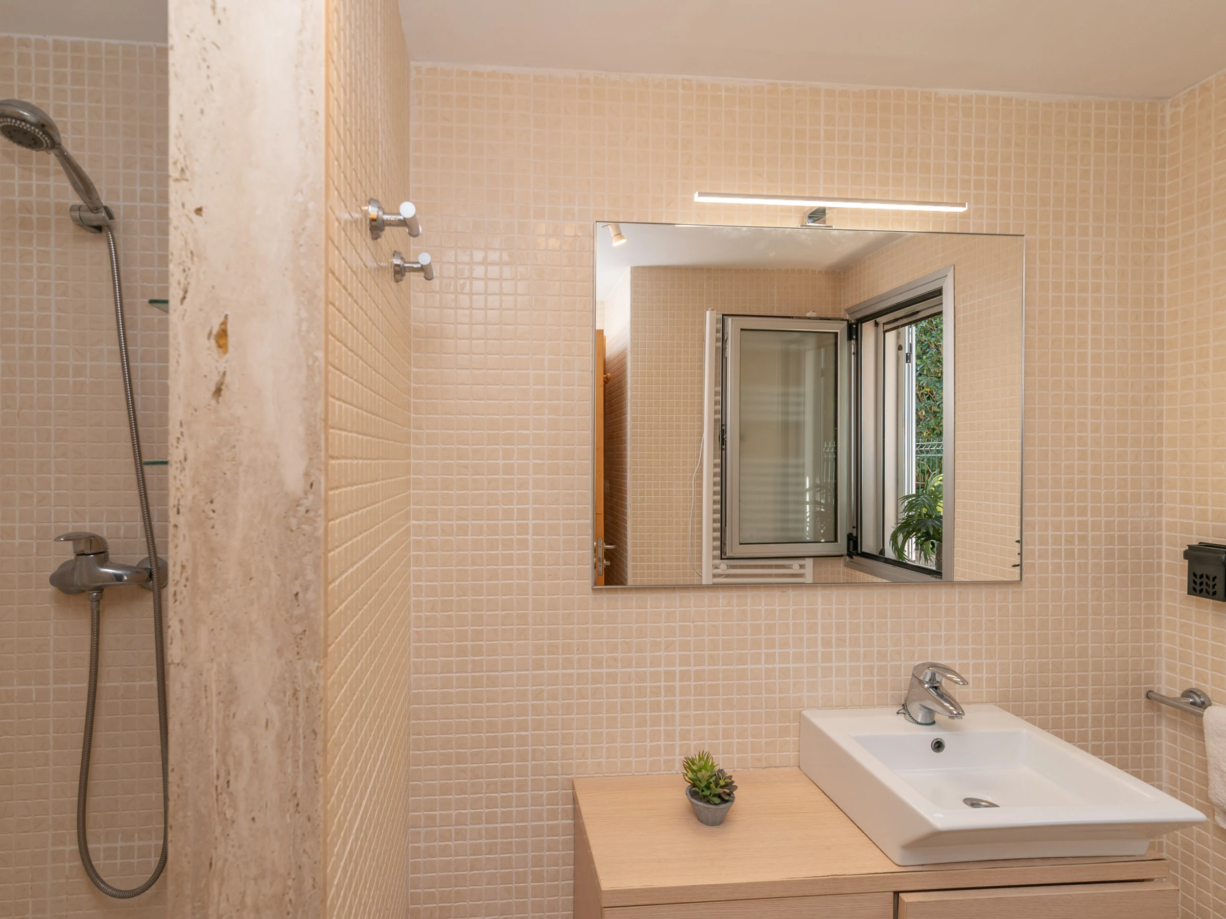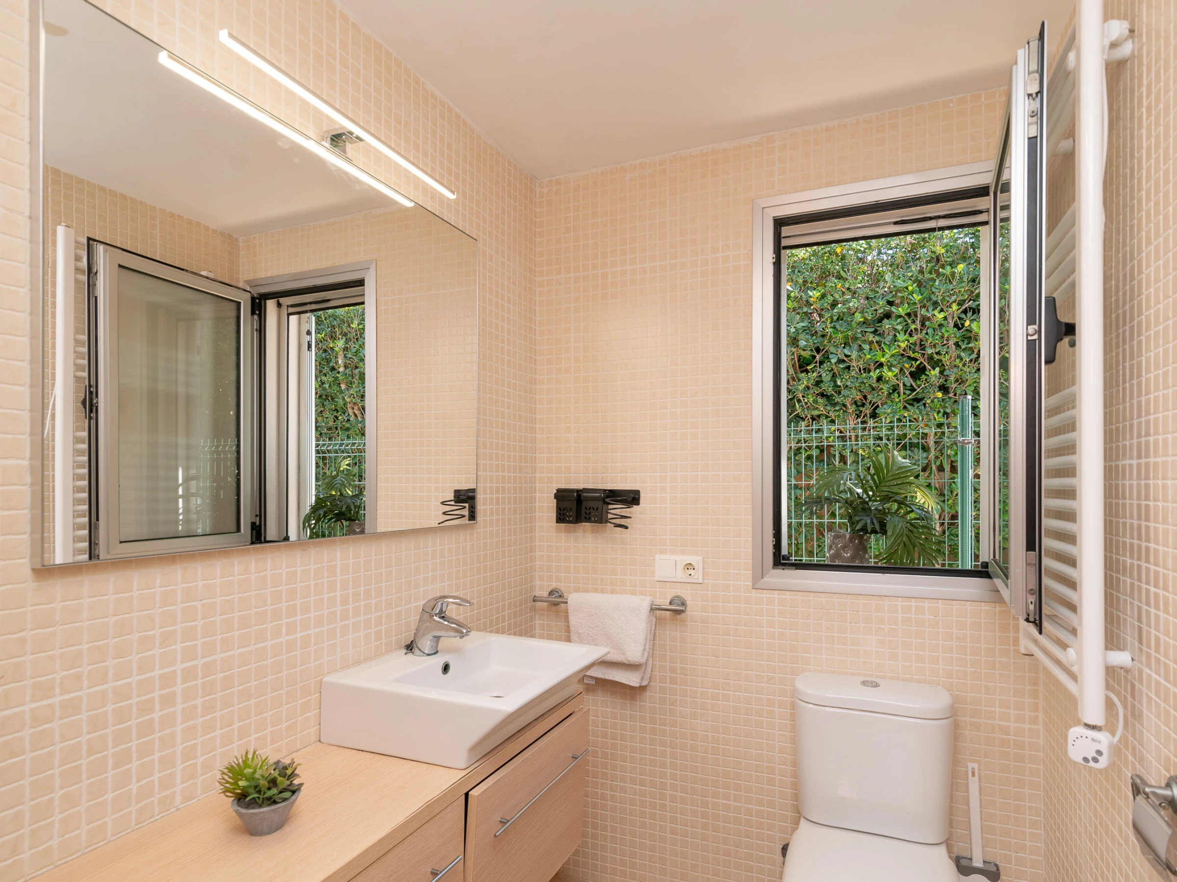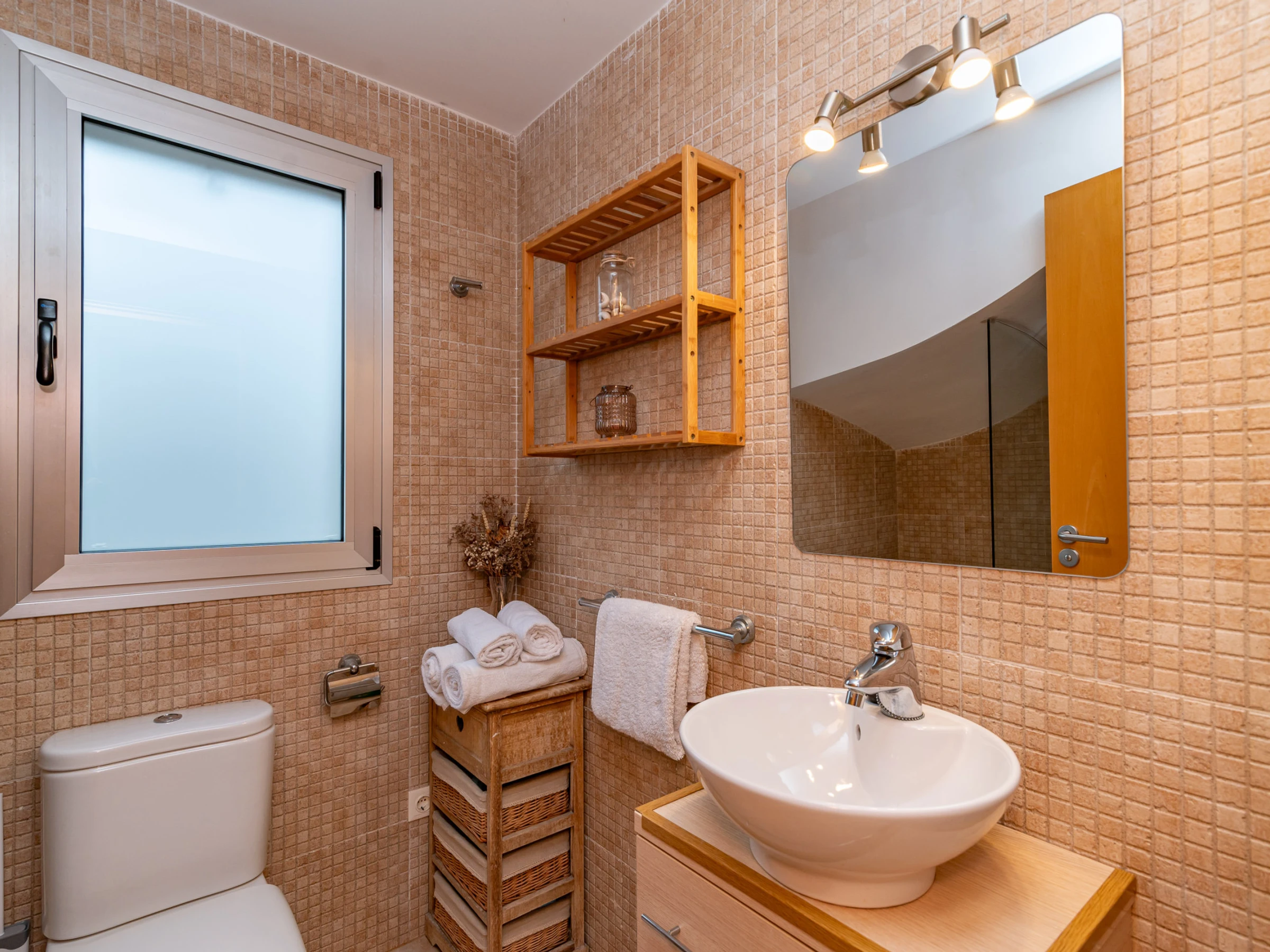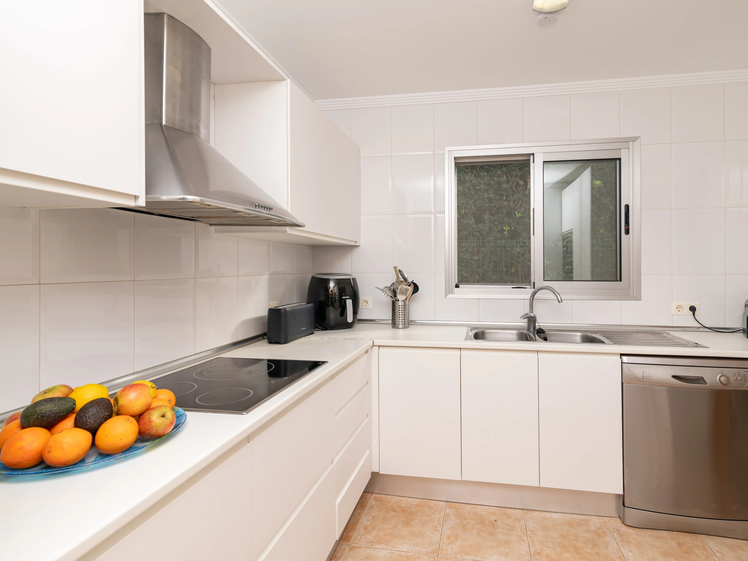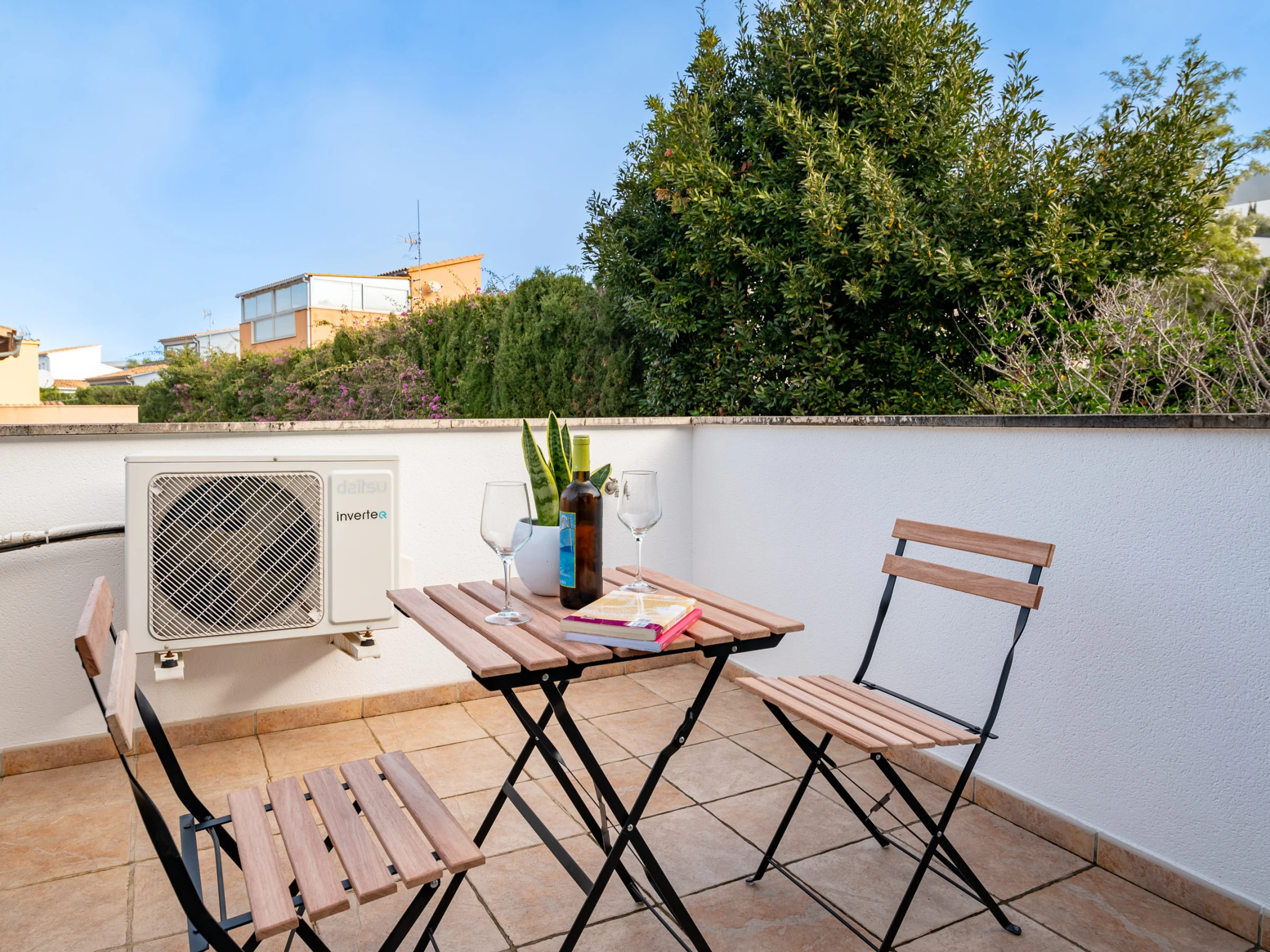 La ubicación de la casa es otro de sus grandes atractivos, situada en Bonaire, una zona tranquila y muy solicitada, a solo unos minutos en coche del centro de Alcudia. En el centro encontrarás todos los servicios necesarios, como supermercados, centros de salud, restaurantes, entre otros. También podrás pasear por el centro histórico del pueblo, rodeado de una impresionante muralla medieval del siglo XIV, o aprovechar para visitar el mercado dominical, donde podrás comprar productos locales frescos para cocinar en casa.