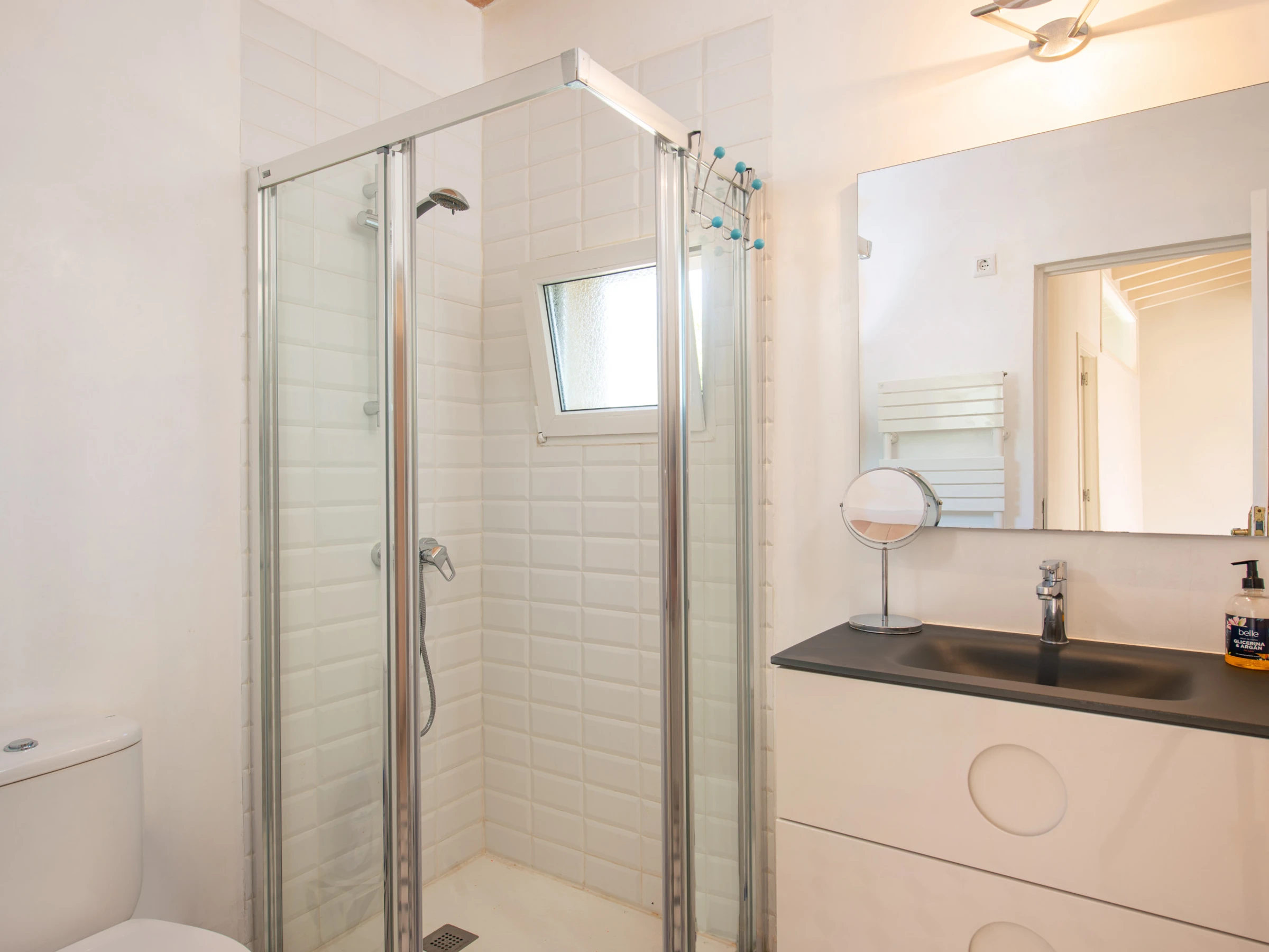 Villa Estranys, es una maravillosa villa para 8 personas situada en la lujosa y tranquila zona residencial de Bonaire, a penas a uno 500 metros de las playas de Sant Joan y Santa Pere o las playas de rocas de Bonaire o la cala de S'Illiot.