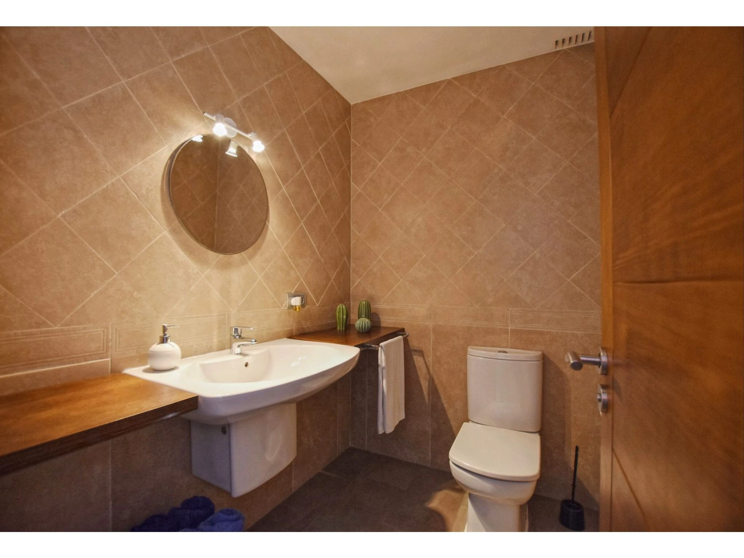 Hay 4 dormitorios (3 camas individuales y 1 doble), 4 baños (todas en suite y una con jacuzzi). La cocina está totalmente equipada y separada desde el salón / comedor con acceso a la terraza y la piscina. Hay varias terrazas, un porche amueblado y un fantástico área para tomar el sol con terraza que rodea la piscina con muebles de terraza y tumbonas. Ubicado en una zona tranquila, cerca de la ciudad y todas las instalaciones, es la propiedad ideal para disfrutar de unas vacaciones maravillosas con total privacidad y todos los servicios.
