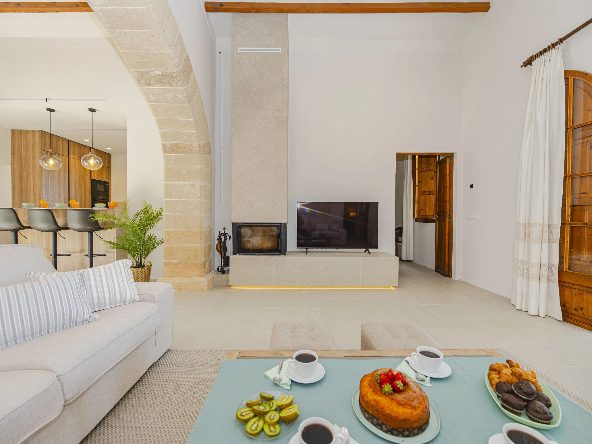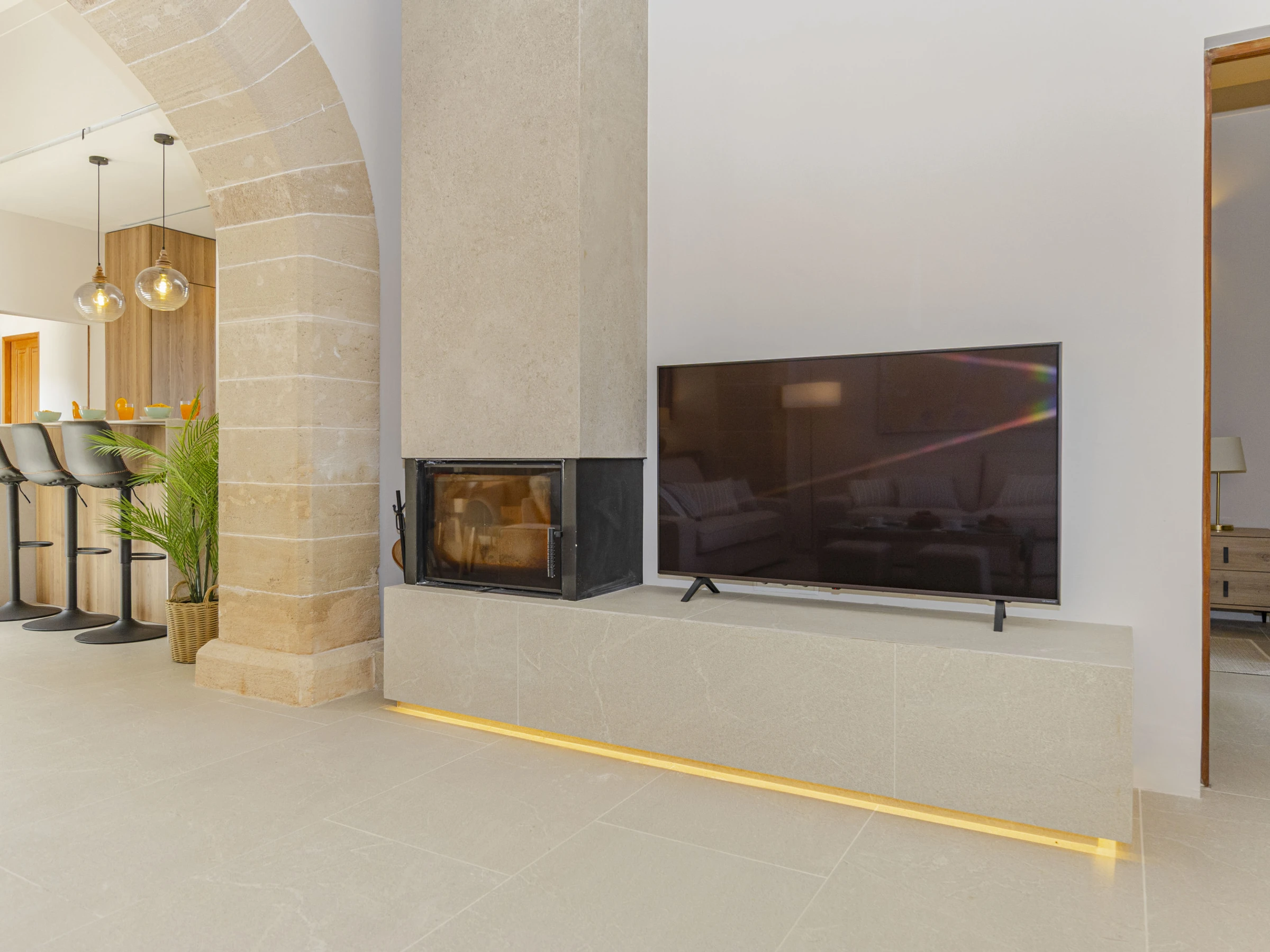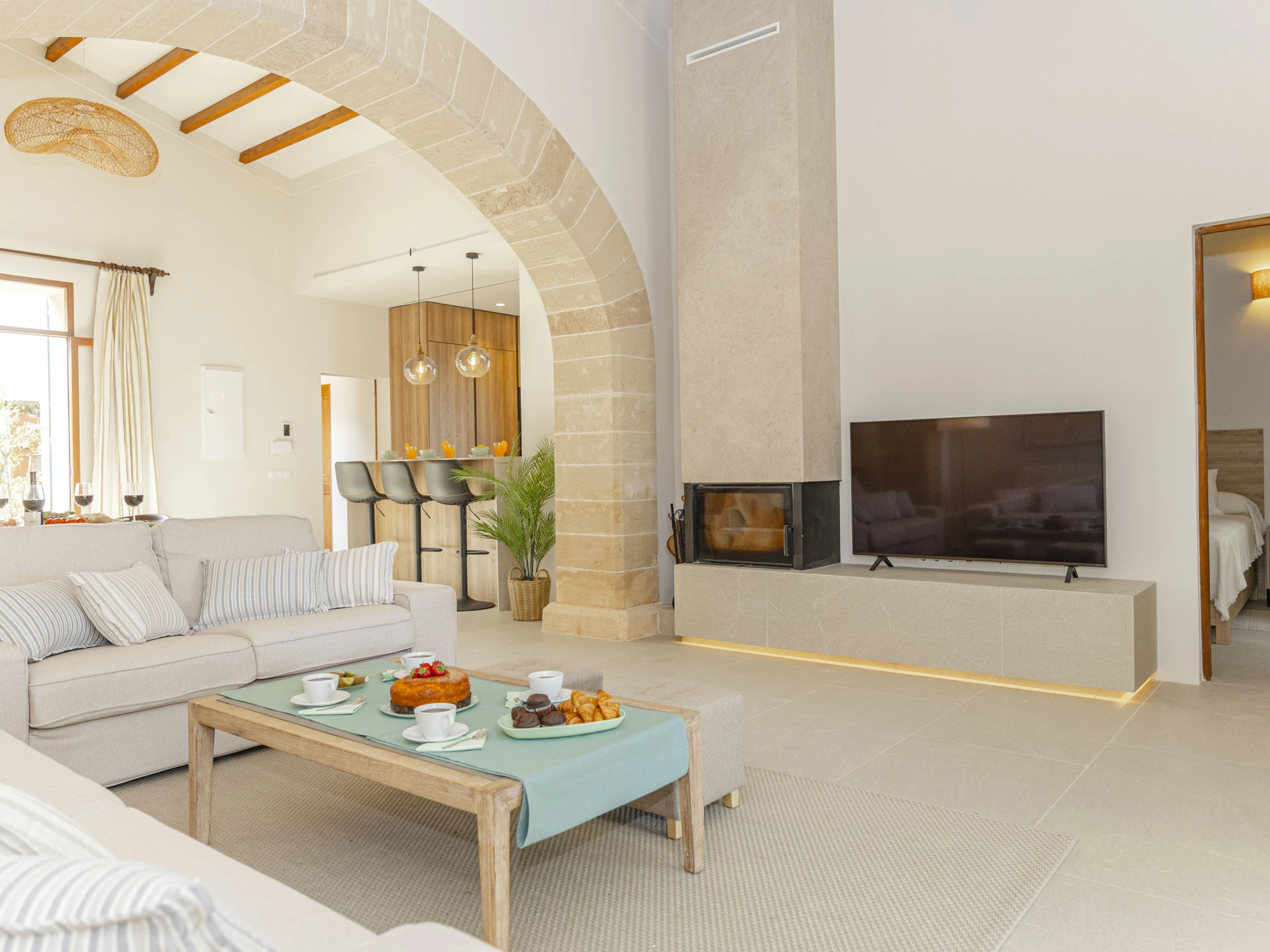 Interiores bellamente renovados que combinan comodidad moderna, acabados elegantes y una cálida atmósfera mediterránea.