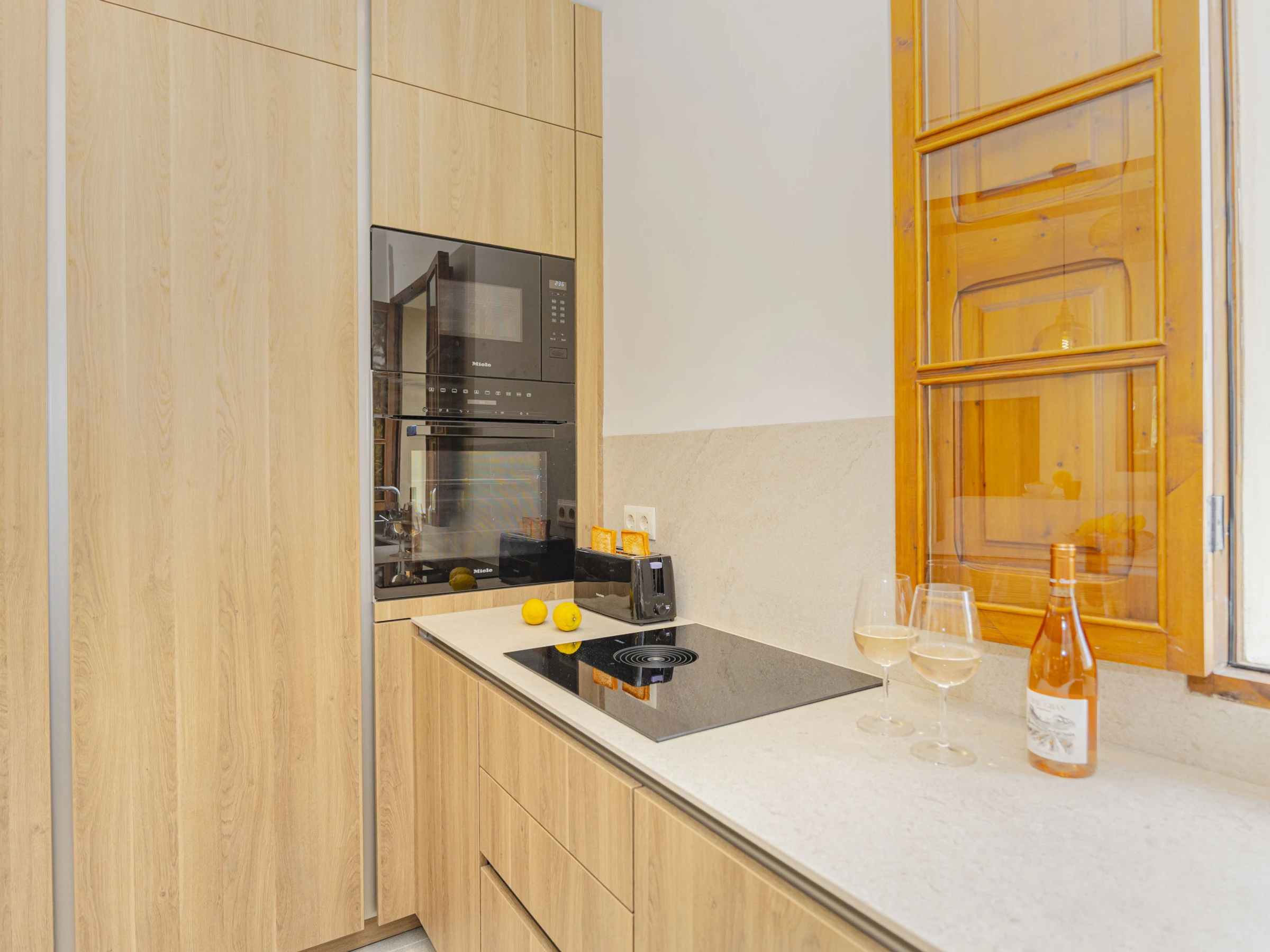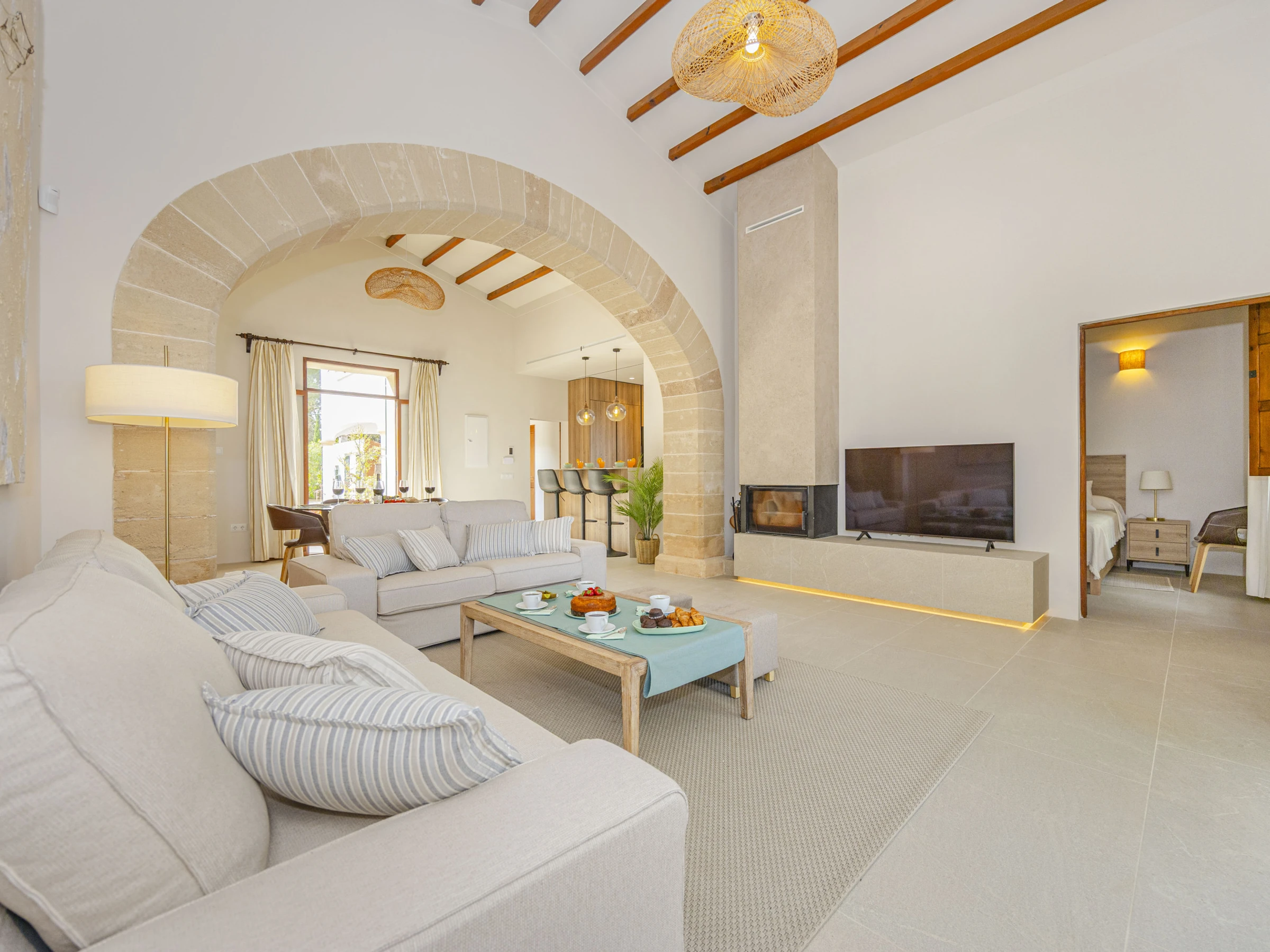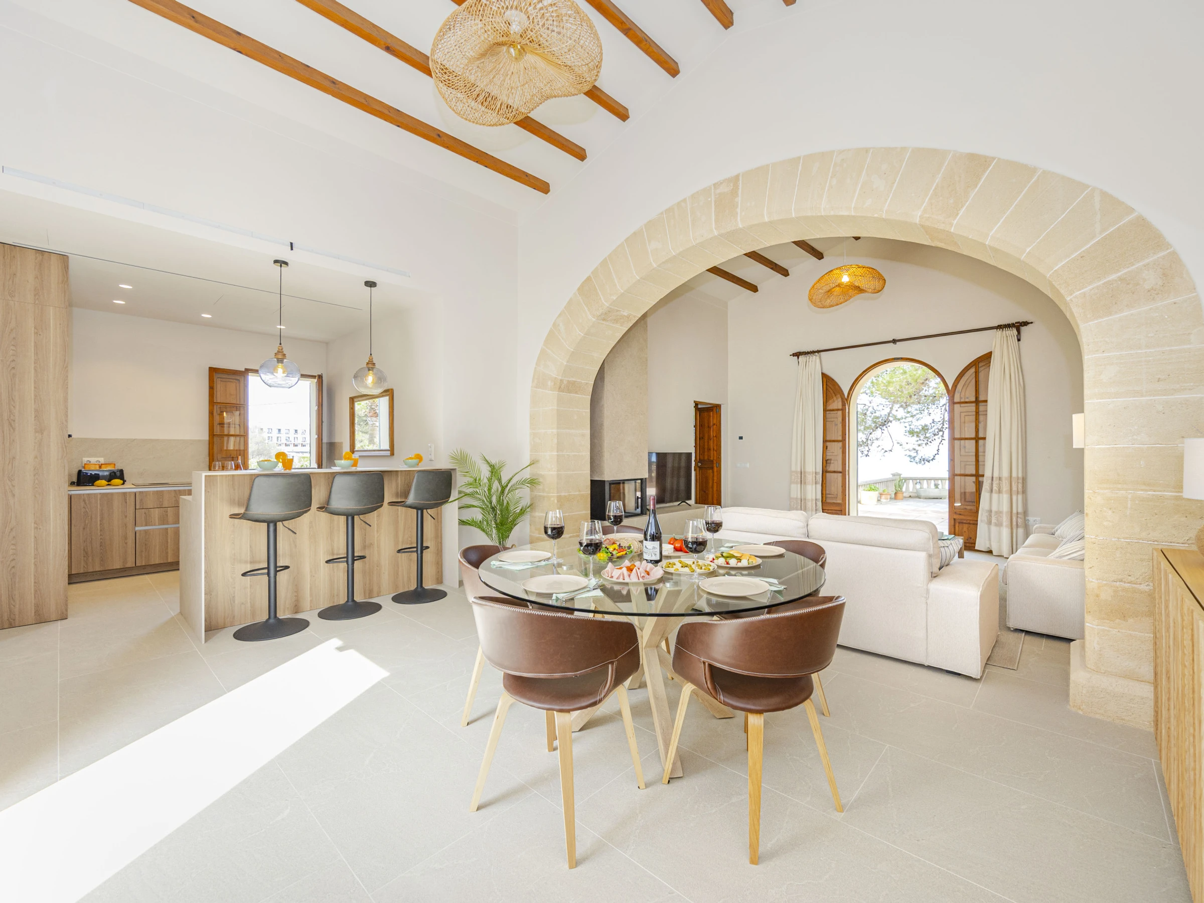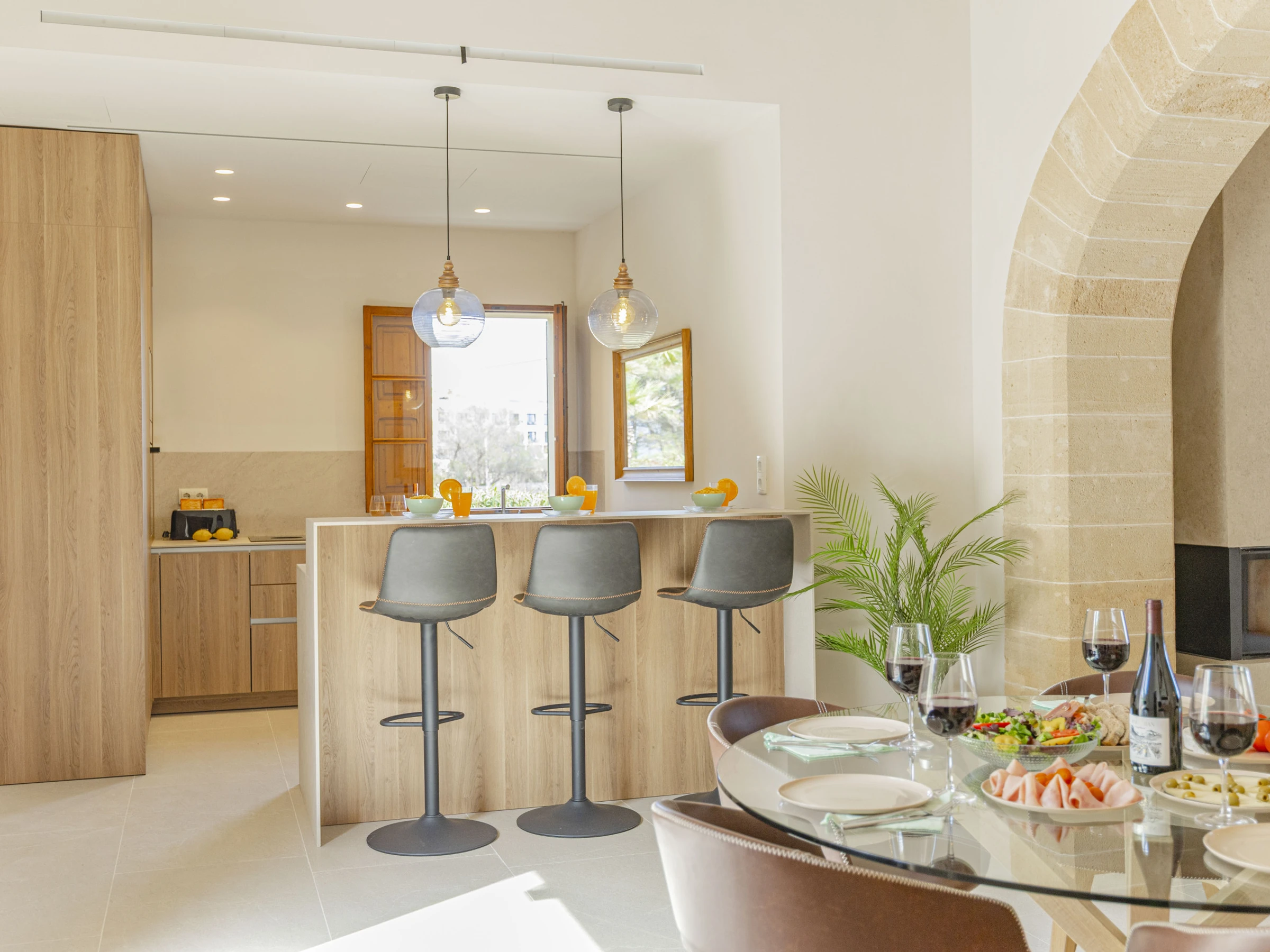 Interiores bellamente renovados que combinan comodidad moderna, acabados elegantes y una cálida atmósfera mediterránea.