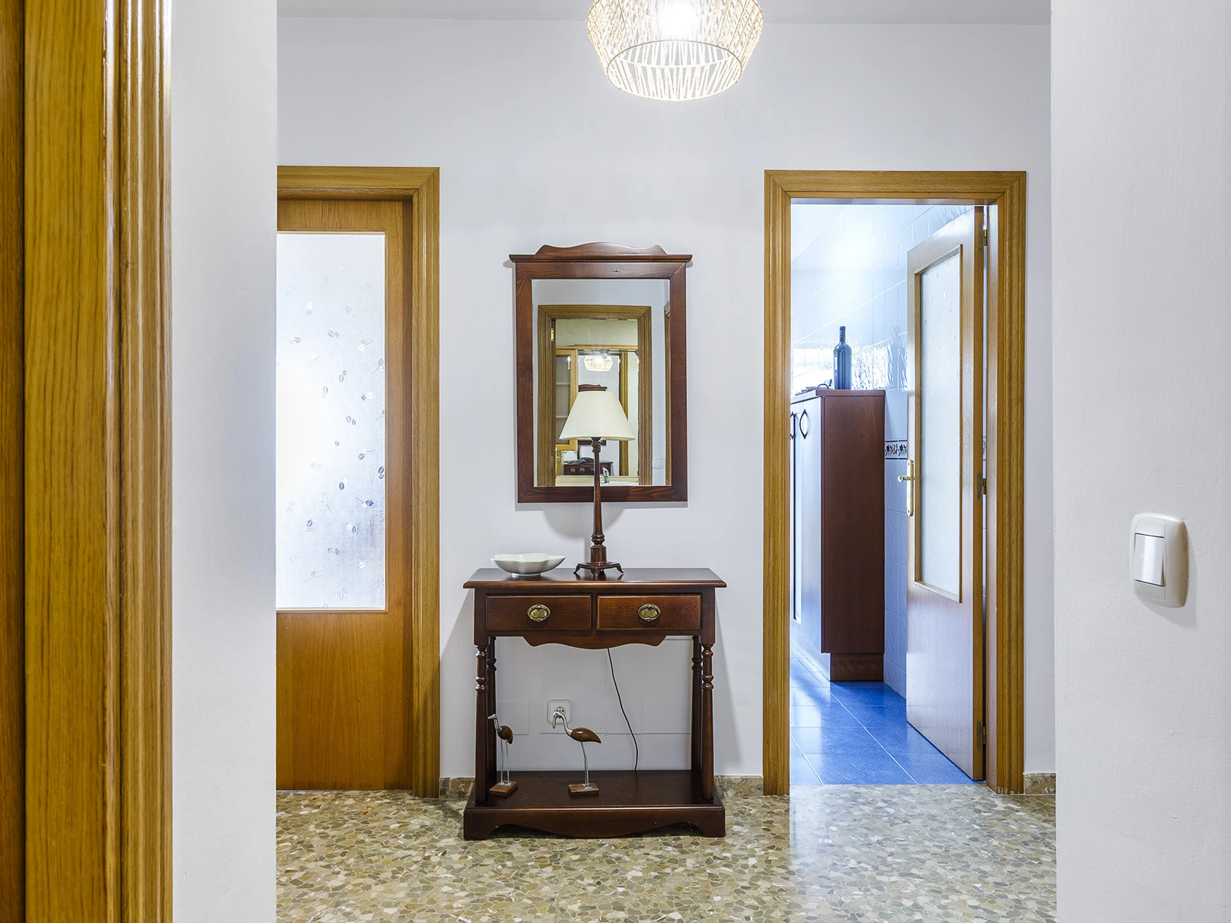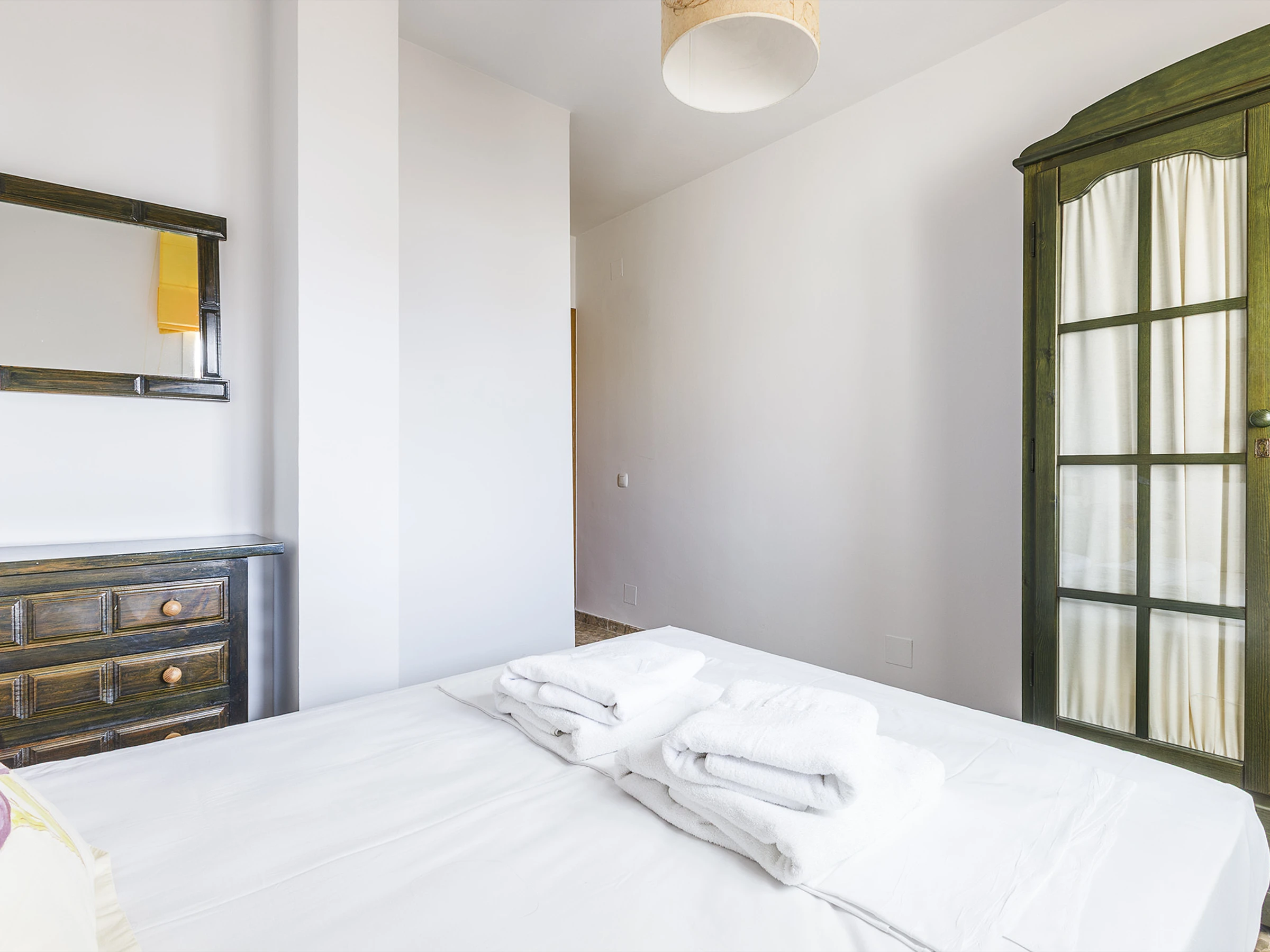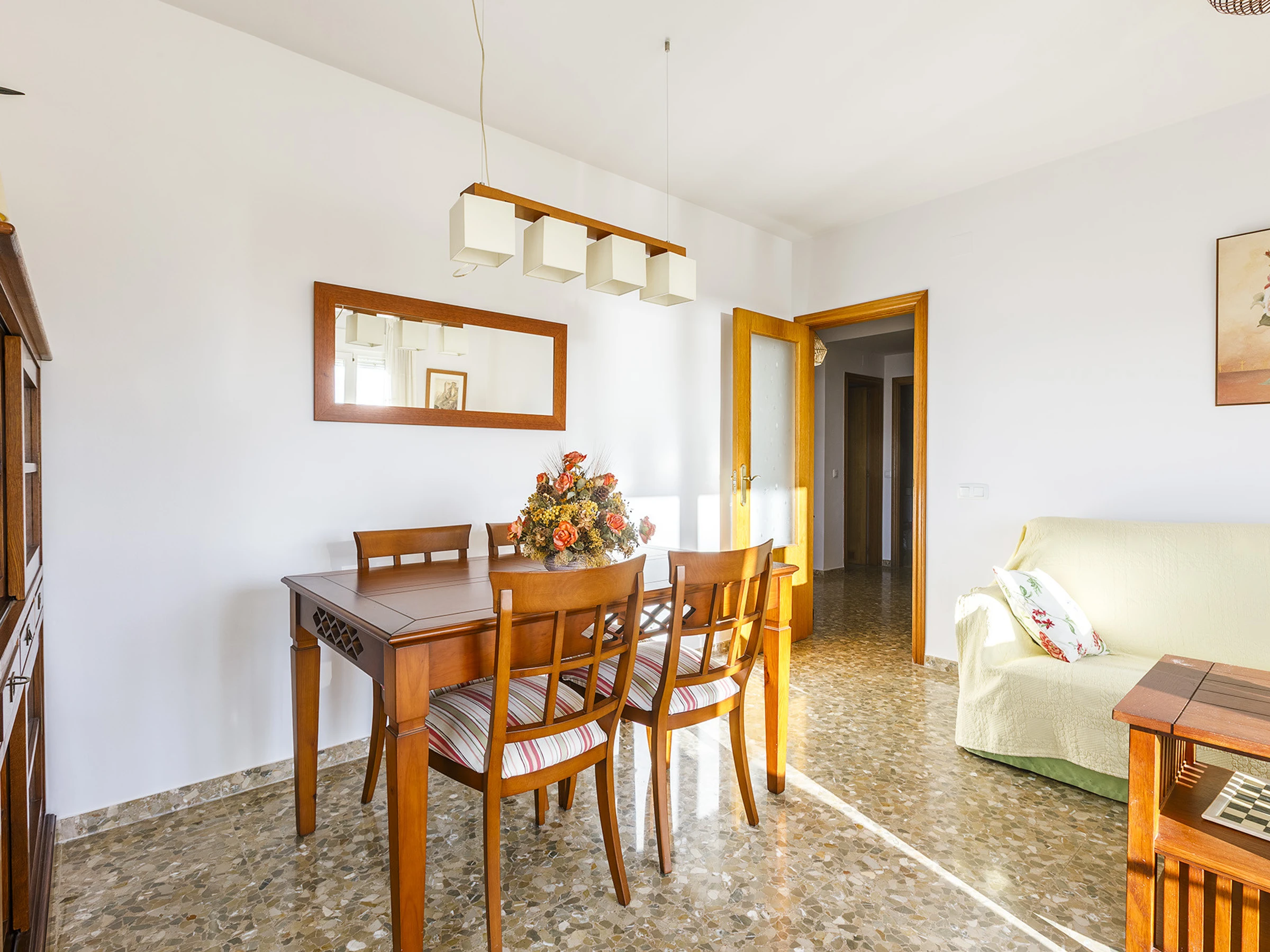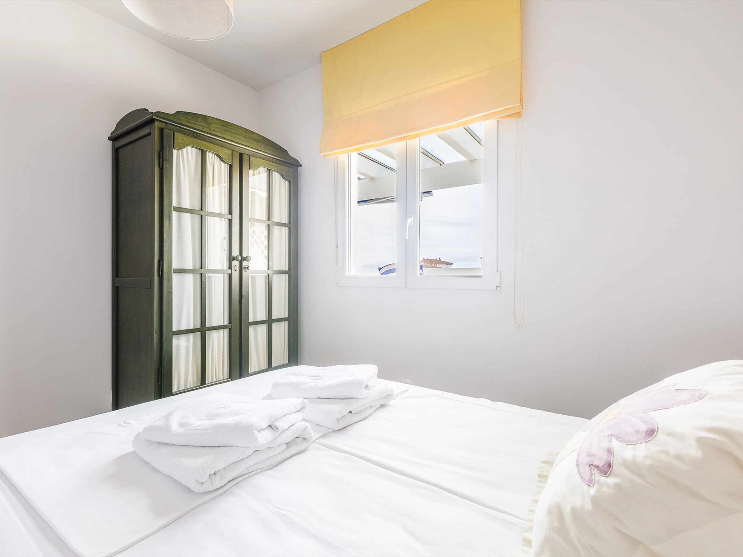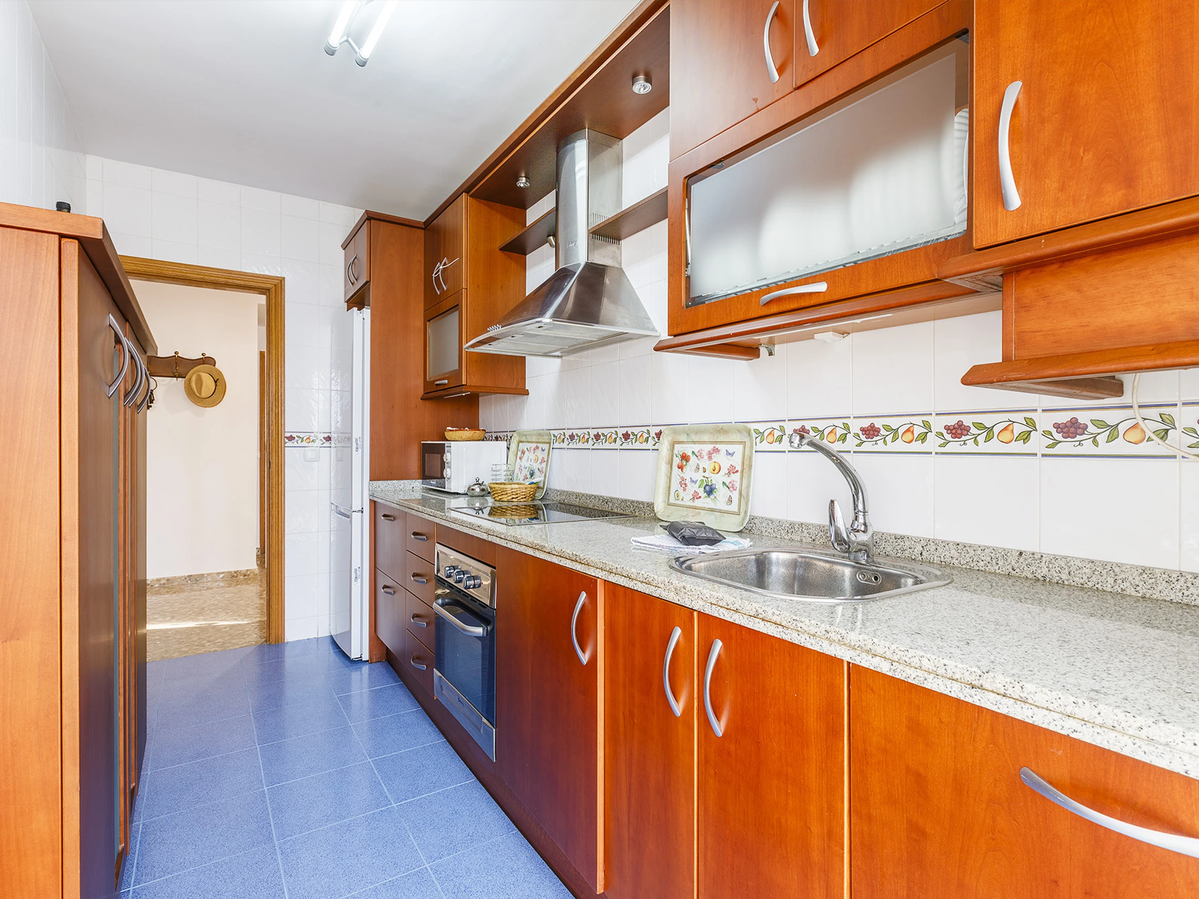 El apartamento dispone de 3 dormitorios (dos con cama doble y uno con cama individual), cocina independiente, baño con ducha y aseo adicional. Pero sin duda, su gran atractivo es la espectacular terraza en forma de L, con orientación sur-este y vistas panorámicas al mar y a la montaña. Un espacio ideal para desayunos al sol, tomar algo al atardecer o simplemente relajarse disfrutando de la brisa marina.