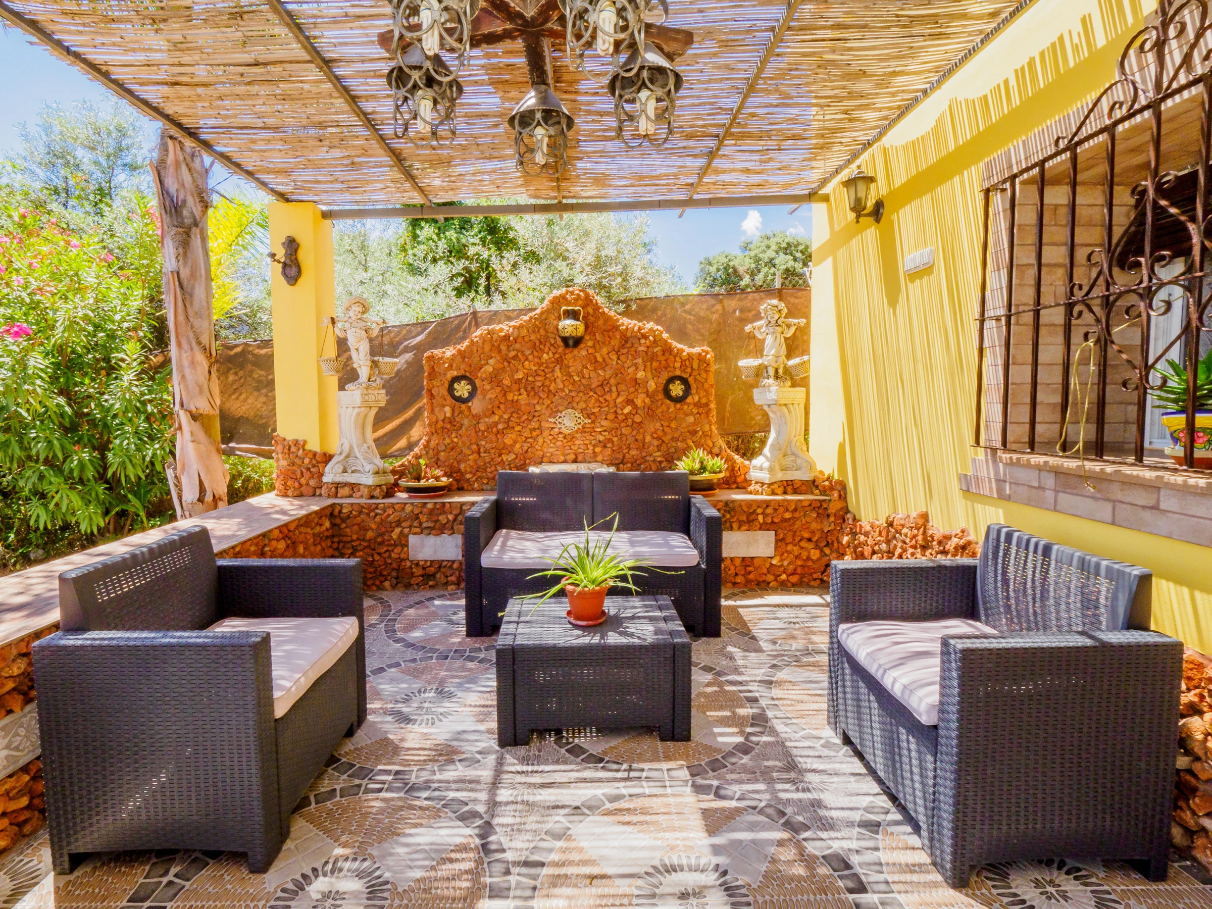 En el interior, el salón con chimenea es un rincón acogedor para compartir momentos en invierno, mientras que en verano disfrutarás de la piscina y las zonas exteriores techadas bajo el cálido sol de Málaga. La piscina, segura y vallada, es ideal para que los niños se diviertan mientras los adultos los vigilan cómodamente desde la zona de barbacoa equipada con mobiliario de exterior para disfrutar de las vistas y el ambiente tanto de día como de noche 🌅🍖.