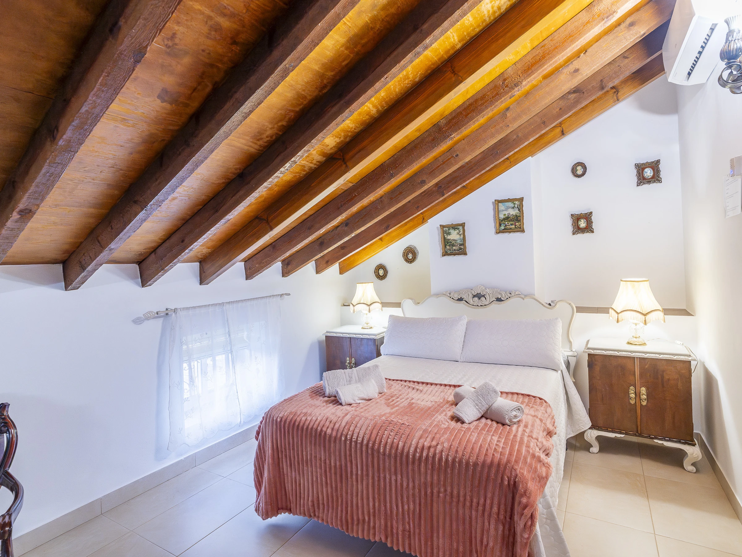 * La vivienda cuenta con cuatro dormitorios: tres con cama de matrimonio y 1 con dos camas individuales, además de dos baños completos con plato de ducha y un aseo.