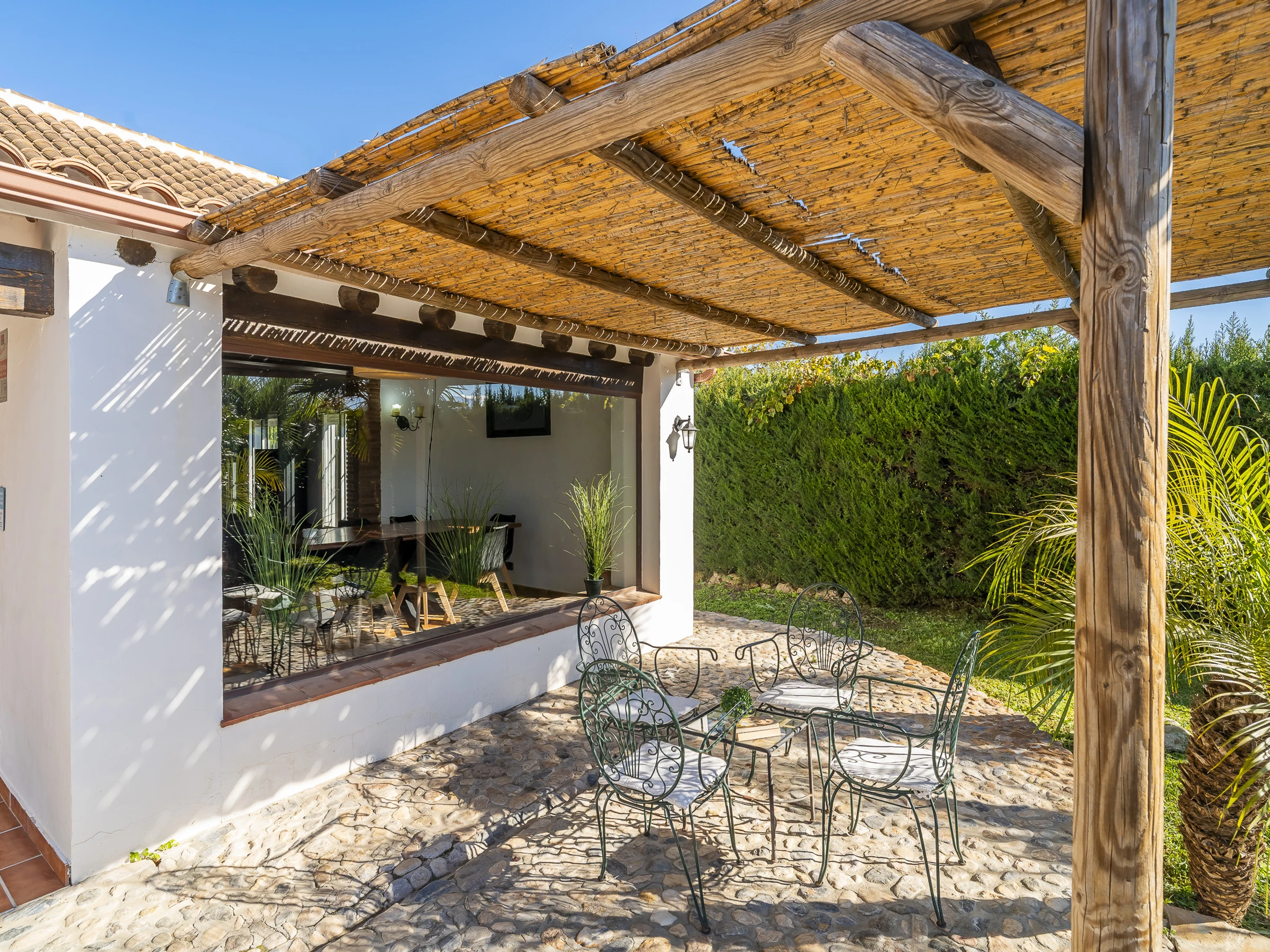 En el exterior, la villa brilla con un amplio jardín privado, una refrescante piscina y una zona de barbacoa que harán tus momentos al aire libre inolvidables. Disfruta del mobiliario exterior con hamacas para tomar el sol o descansar mientras contemplas el paisaje mediterráneo. La parcela está completamente vallada para garantizar privacidad y seguridad, y dispone de parking cubierto para dos vehículos. El camino de acceso está bien señalizado y facilita la llegada sin complicaciones.