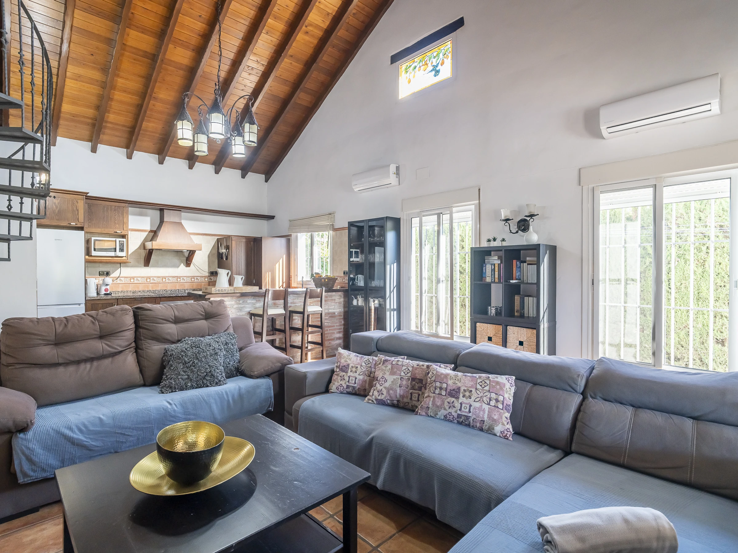 Disfruta de una escapada perfecta en esta elegante villa de 4 dormitorios, con capacidad para hasta 10 personas, situada en la tranquila y rural localidad de Alhaurín el Grande. Esta villa de 160 m² ofrece amplios espacios y vistas a la montaña y al jardín, ideal para quienes buscan comodidad y privacidad y también dispone de sistema de seguridad con alarma y cámara integrada.