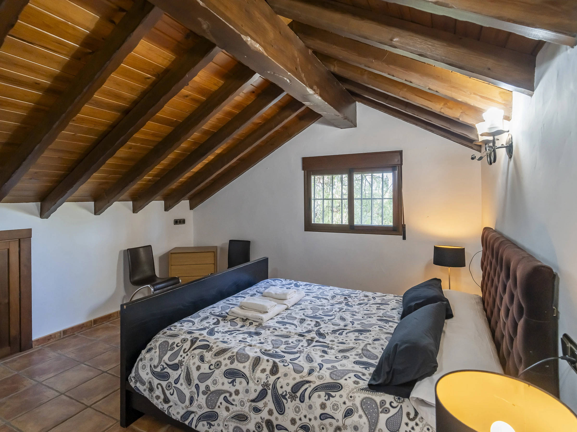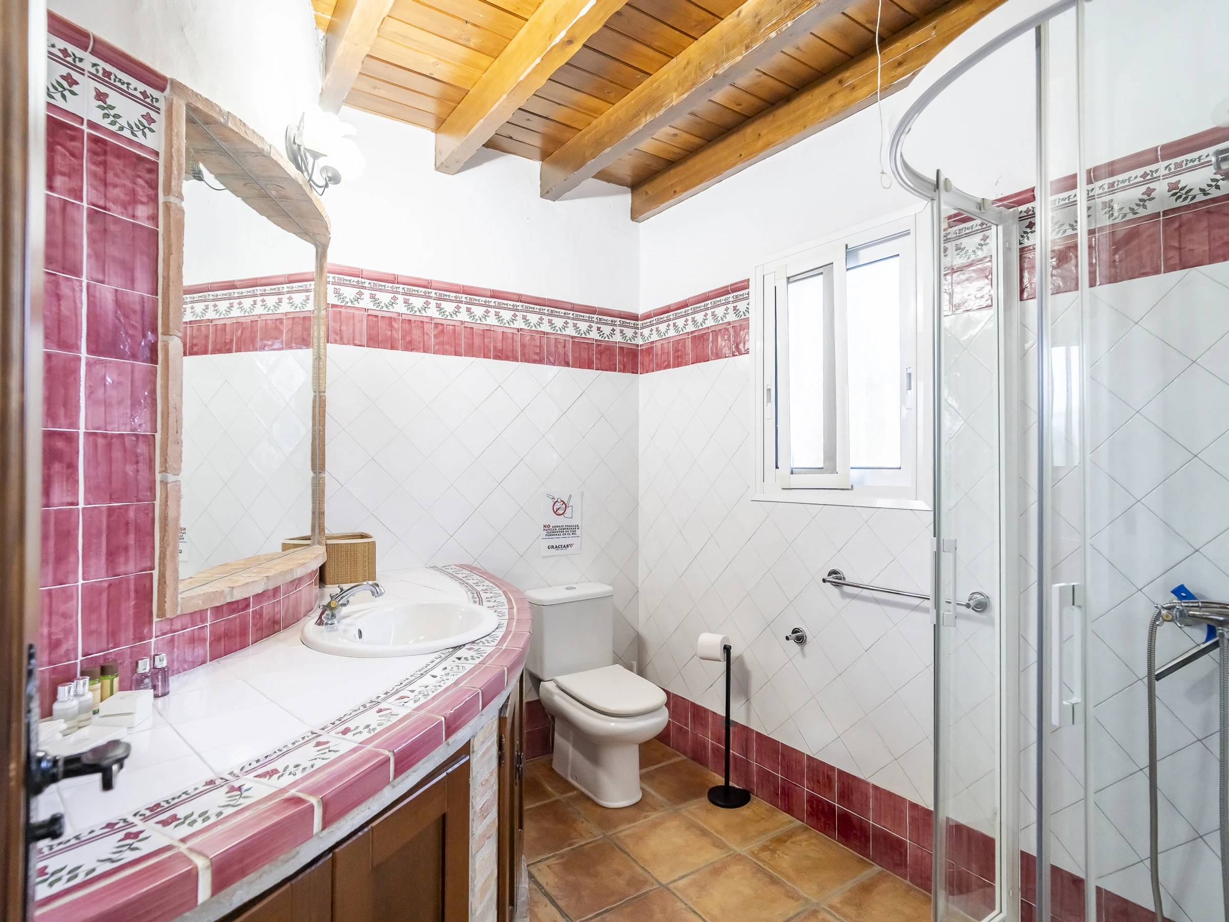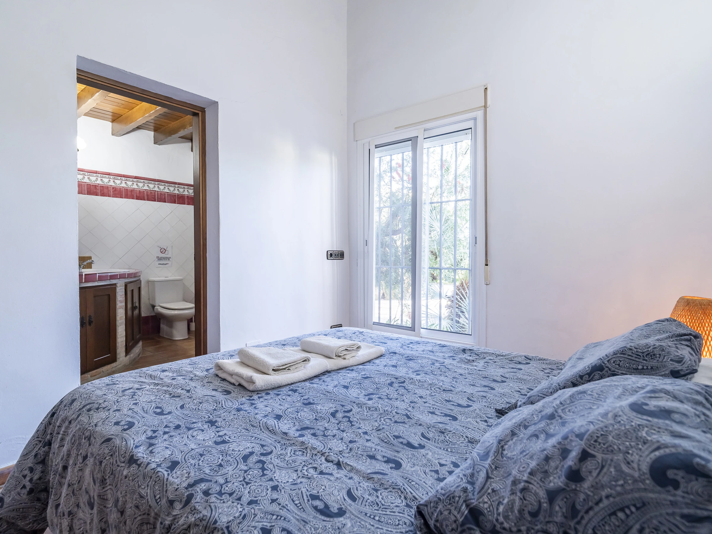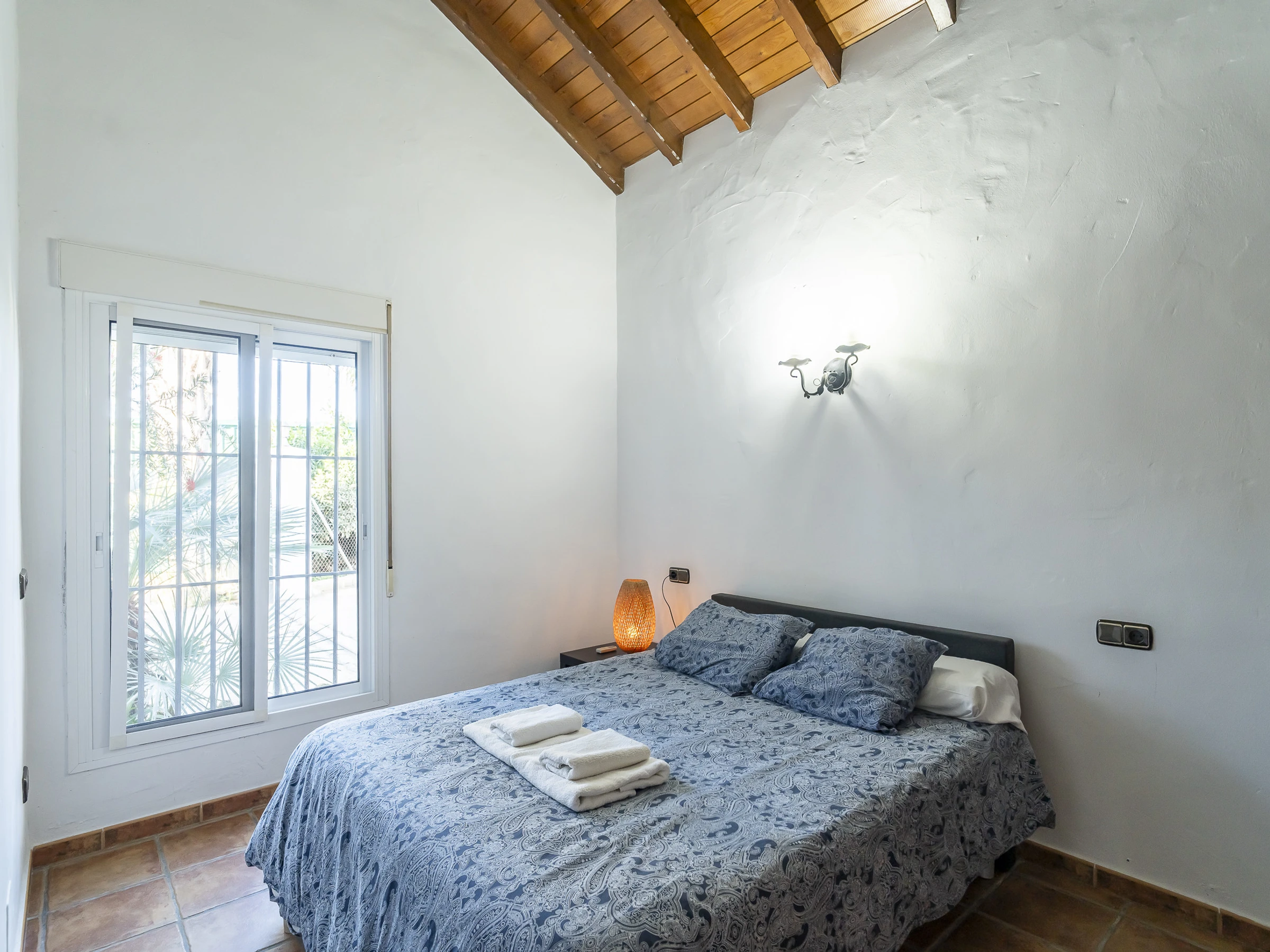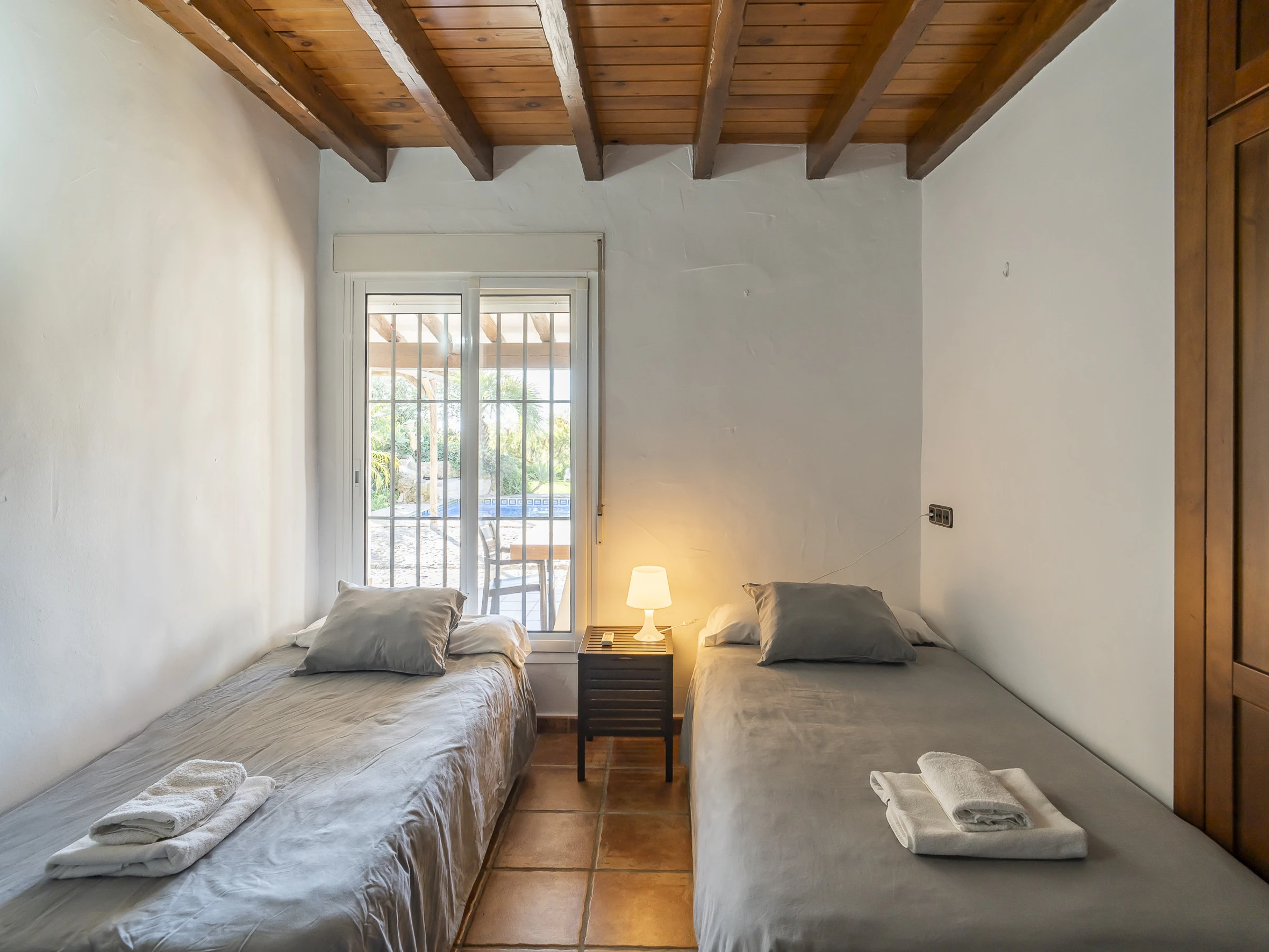 En su interior, la villa ofrece cuatro dormitorios espaciosos: uno con cama de matrimonio y dos camas individuales, dos dormitorios con cama de matrimonio y otro con dos camas individuales. Cuenta con tres baños completos y un aseo adicional, garantizando la máxima comodidad para grupos numerosos.