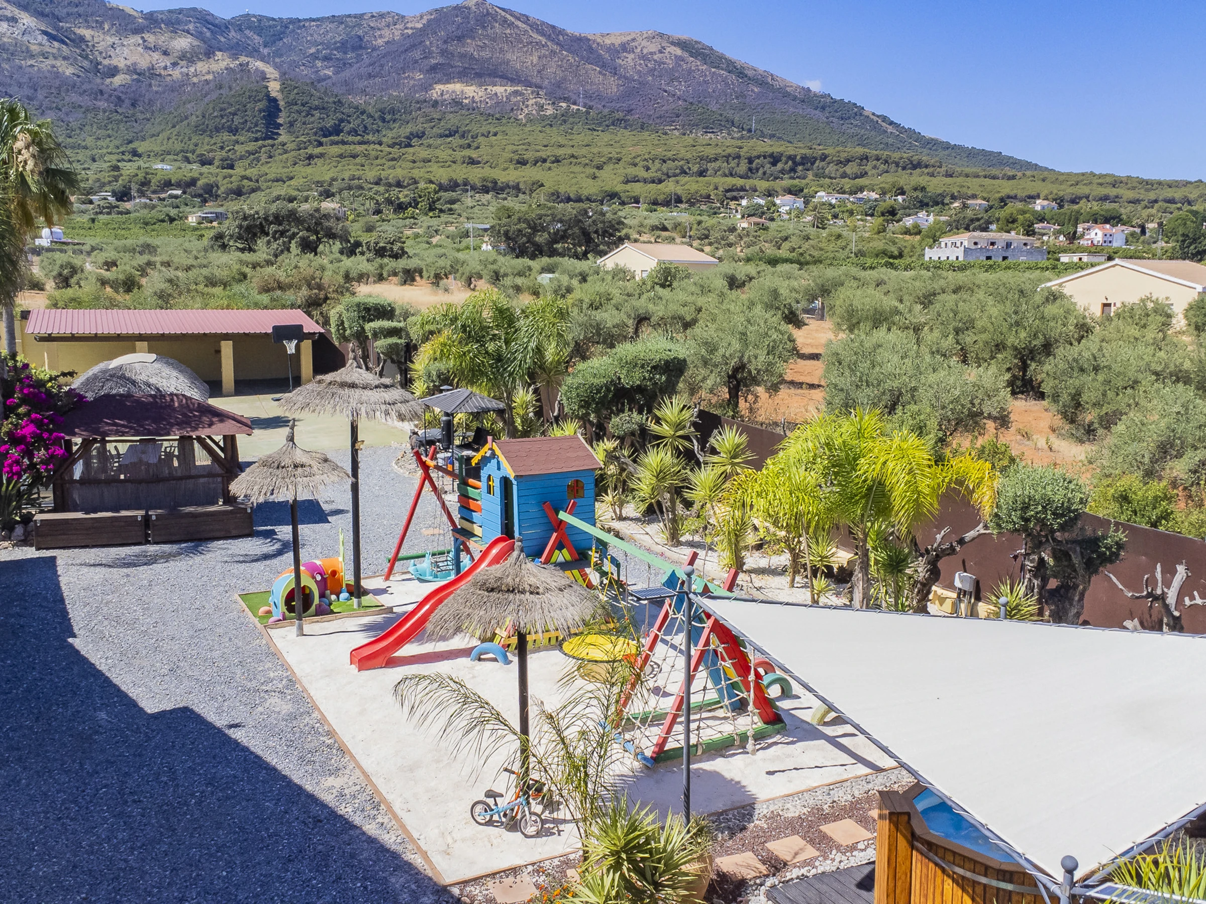 El entorno combina tranquilidad rural con una ubicación excelente cerca de playas (21 km), campos de golf (a solo 4km), parques acuáticos y atracciones turísticas de la Costa del Sol, convirtiéndose en la opción perfecta para unas vacaciones familiares. ⛳🏖️🎢
