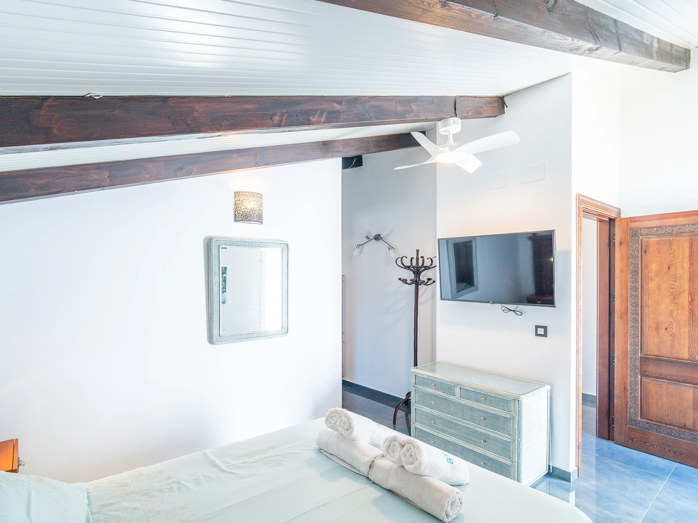 La planta superior alberga cuatro dormitorios dobles, cada uno con cama de matrimonio, baño en suite con plato de ducha, televisión y aire acondicionado con bomba de calor ❄️🔥. Dos dormitorios se orientan al norte y dos al sur, todos con terraza privada equipada para disfrutar de un café o del sol en un ambiente íntimo.