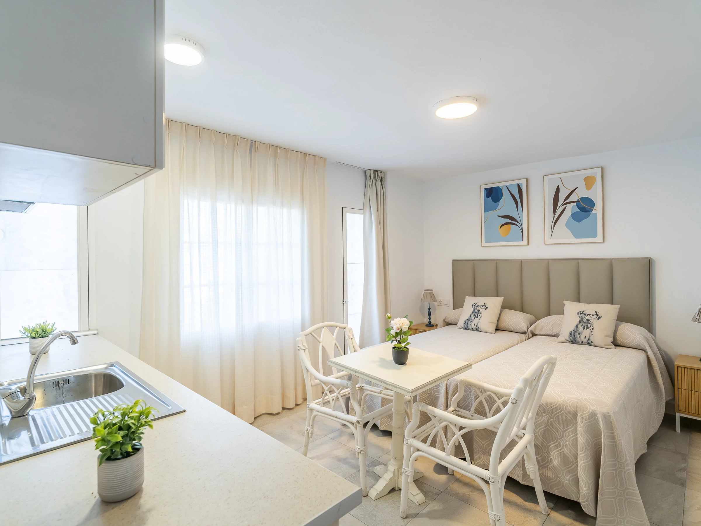 • Primera planta: 8 habitaciones (dobles e individuales, varias con cocina compacta)
