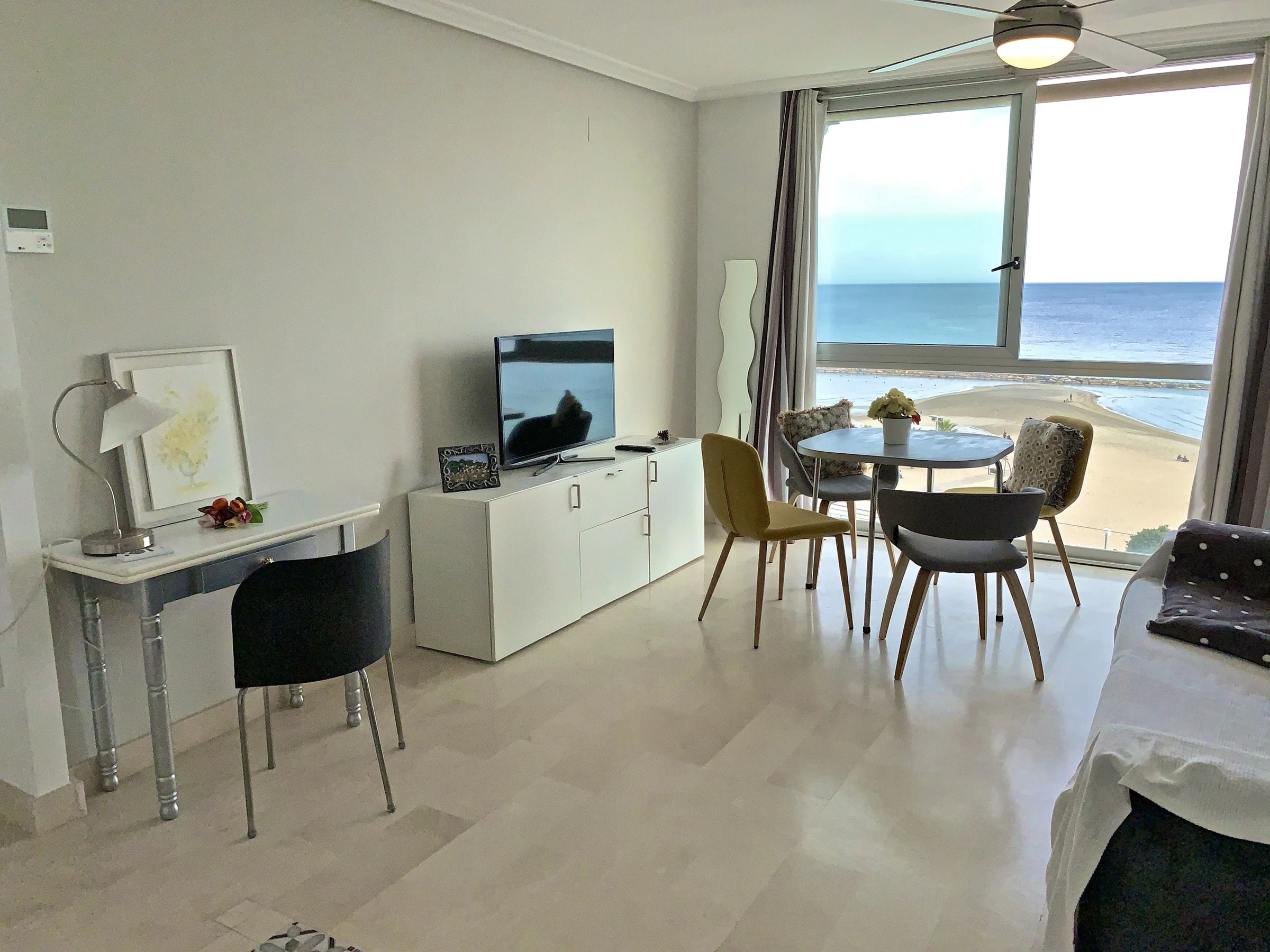 Alojamiento de 40 m² amueblado con gusto y muy luminoso, situado en primera línea de playa, con vistas al mar y a la montaña.