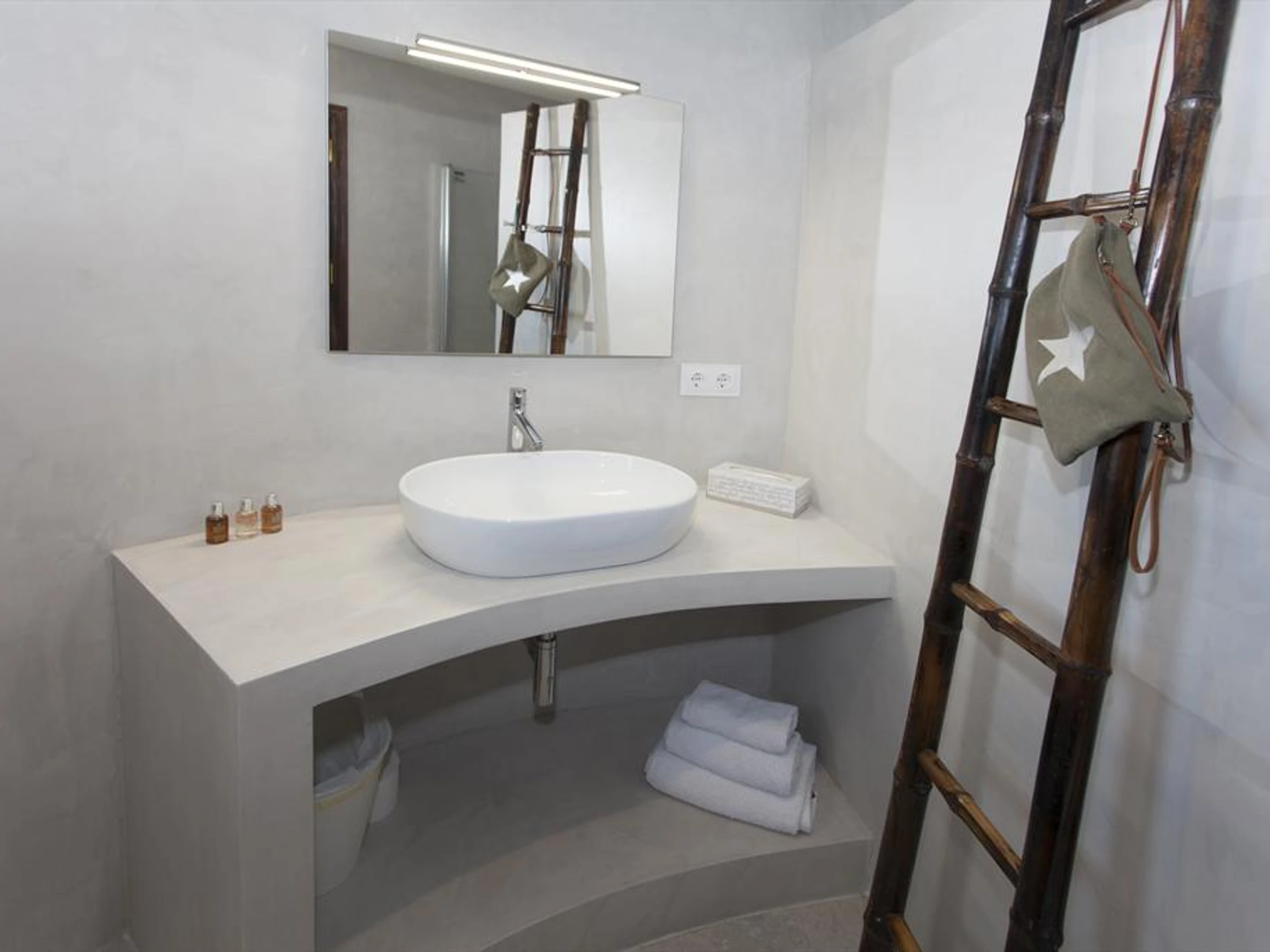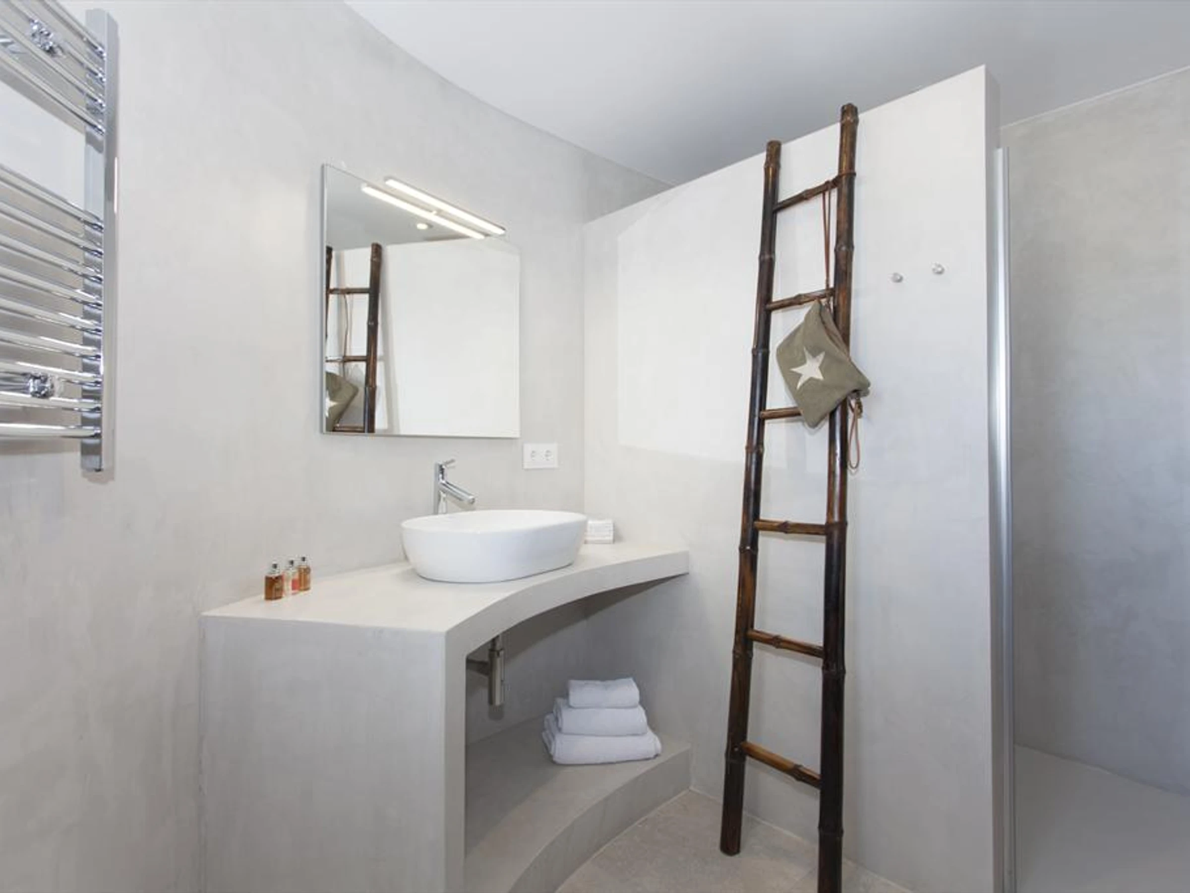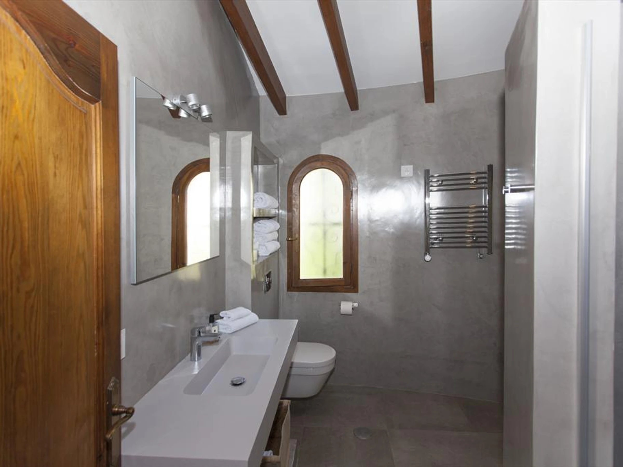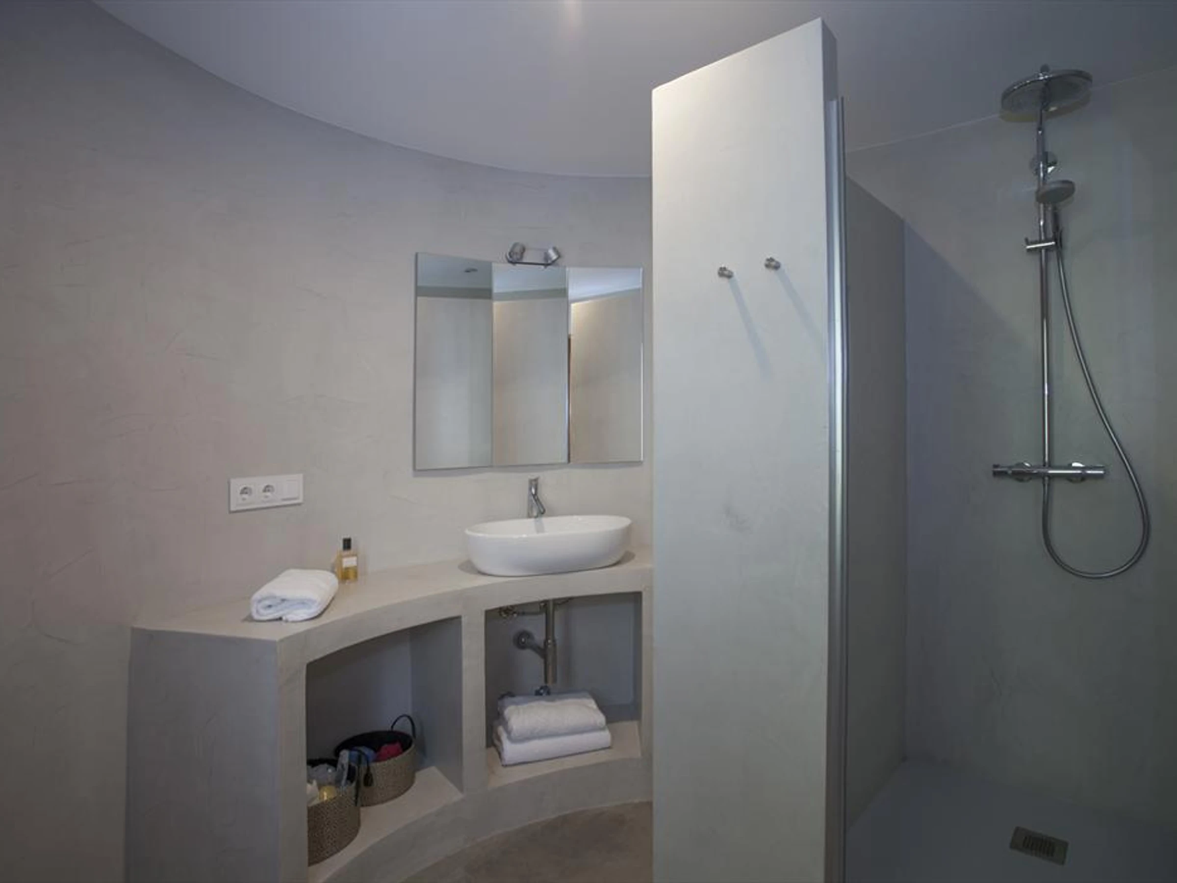 * cuarto de baño con lavabo, ducha y waterExterior de la villa