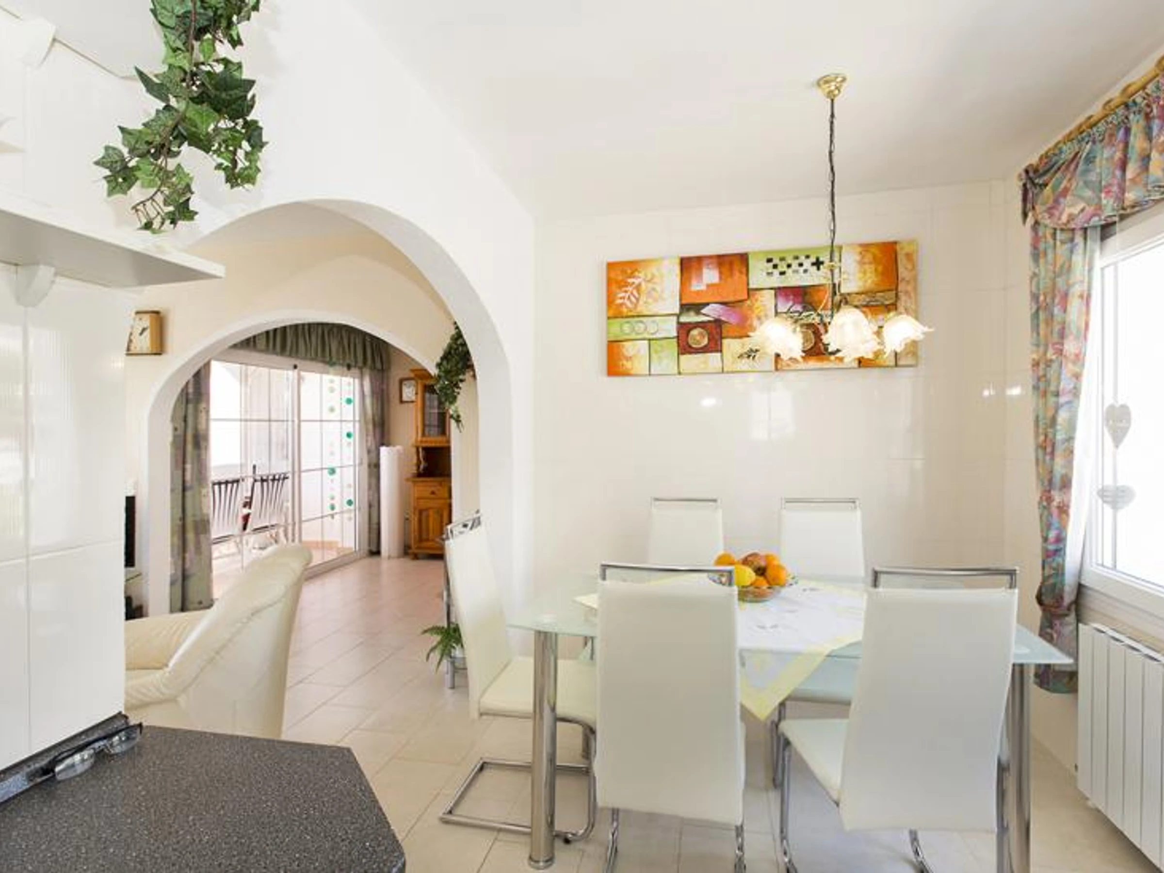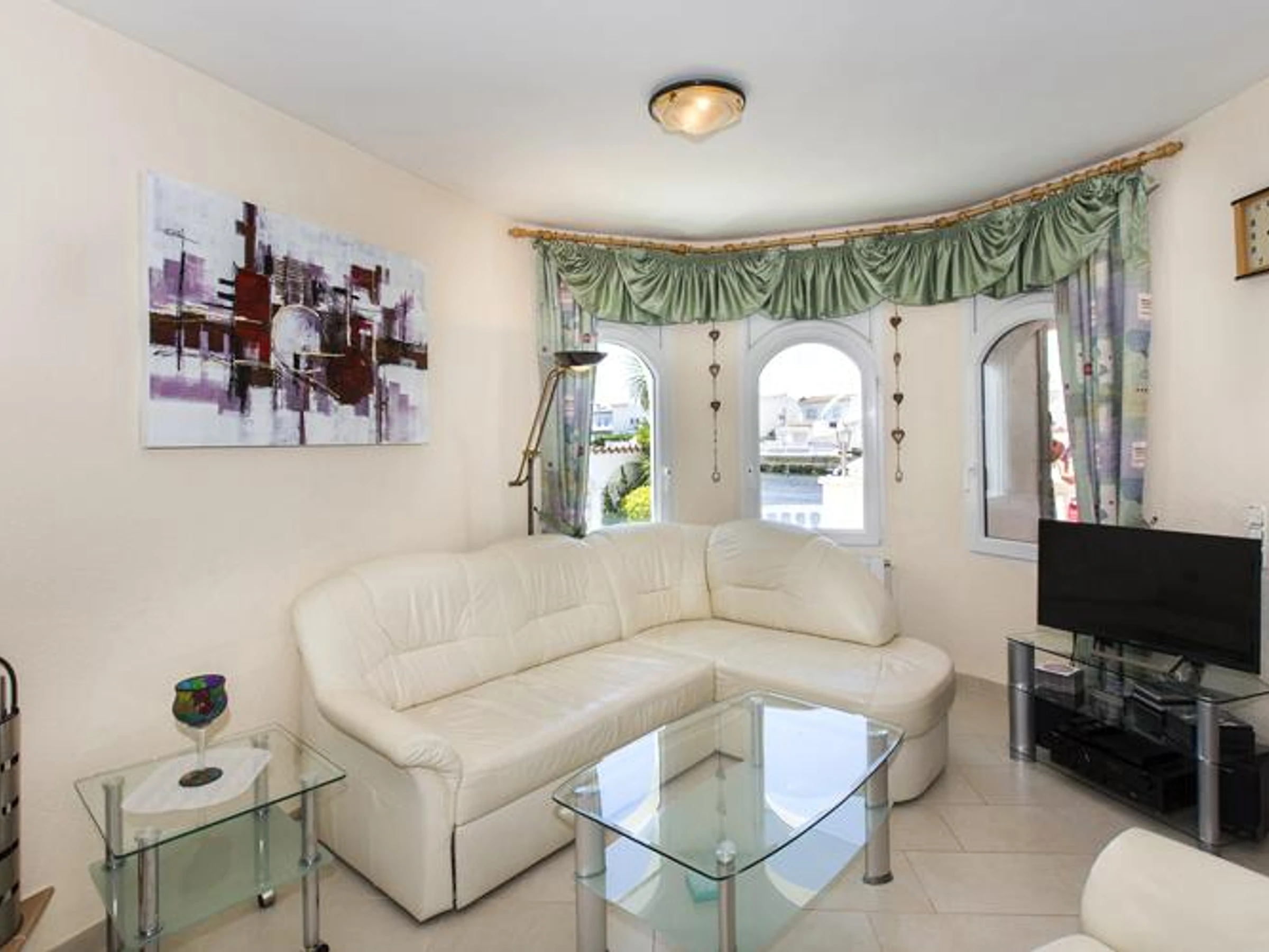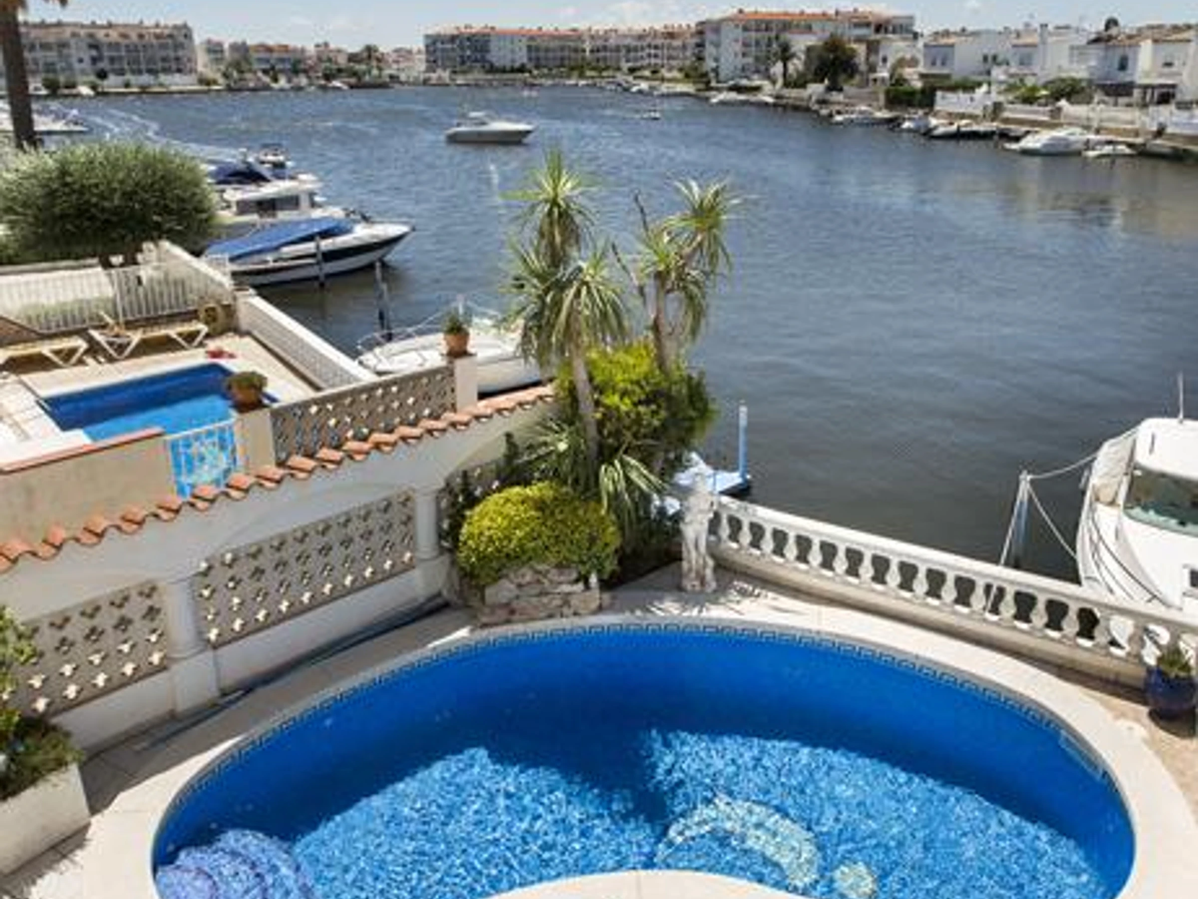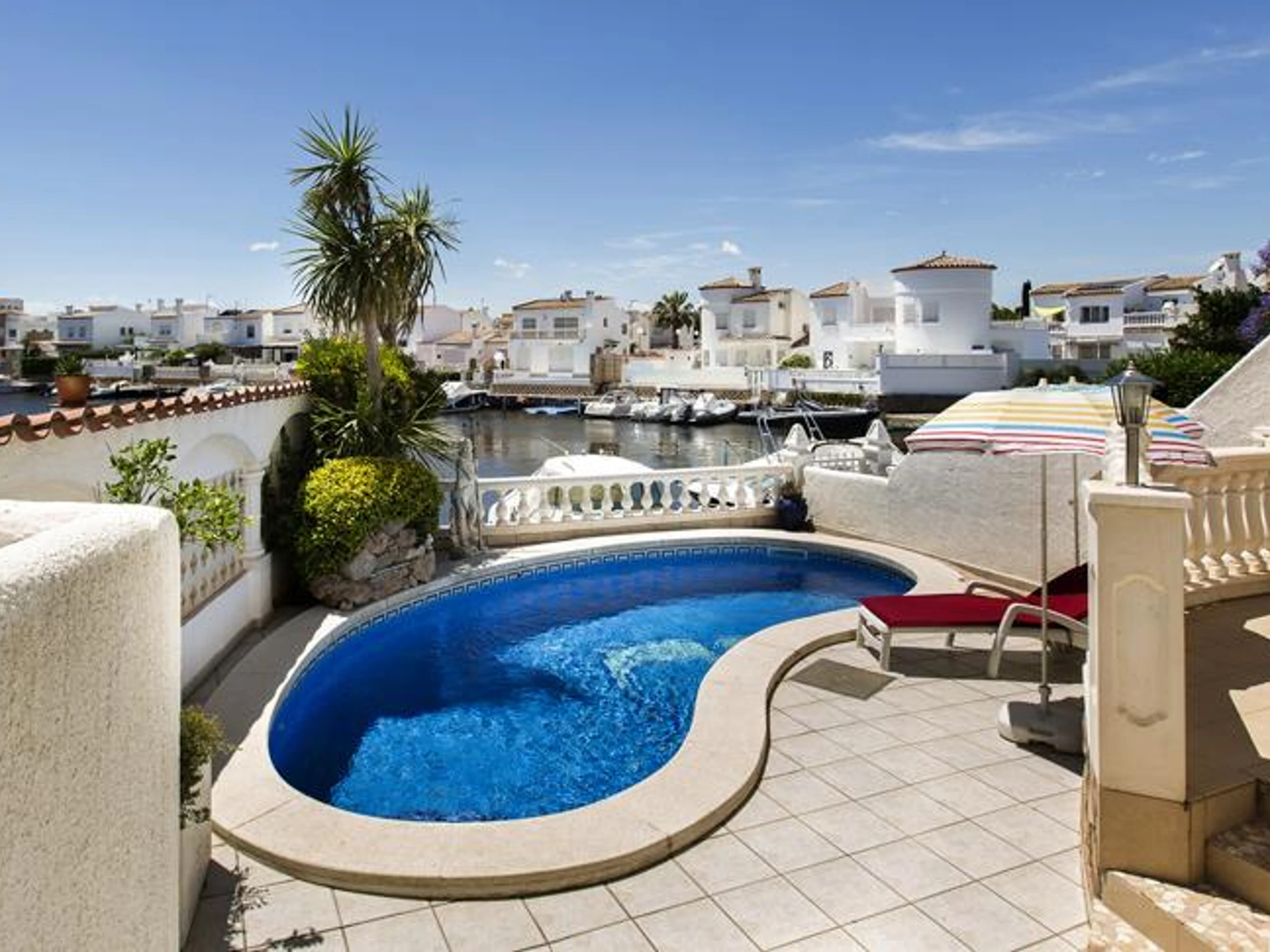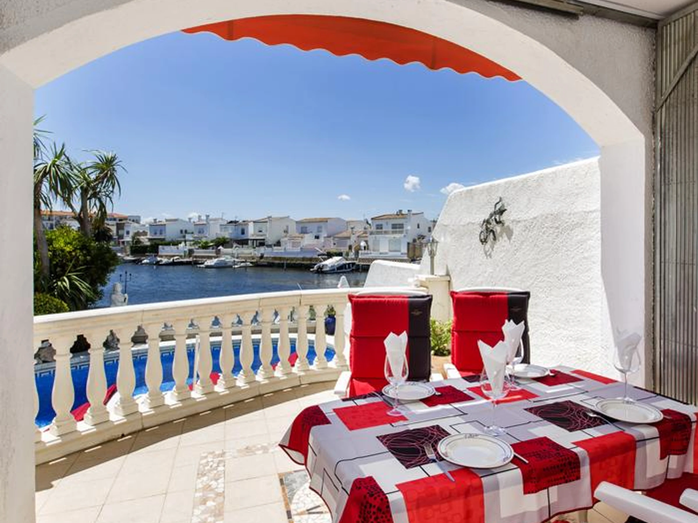 Home Select International presenta esta encantadora casa de alquiler situada en el tranquilo e idílico lago de Sant Maurici, en Empuriabrava. Se trata de una casa tradicional de la zona, muy luminosa y pintada completamente de blanco, que conserva todo el encanto mediterráneo original. En el jardín delantero encontrará un práctico espacio de aparcamiento. Al entrar en la casa, a la izquierda hay un aseo de cortesía. El salón es acogedor y lleno de luz natural. Está amueblado con un sofá en forma de L, un sillón, una mesa de centro, una chimenea y un televisor con canales alemanes. El comedor, con capacidad para cinco personas, es ideal para compartir agradables comidas con amigos o familia. A la derecha del comedor se encuentra la cocina abierta, totalmente equipada con lavavajillas, lavadora, horno, microondas, cafetera, tostadora, frigorífico, congelador, batidora y exprimidor. Desde el vestíbulo, a la izquierda, se accede a la escalera que sube a la planta superior. Arriba hay un baño moderno con ducha, lavabo y WC. Frente al pasillo se encuentra un dormitorio acogedor con dos camas de 90 x 200 cm, mesita de noche, lámparas, ventilador, televisor con canales alemanes y una ventana con espectaculares vistas al lago. Otro dormitorio dispone de una cama doble de 150 x 190 cm, lámparas, ventilador, televisor y ventanas con bonitas vistas. En el mismo nivel hay un segundo baño con bañera, lavabo y WC. El último dormitorio cuenta con una cama individual (90 x 190 cm), mesita de noche, lámpara y televisor. En el exterior, la casa ofrece una preciosa terraza con vistas al canal, equipada con barbacoa y una piscina de agua salada de 6 x 2 metros. El espacio exterior está distribuido en dos niveles: en la parte superior hay una mesa con cuatro sillas para disfrutar de comidas al aire libre, y unos escalones más abajo se encuentra la zona de piscina con sillones y tumbonas, perfecta para relajarse frente al lago de Sant Maurici. La casa dispone de Wi-Fi gratuito y admite animales de compañía (perros pequeños con un suplemento de 50 €). No se aceptan grupos de jóvenes. La ropa de cama y las toallas no están incluidas en el precio, pero se pueden alquilar por 15 € por persona (ropa de cama) o 25 € por persona (ropa de cama + toallas).abrava. Eficiencia energética: Consumo de energía: E – 210 kWh/m² al año Emisiones de CO₂: F – 55 kg CO₂/m² al año