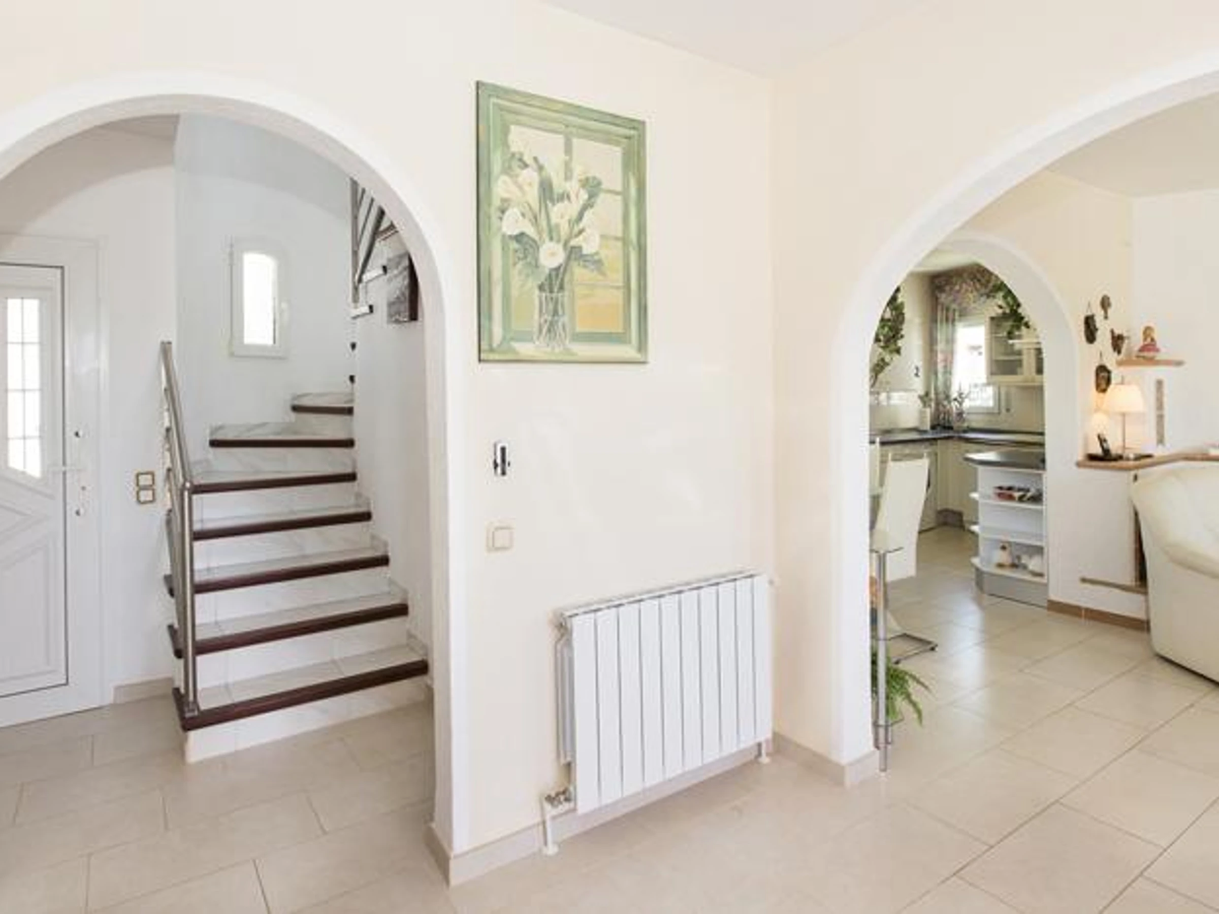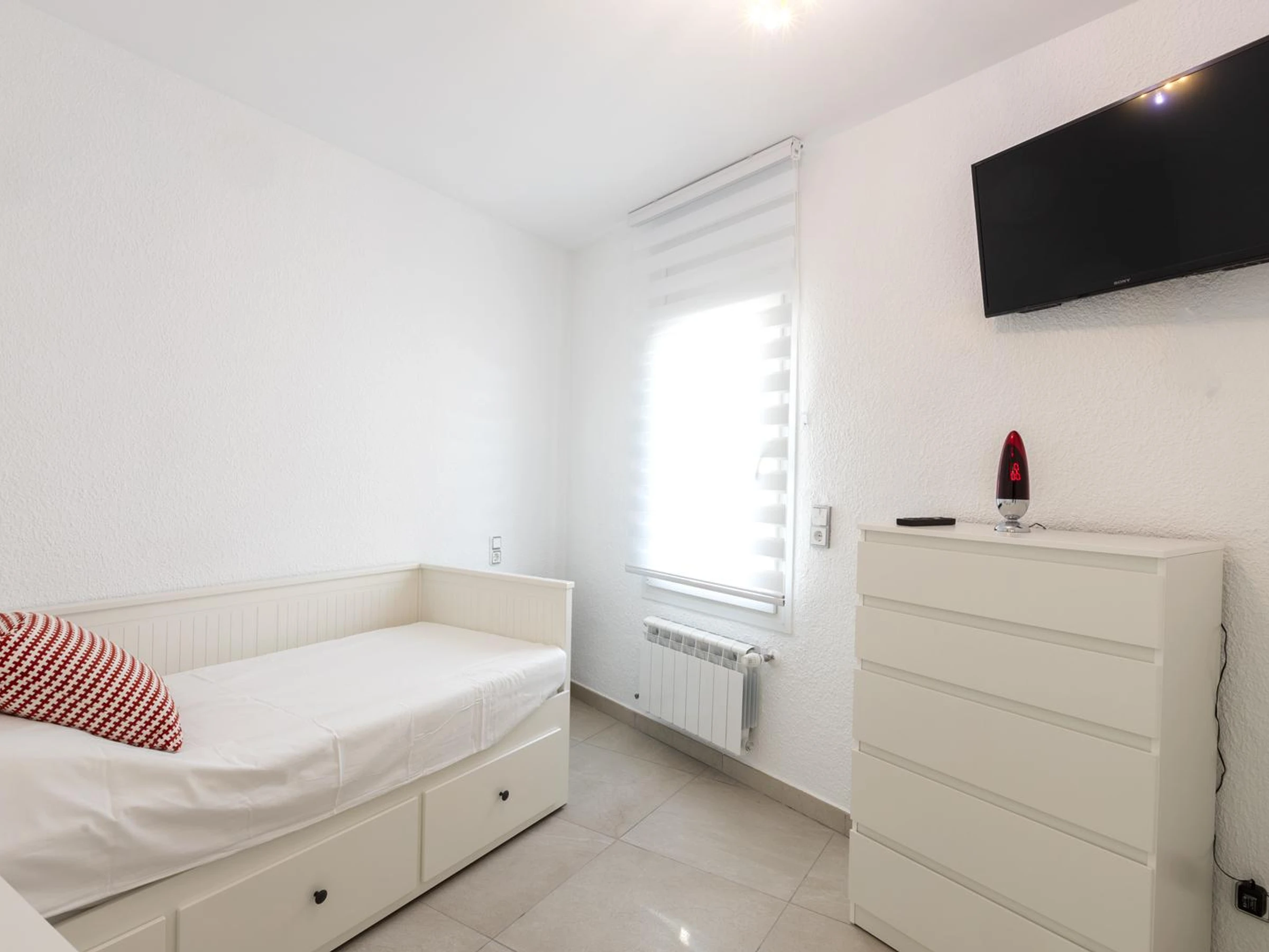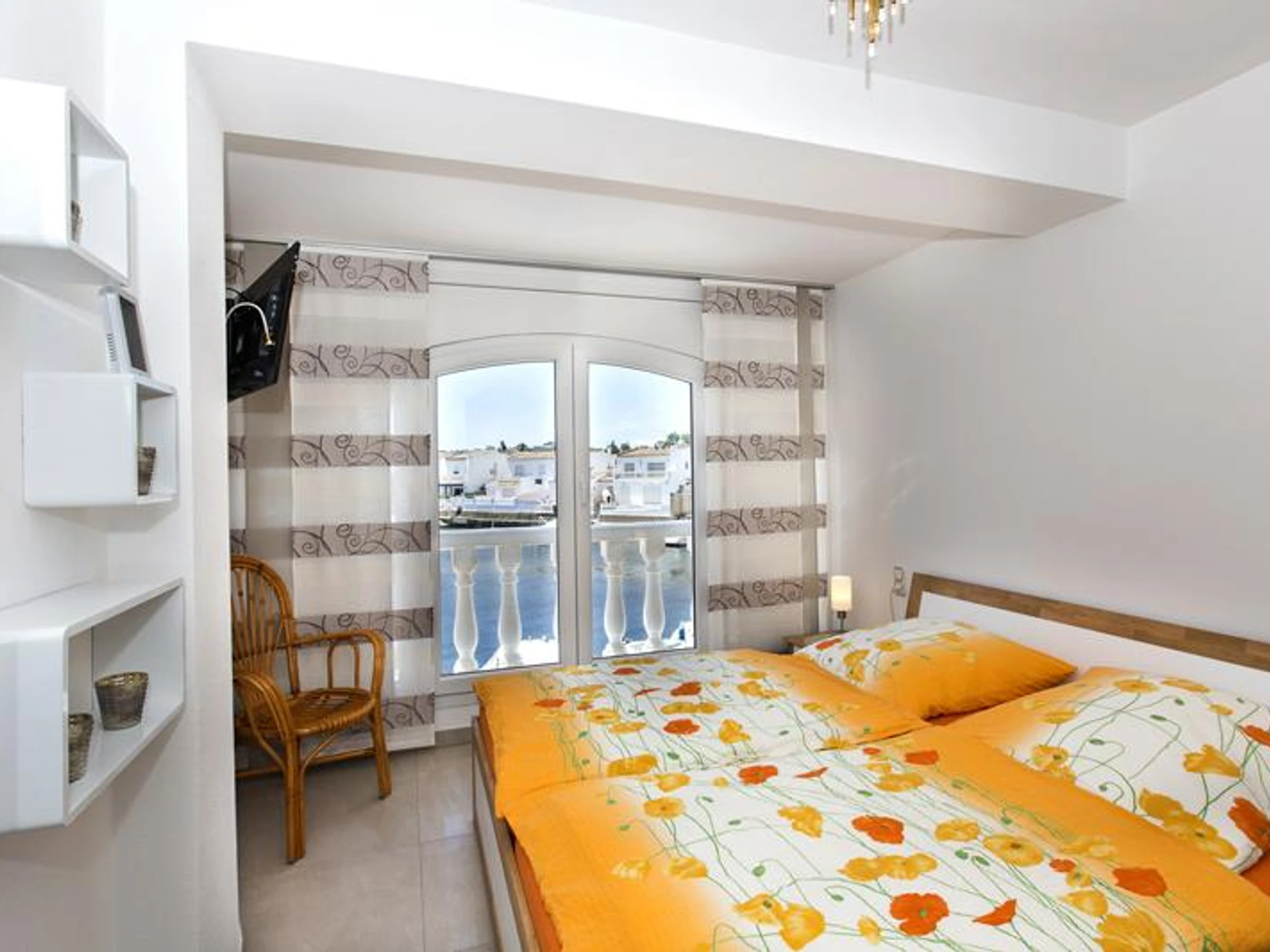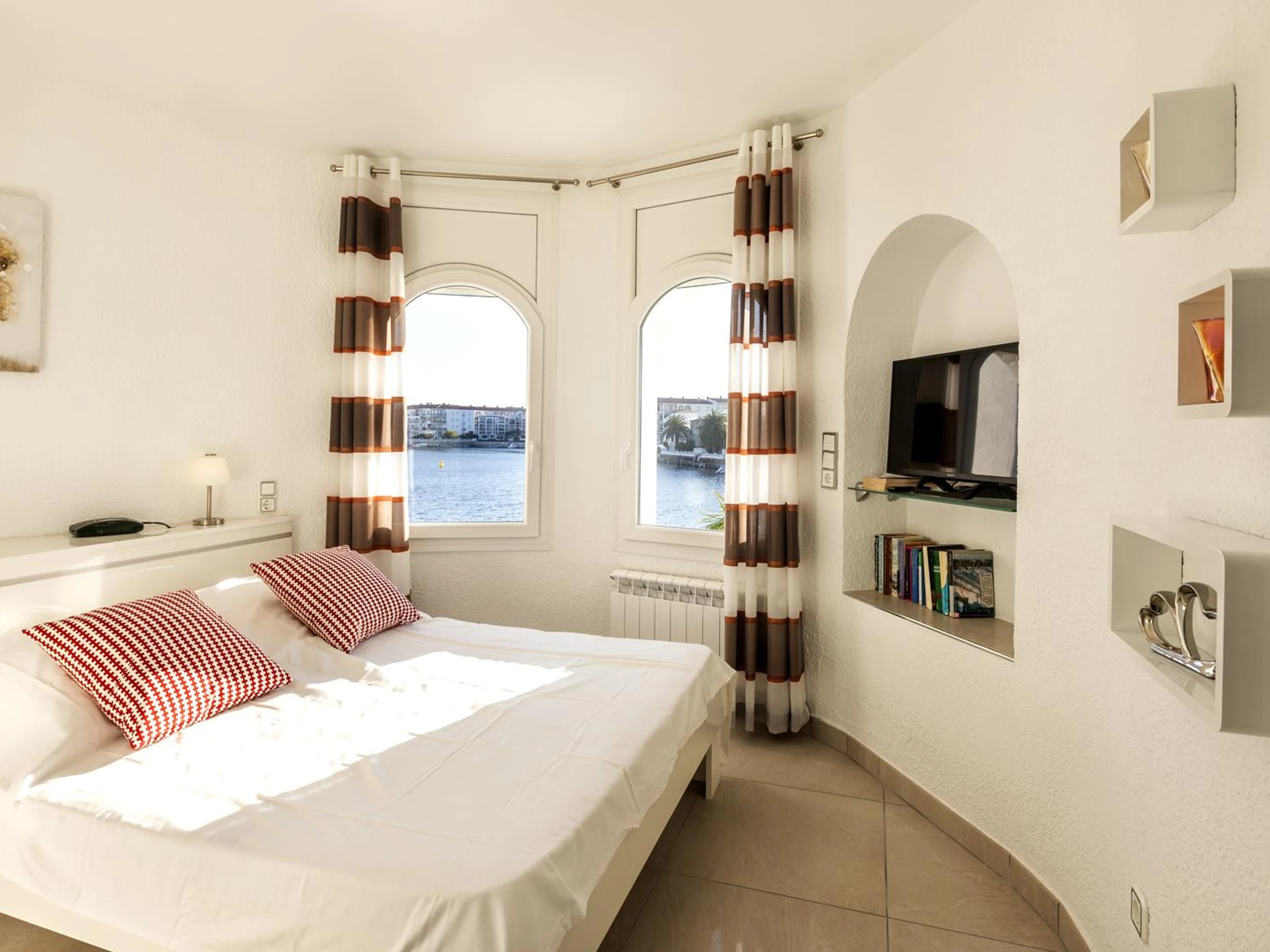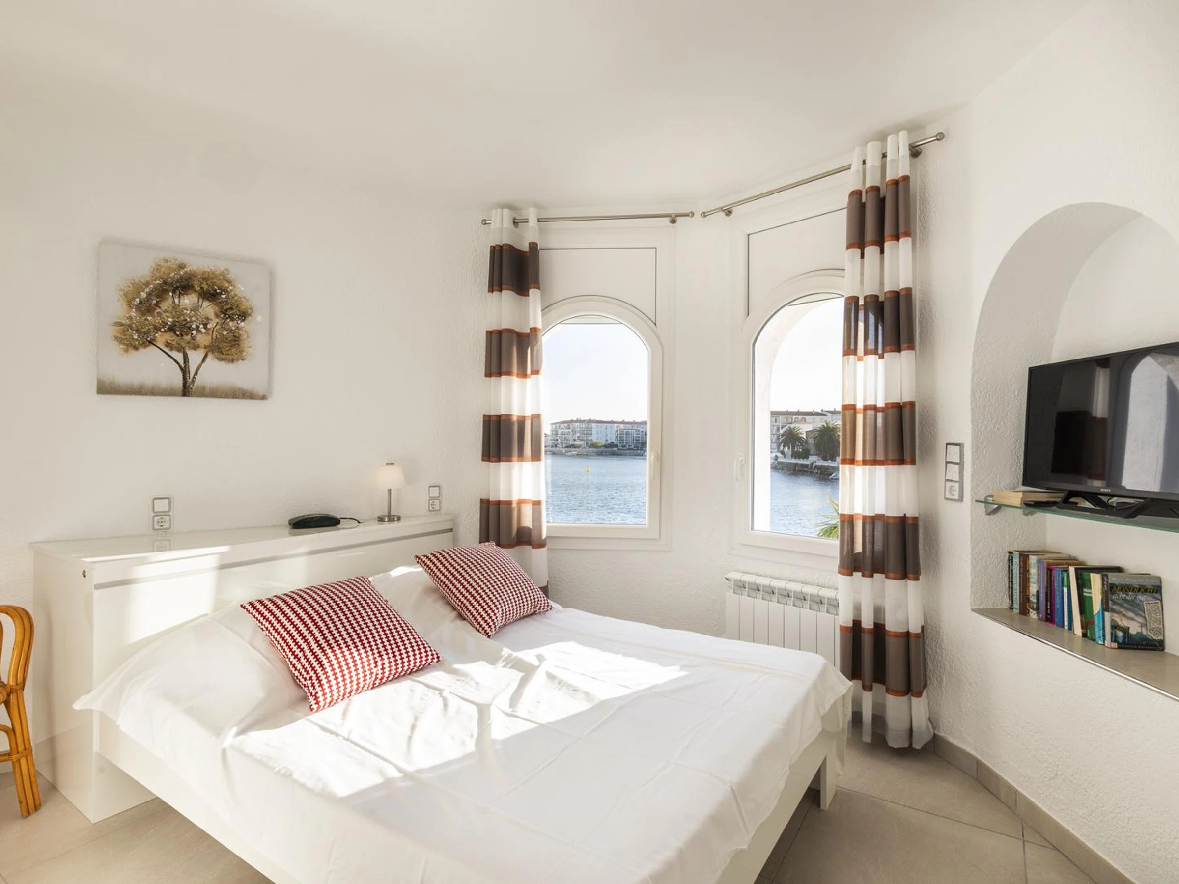 Home Select International presenta esta encantadora casa de alquiler situada en el tranquilo e idílico lago de Sant Maurici, en Empuriabrava. Se trata de una casa tradicional de la zona, muy luminosa y pintada completamente de blanco, que conserva todo el encanto mediterráneo original. En el jardín delantero encontrará un práctico espacio de aparcamiento. Al entrar en la casa, a la izquierda hay un aseo de cortesía. El salón es acogedor y lleno de luz natural. Está amueblado con un sofá en forma de L, un sillón, una mesa de centro, una chimenea y un televisor con canales alemanes. El comedor, con capacidad para cinco personas, es ideal para compartir agradables comidas con amigos o familia. A la derecha del comedor se encuentra la cocina abierta, totalmente equipada con lavavajillas, lavadora, horno, microondas, cafetera, tostadora, frigorífico, congelador, batidora y exprimidor. Desde el vestíbulo, a la izquierda, se accede a la escalera que sube a la planta superior. Arriba hay un baño moderno con ducha, lavabo y WC. Frente al pasillo se encuentra un dormitorio acogedor con dos camas de 90 x 200 cm, mesita de noche, lámparas, ventilador, televisor con canales alemanes y una ventana con espectaculares vistas al lago. Otro dormitorio dispone de una cama doble de 150 x 190 cm, lámparas, ventilador, televisor y ventanas con bonitas vistas. En el mismo nivel hay un segundo baño con bañera, lavabo y WC. El último dormitorio cuenta con una cama individual (90 x 190 cm), mesita de noche, lámpara y televisor. En el exterior, la casa ofrece una preciosa terraza con vistas al canal, equipada con barbacoa y una piscina de agua salada de 6 x 2 metros. El espacio exterior está distribuido en dos niveles: en la parte superior hay una mesa con cuatro sillas para disfrutar de comidas al aire libre, y unos escalones más abajo se encuentra la zona de piscina con sillones y tumbonas, perfecta para relajarse frente al lago de Sant Maurici. La casa dispone de Wi-Fi gratuito y admite animales de compañía (perros pequeños con un suplemento de 50 €). No se aceptan grupos de jóvenes. La ropa de cama y las toallas no están incluidas en el precio, pero se pueden alquilar por 15 € por persona (ropa de cama) o 25 € por persona (ropa de cama + toallas).abrava. Eficiencia energética: Consumo de energía: E – 210 kWh/m² al año Emisiones de CO₂: F – 55 kg CO₂/m² al año