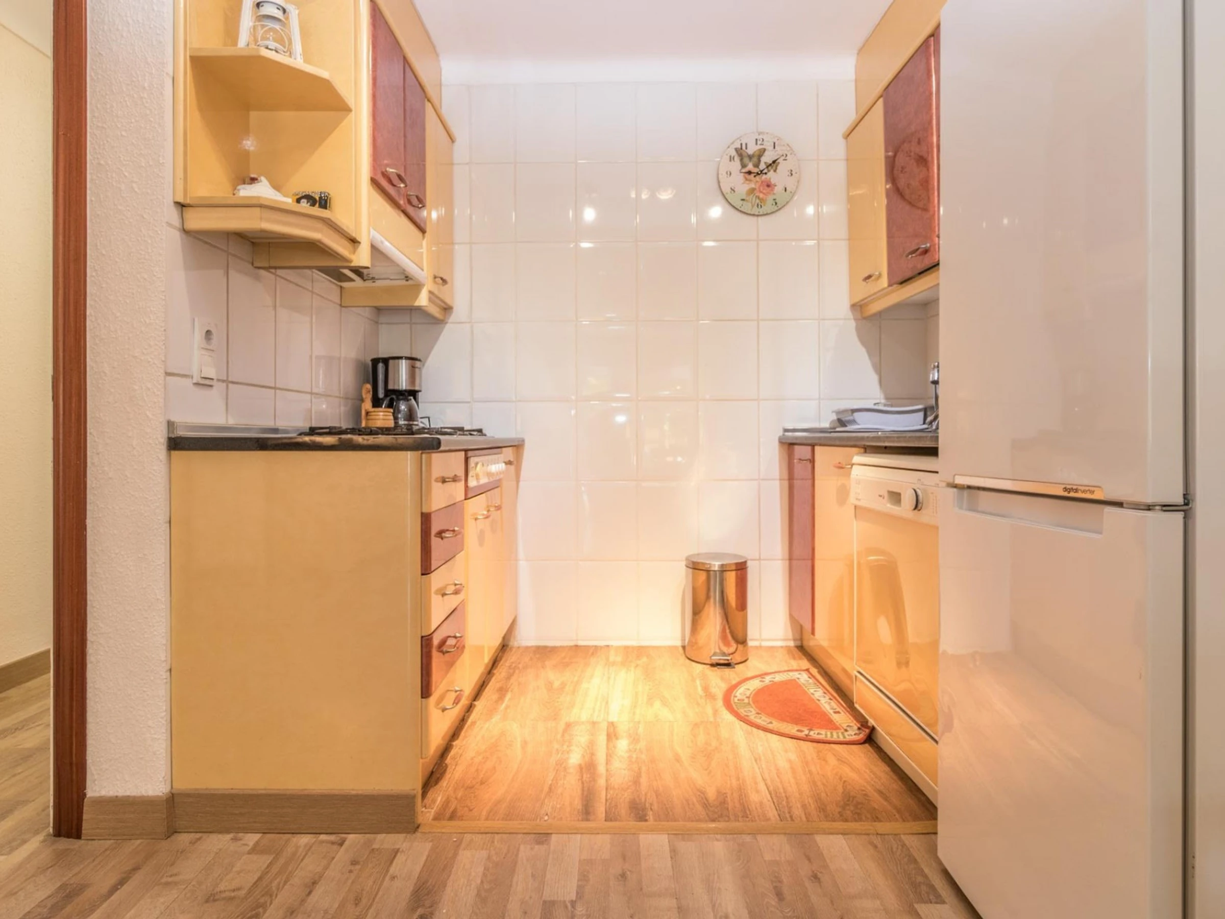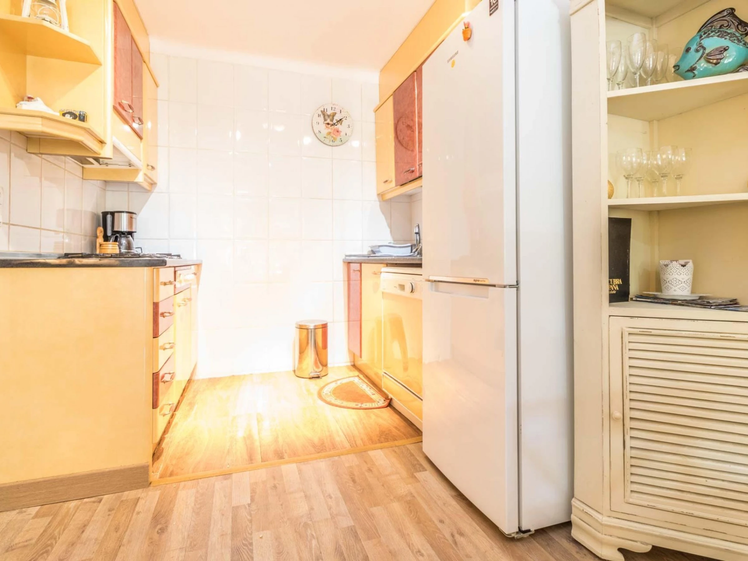 La cocina americana, de gas, está equipada con nevera, horno, lavadora, lavavajillas, vajilla, cubertería, utensilios de cocina, cafetera, tostadora y hervidor de agua.