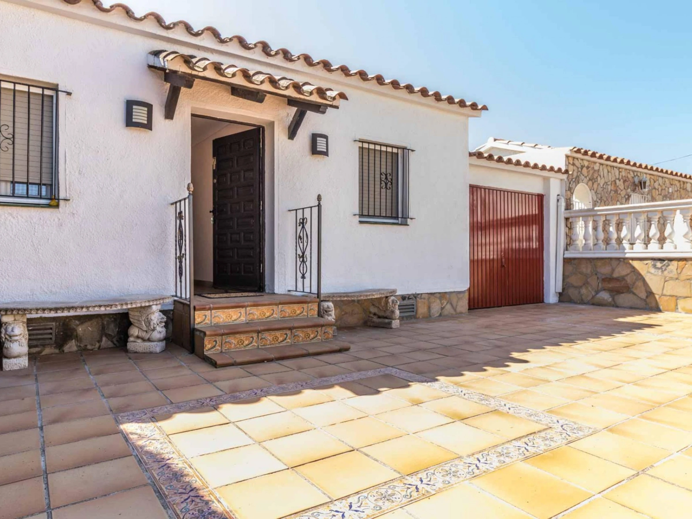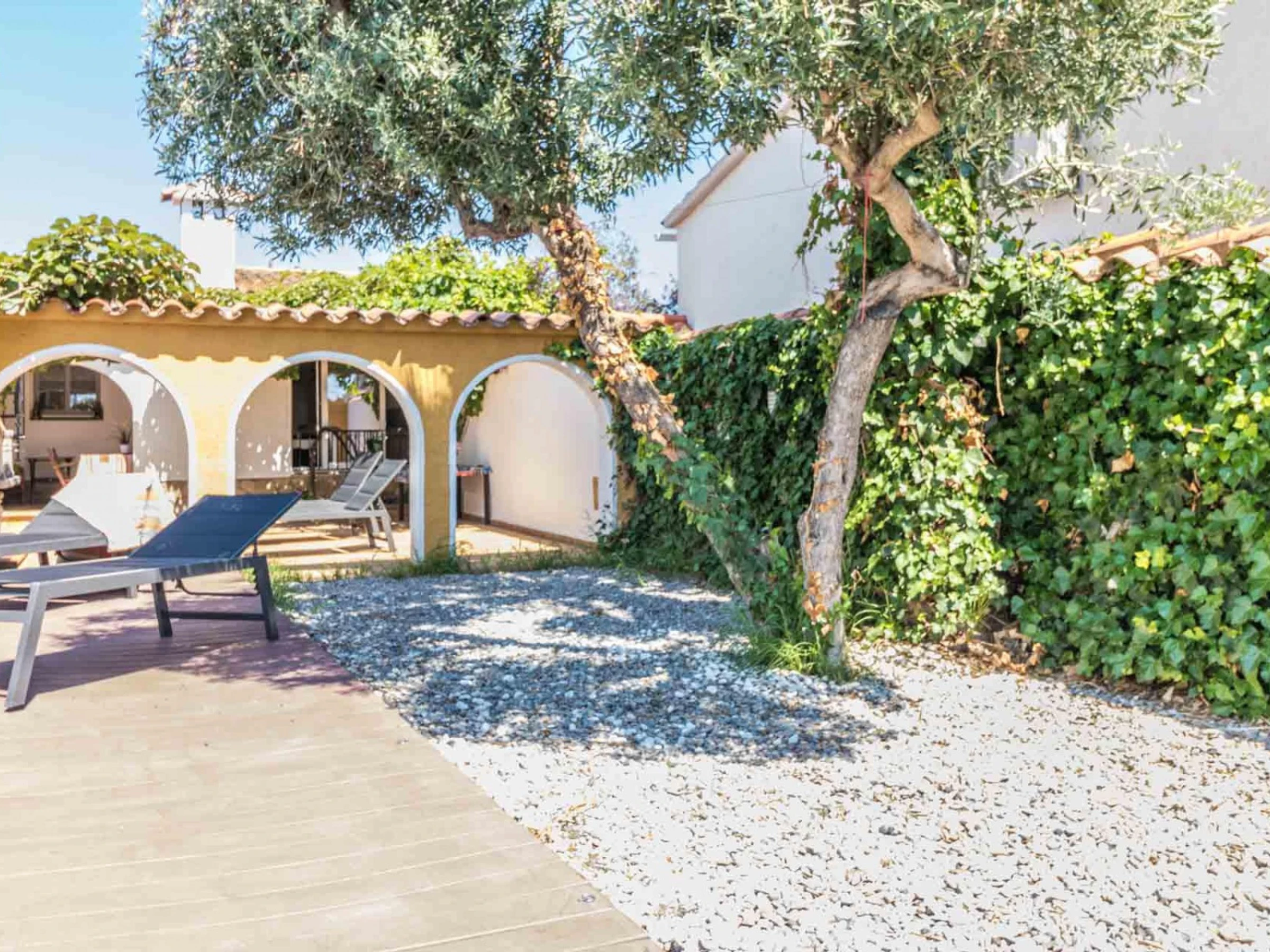 Se encuentra a 30 m del supermercado, a 3 km de la playa de arena, a 15 km del campo de golf “Peralada”, a 15 km de la estación de tren AVE/TGV Figueres y a 65 km del aeropuerto de Girona. Está ubicada dentro de una urbanización, en una zona adecuada para estancias familiares.