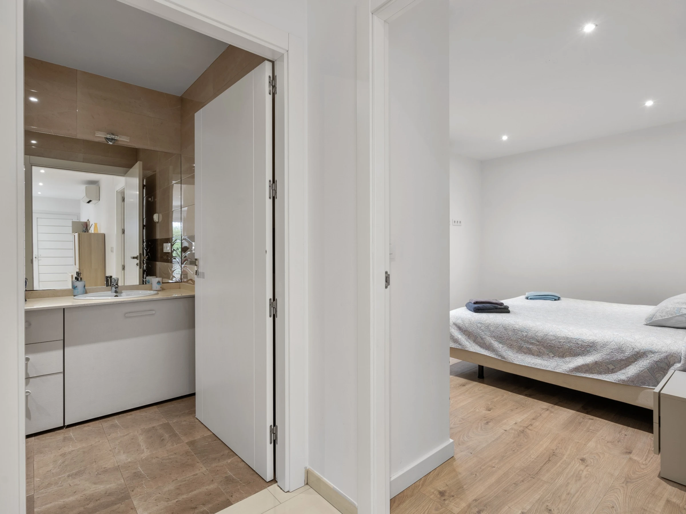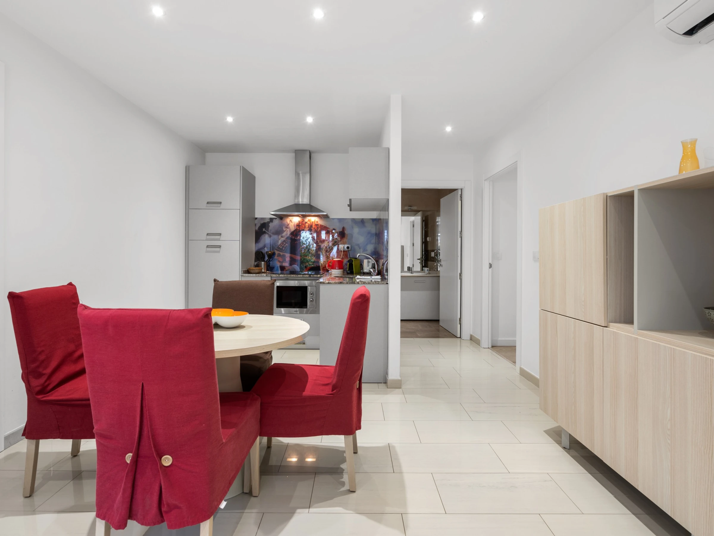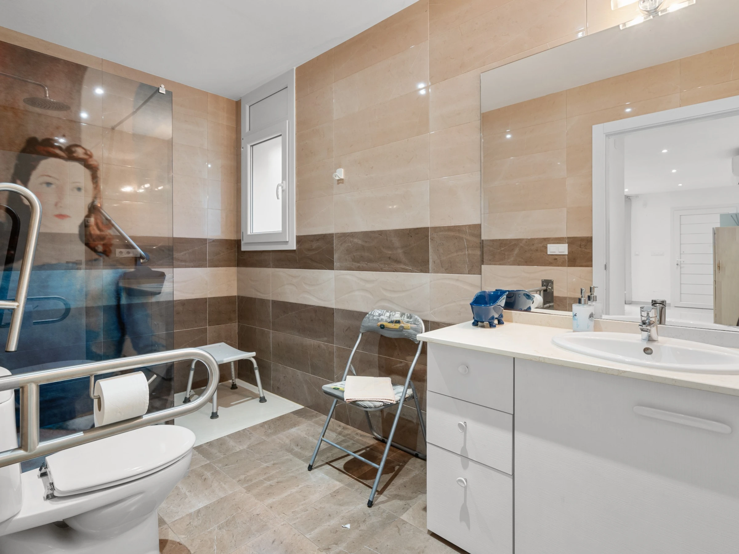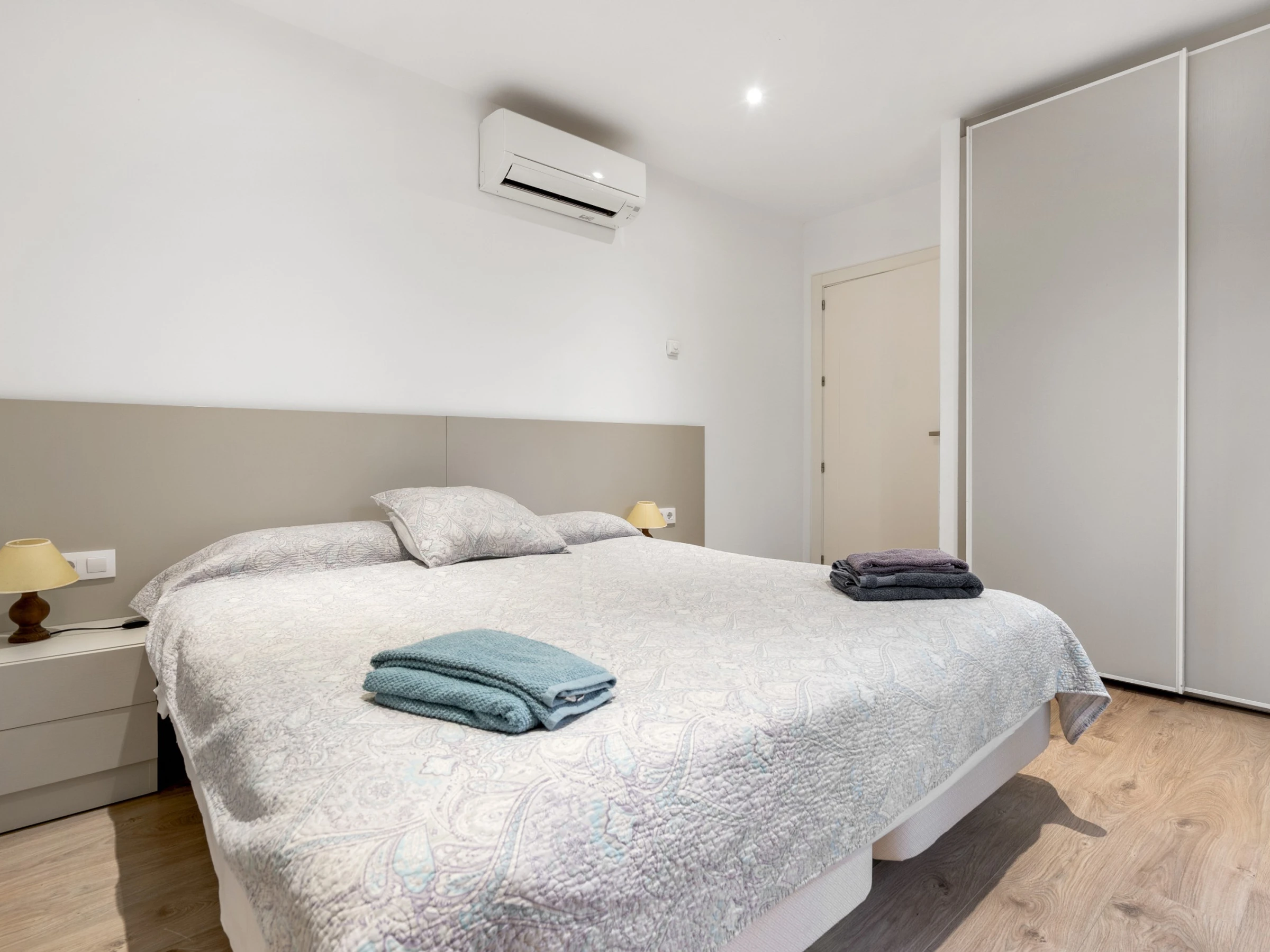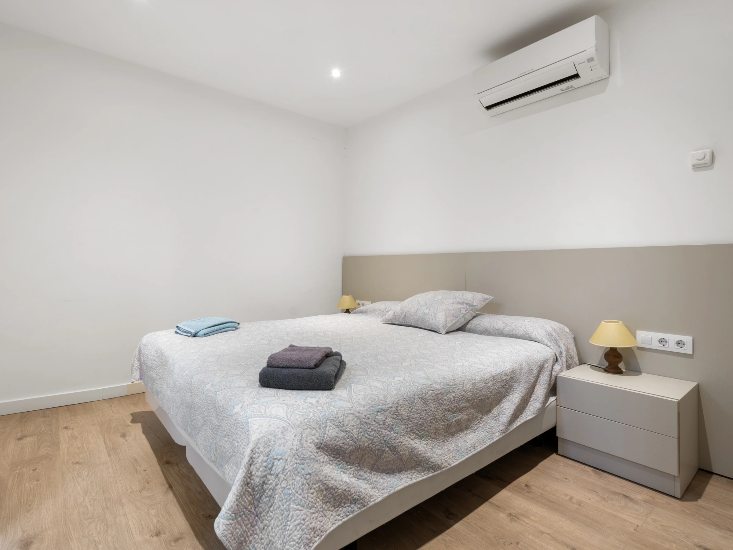 Nuestro bonito apartamento a un paso de la playa con capacidad para cuatro huéspedes, cuenta con una amplia habitación de matrimonio con amplia cama 180 cm por 190 cm con colchón de última generación y en el salón un cómodo sofá cama de 160 cm adaptado para largas estancias. El salón es ideal para relajarse, mirar la Smart TV, la cual dispone de canales con todos los idiomas, o pasar un rato en familia. Cuenta con cocina americana hecha con materiales de alta calidad y equipada con todo lo necesario para la preparación de cualquier plato que podrá disfrutar en el salón o en la terraza privada con la que cuenta el apartamento a un paso de la playa ya que es planta baja. Además, la cocina cuenta con diversos electrodomésticos como cafetera, hervidor, tostadora, microondas, nevera, horno, vitrocerámica y lavavajillas. El apartamento cuenta con un gran cuarto de baño adaptado para personas discapacitadas, garantizando comodidad y accesibilidad para todos los huéspedes. Un acogedor apartamento con ubicación excelente y apto para personas con movilidad reducida.