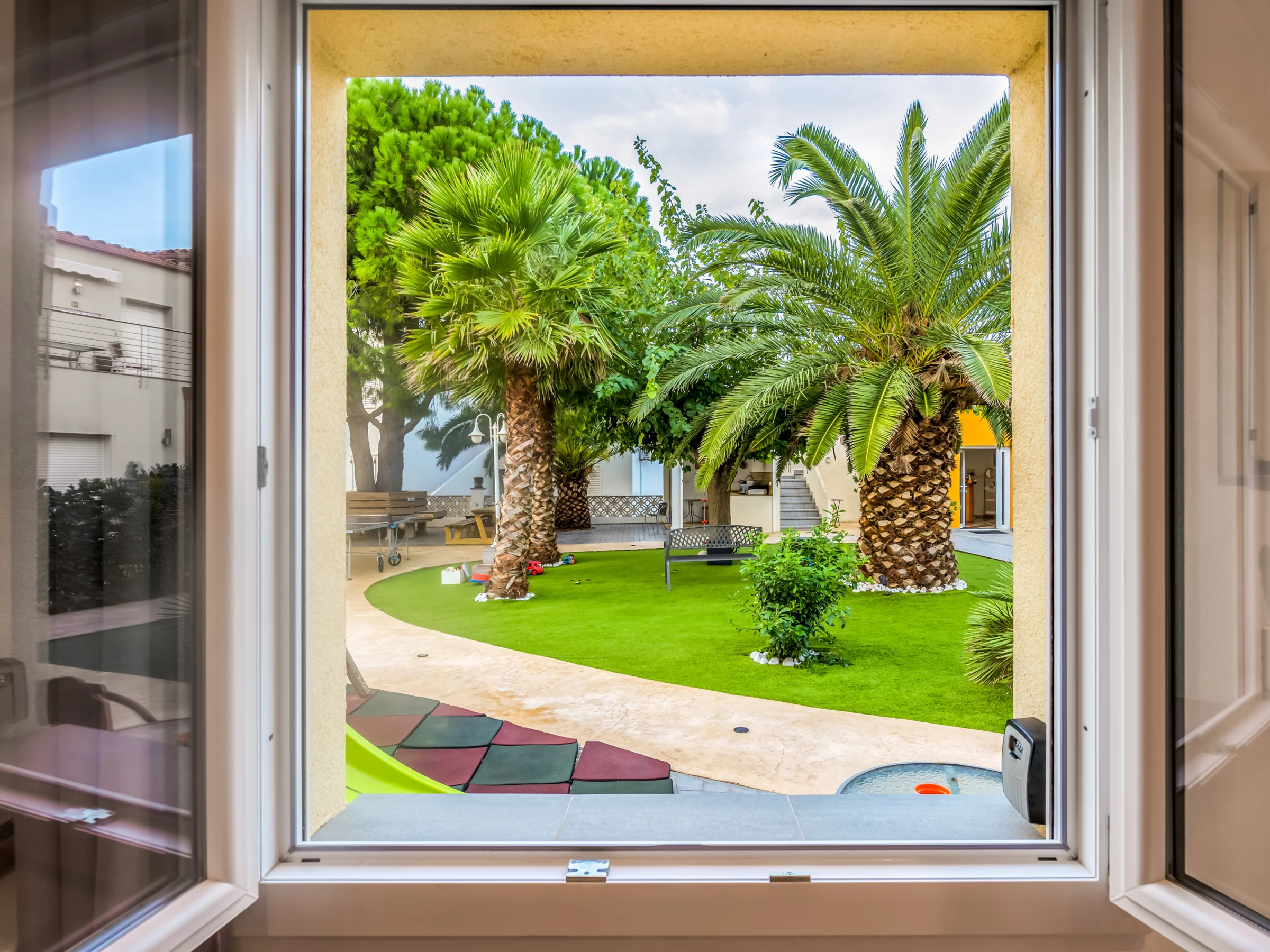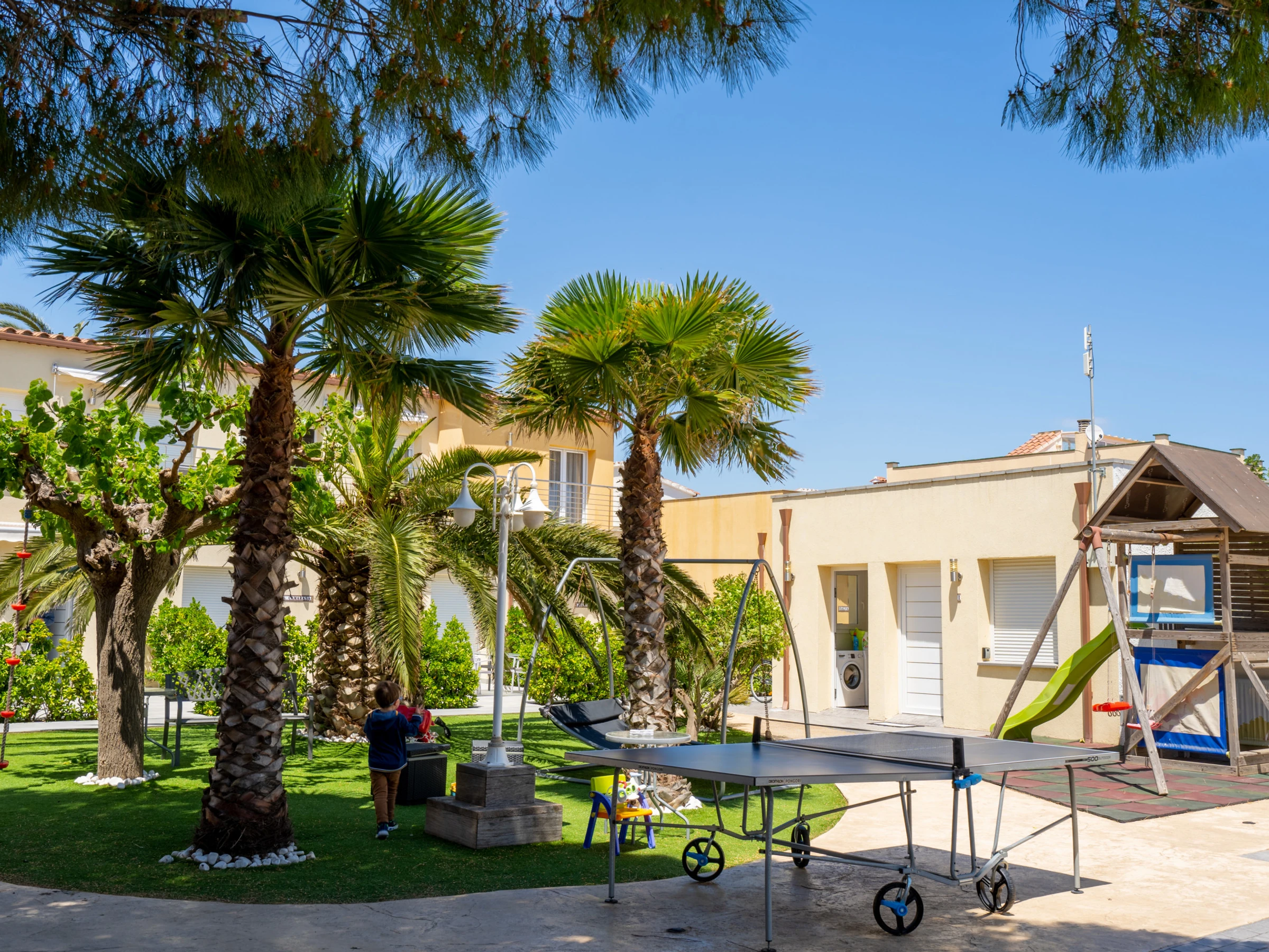 Nuestros apartamentos La Vida Sin Límites cuentan con una amplia zona común que podrán usar nuestros huéspedes, servicios excepcionales como lavandería, barbacoa exterior, zonas de descanso, solarium, mesa de ping-pong y parque infantil. Los huéspedes pueden disfrutar de nuestras bicicletas de cortesía, perfectas para explorar las calles de Empuriabrava, el paseo marítimo, las impresionantes rutas del Parque Nacional de los Aiguamolls y las reservas naturales protegidas. El complejo también ofrece aparcamiento privado por un coste adicional en temporada alta.