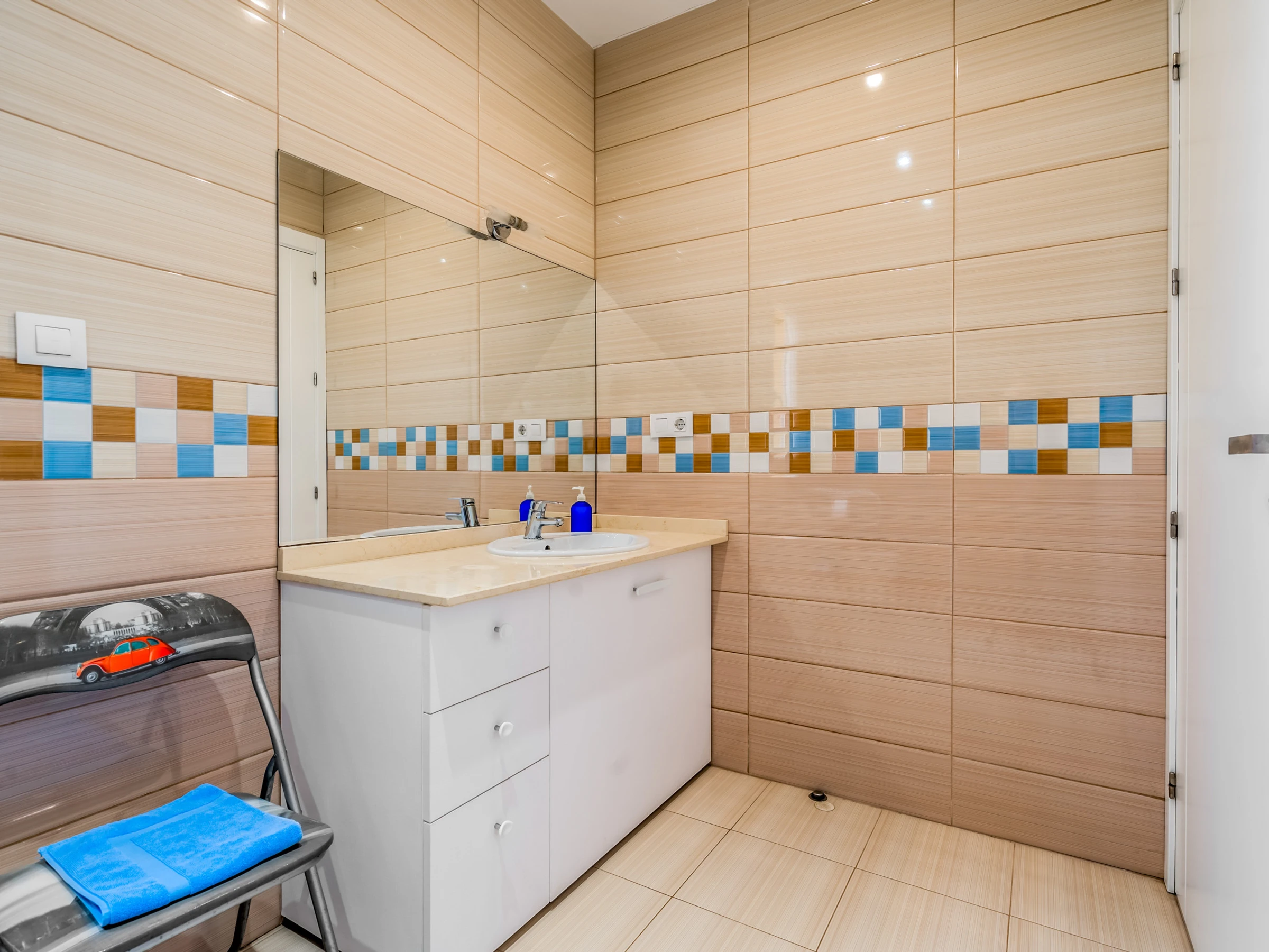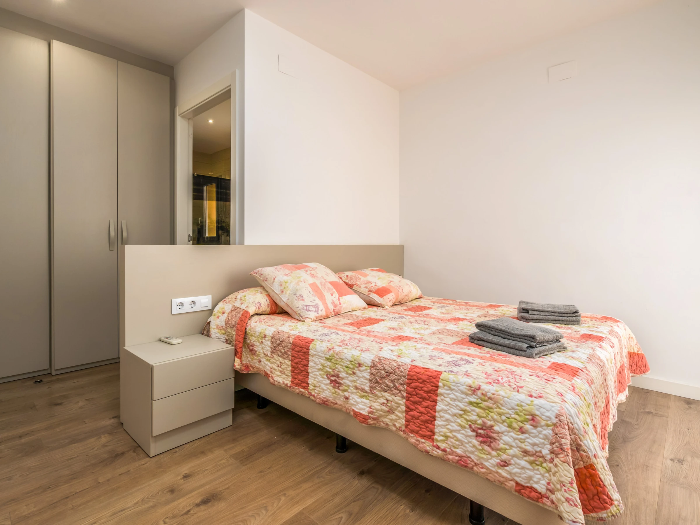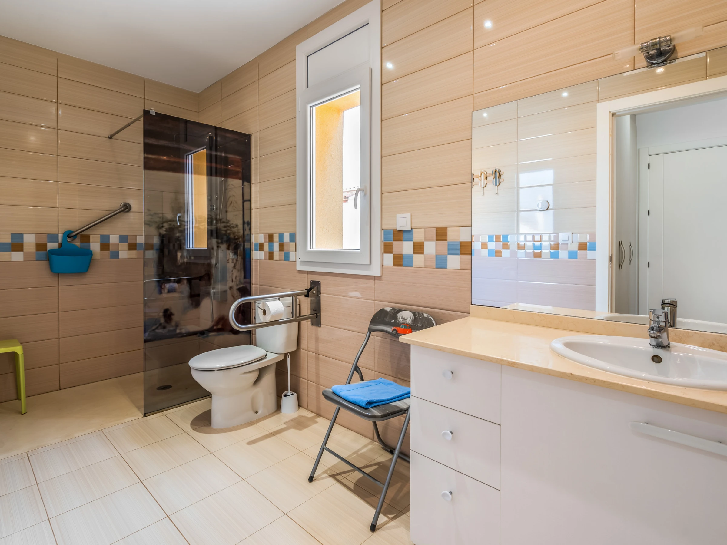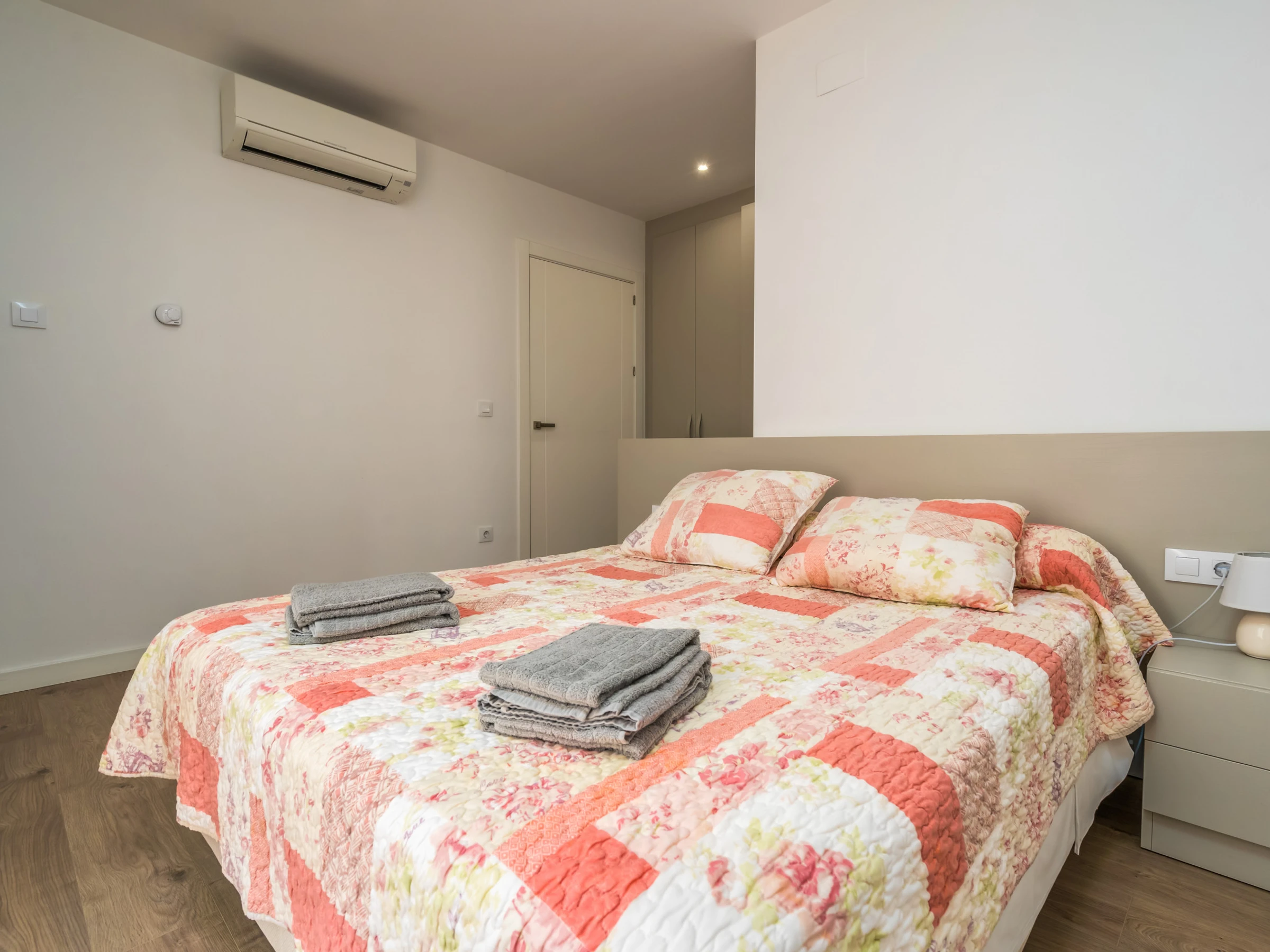 Nuestro espacioso apartamento con capacidad para cuatro personas, cuenta con una amplia habitación de matrimonio con cama de 160 cm y 190 cm con colchón de última generación y en el salón un cómodo sofá cama de 160 cm adaptado para largas estancias. El salón es ideal para descansar, mirar la TV, la cual es una Smart TV con canales con todos los idiomas, o pasar un buen rato en familia. Cuenta con cocina americana hecha con materiales de primera calidad y perfectamente equipada para la preparación de cualquier plato que podrás disfrutar en el salón o en la terraza privada con vistas al mar. La cocina cuenta con diversos electrodomésticos como cafetera, hervidor, tostadora, microondas, nevera, horno, vitrocerámica y lavavajillas . El cuarto de baño es grande y adaptado para personas discapacitadas, garantizando comodidad y accesibilidad para todos los huéspedes. Para facilitar aún más el acceso, cuenta con ascensor ya que se encuentra en un primer piso.