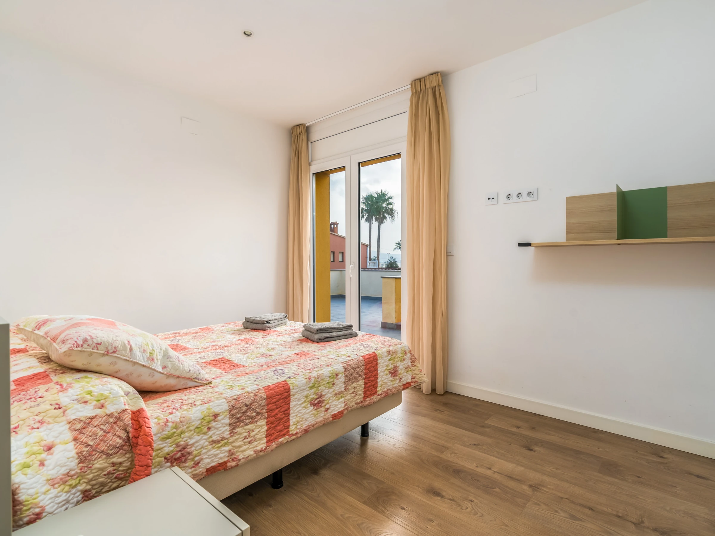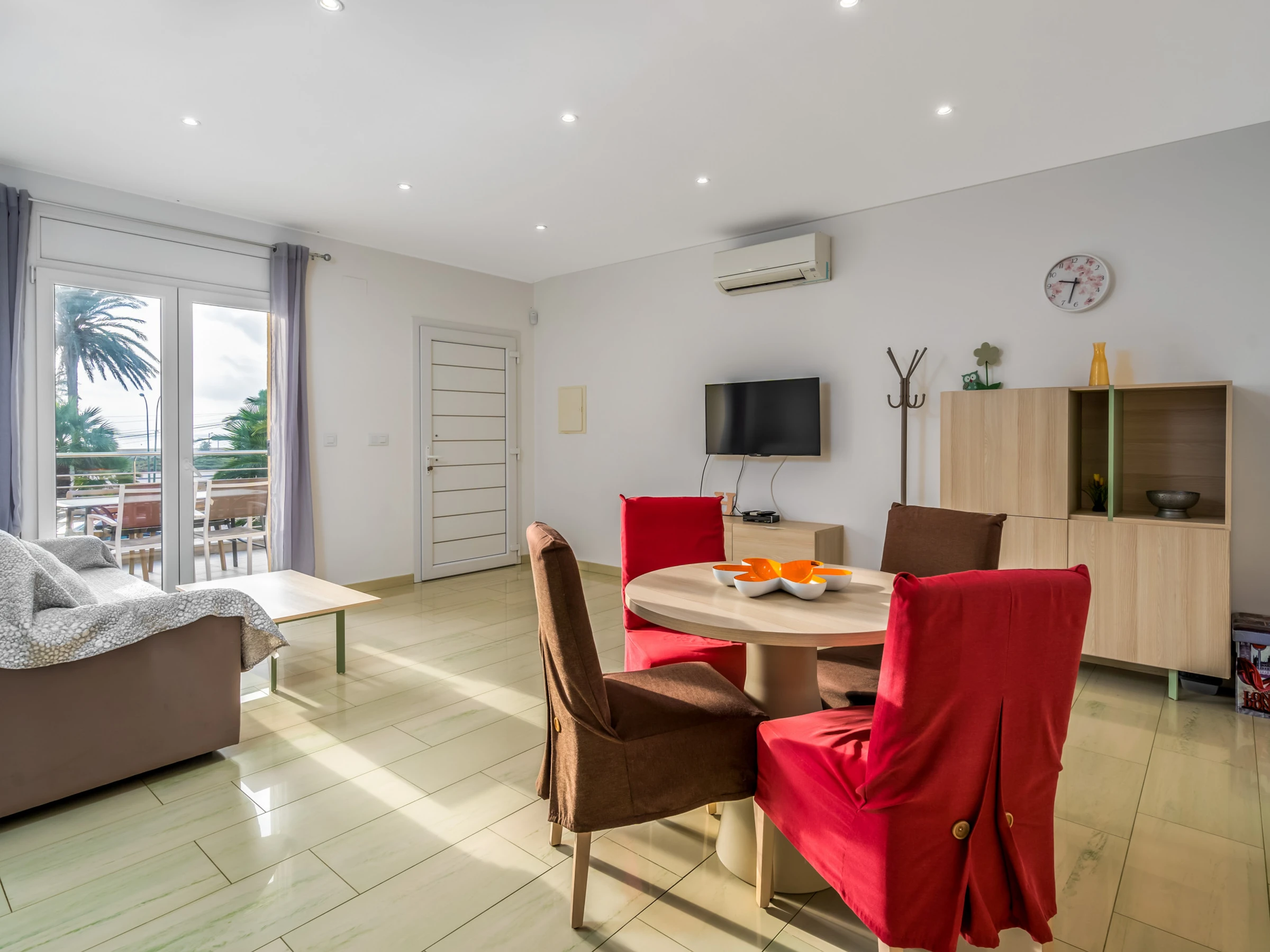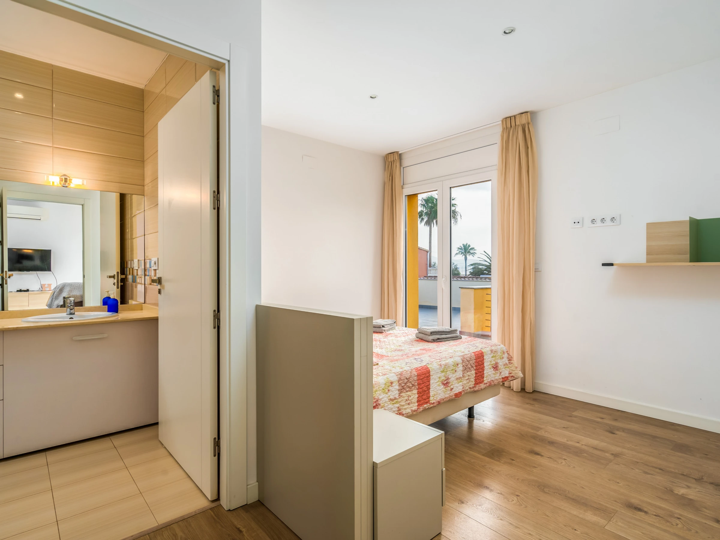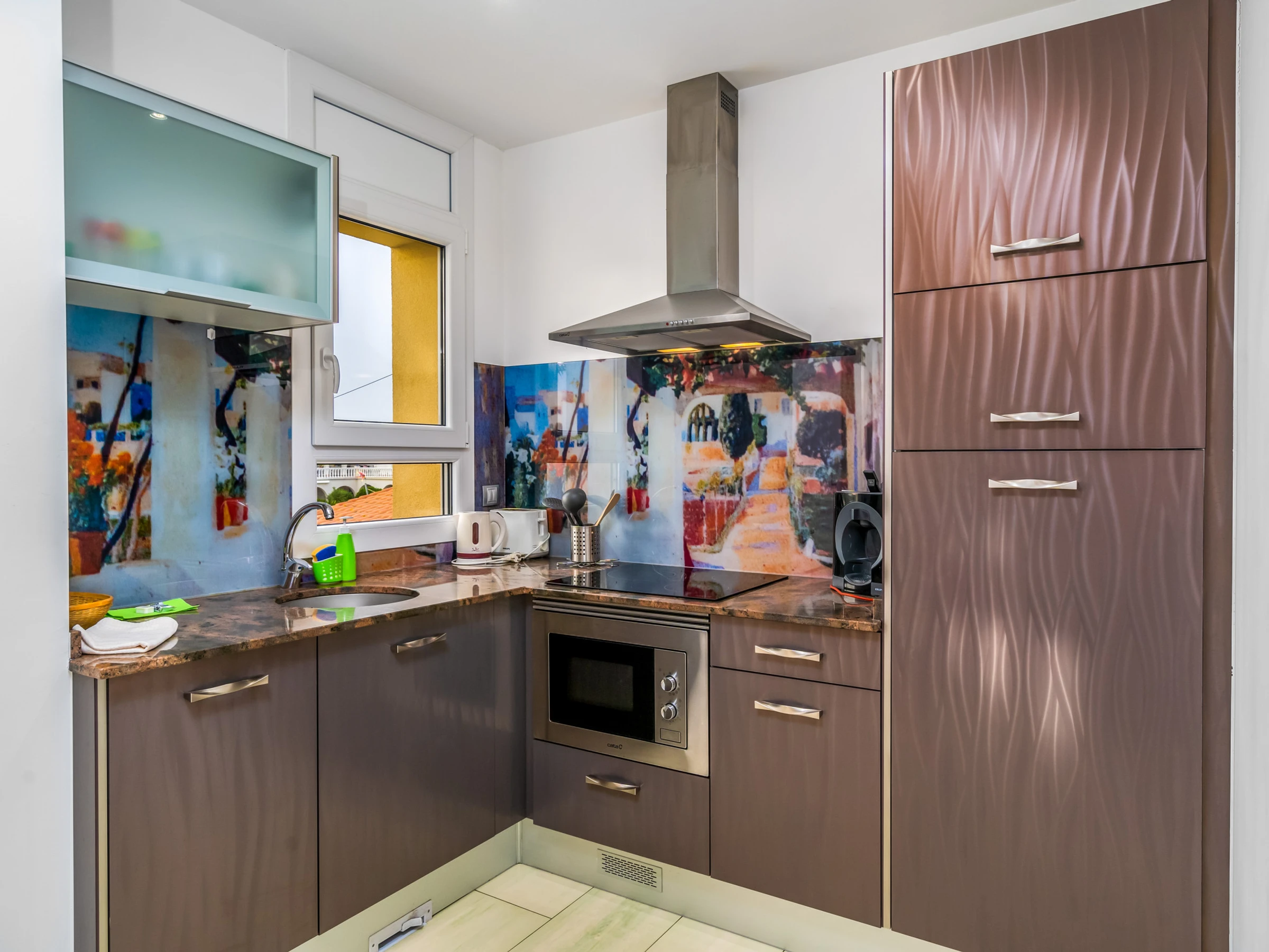 Nuestro espacioso apartamento con capacidad para cuatro personas, cuenta con una amplia habitación de matrimonio con cama de 160 cm y 190 cm con colchón de última generación y en el salón un cómodo sofá cama de 160 cm adaptado para largas estancias. El salón es ideal para descansar, mirar la TV, la cual es una Smart TV con canales con todos los idiomas, o pasar un buen rato en familia. Cuenta con cocina americana hecha con materiales de primera calidad y perfectamente equipada para la preparación de cualquier plato que podrás disfrutar en el salón o en la terraza privada con vistas al mar. La cocina cuenta con diversos electrodomésticos como cafetera, hervidor, tostadora, microondas, nevera, horno, vitrocerámica y lavavajillas . El cuarto de baño es grande y adaptado para personas discapacitadas, garantizando comodidad y accesibilidad para todos los huéspedes. Para facilitar aún más el acceso, cuenta con ascensor ya que se encuentra en un primer piso.