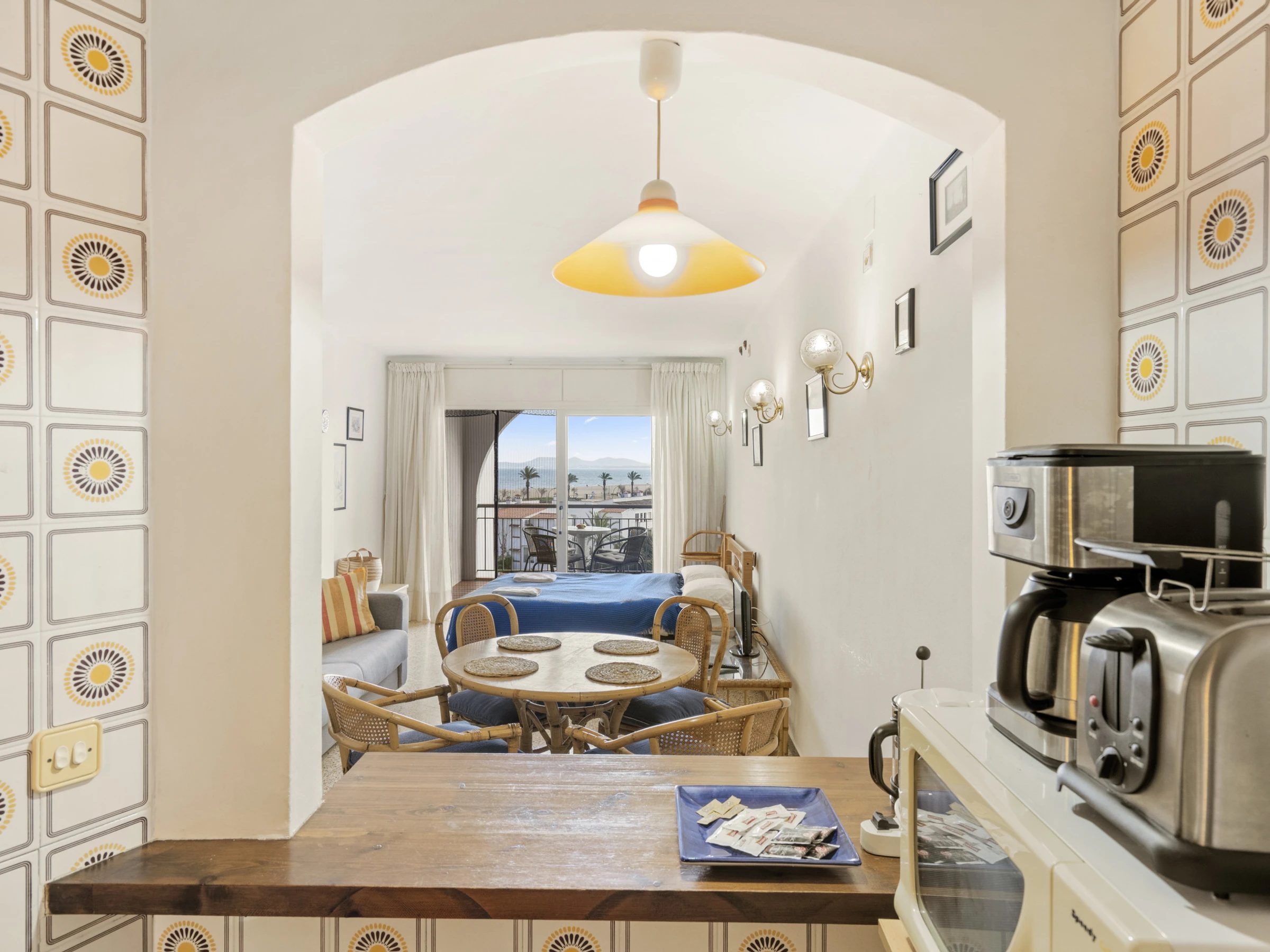 Estudio de 40 m² con terraza que ofrece una vista magnífica del mar, ubicado en la encantadora ciudad de canales de Empuriabrava en la pintoresca costa de Costa Brava. Es un lugar ideal para alojarse cómodamente hasta 4 huéspedes, ofreciendo confort y amplitud.