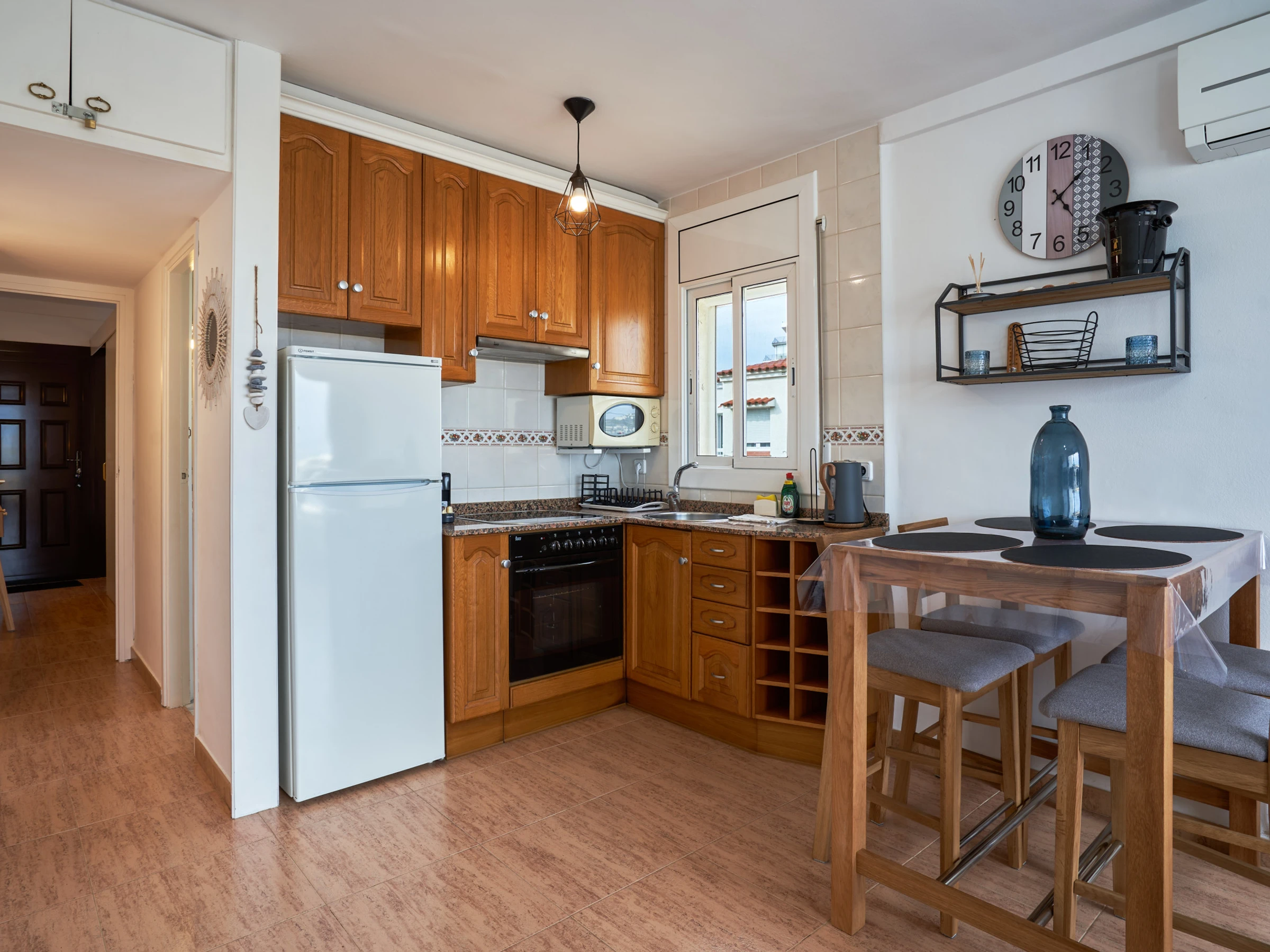Este apartamento en la Costa Brava tiene 45 m2 y puede alojar hasta 4 personas, lo que lo hace perfecto tanto para familias como para grupos de amigos. La cocina está totalmente equipada con todos los electrodomésticos necesarios para preparar comidas caseras: nevera, vitrocerámica, horno, hervidor de agua, cafetera y microondas.