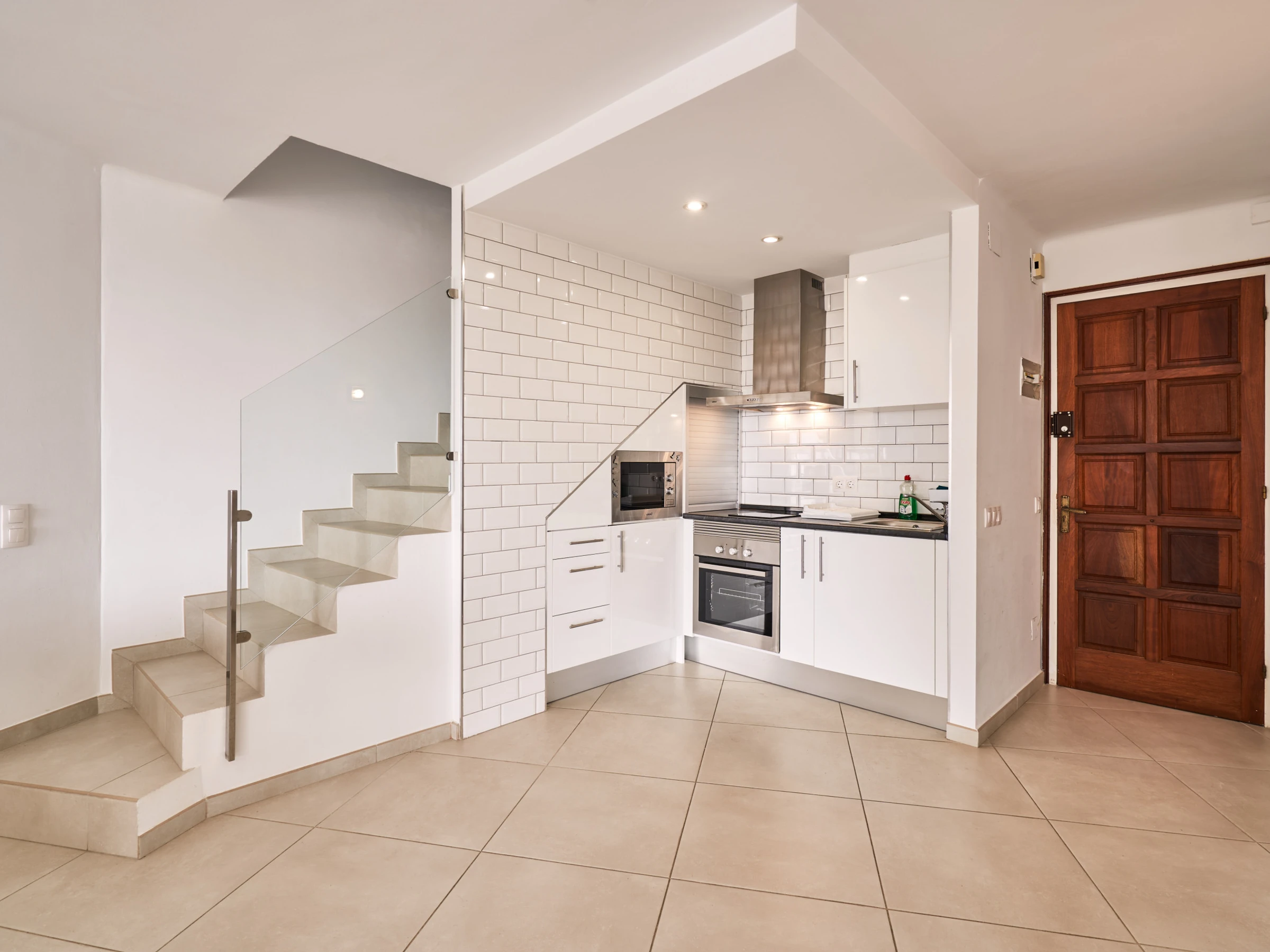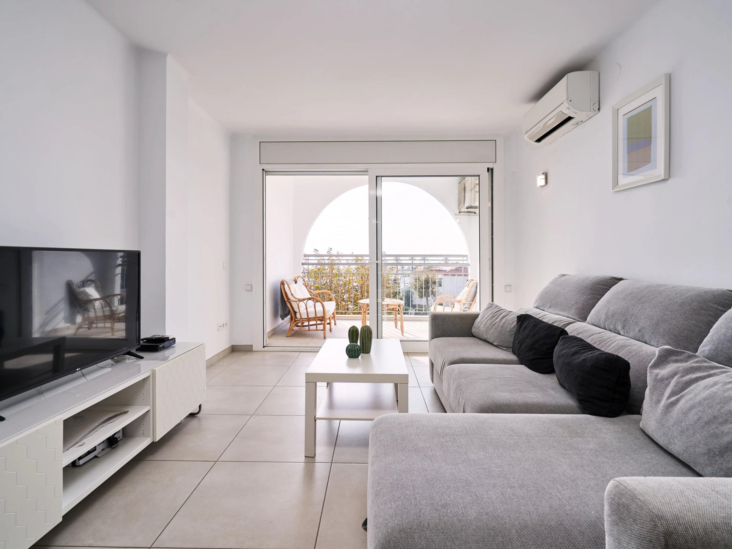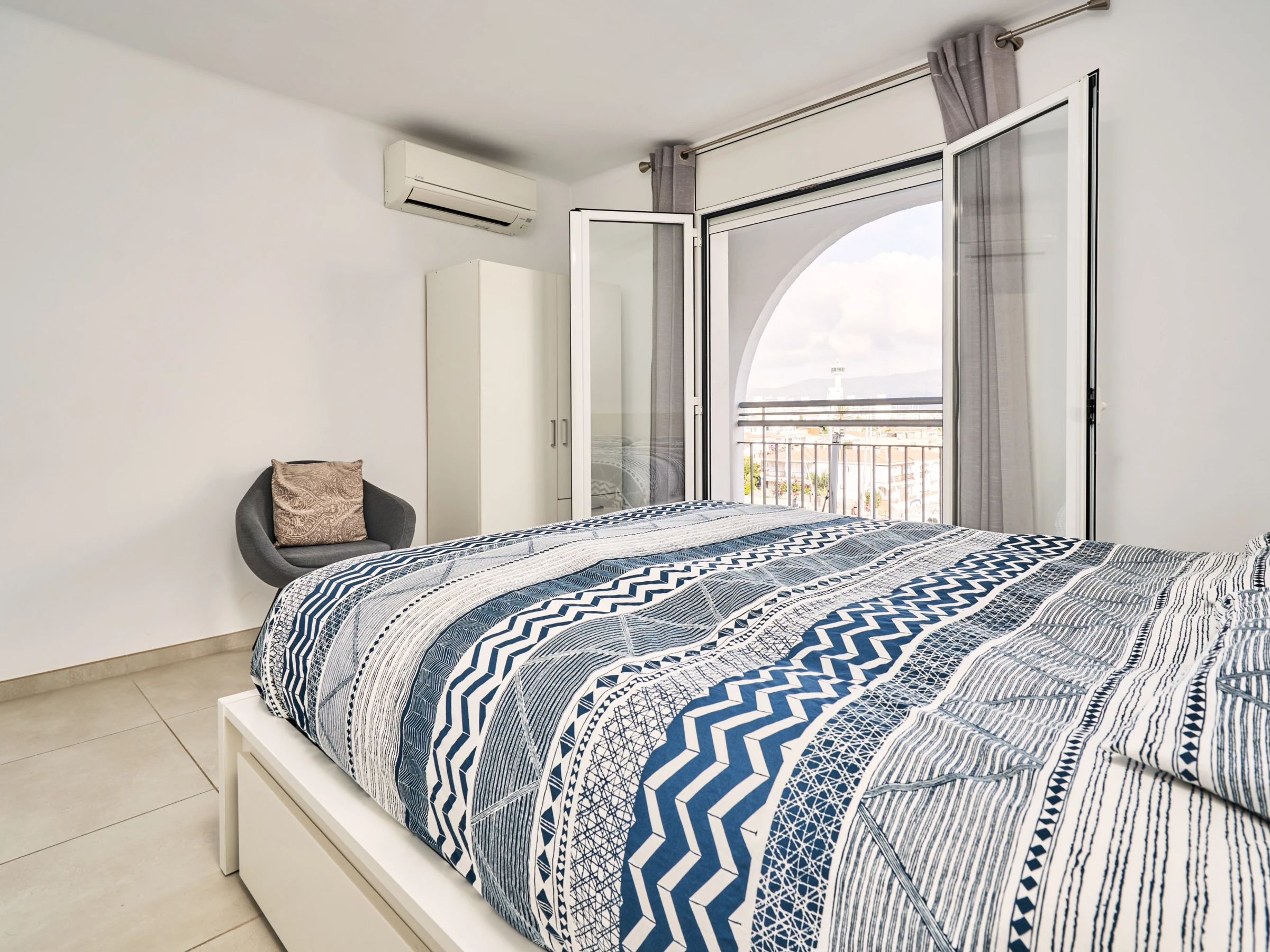 Este dúplex hermoso de 70 m² con acabados de lujo y materiales de alta calidad, diseñado para 4 huéspedes, tiene un dormitorio con una cama king-size de 160 cm x 200 cm con colchón ortopédico. Desde el dormitorio hay salida a una terraza con vista panorámica a la bahía de Rosas y las montañas de los Pirineos. En esta misma terraza puede desayunar, almorzar o cenar al aire libre con vista al mar. En la sala de estar hay un sofá-cama, muy cómodo y fácil de usar, adaptado para estancias largas. El televisor está conectado a internet, por lo que incluso durante las vacaciones podrá continuar viendo sus series y programas favoritos. La cocina de planta abierta está hecha de materiales de la más alta calidad y está equipada con todo lo necesario para preparar cualquier plato.