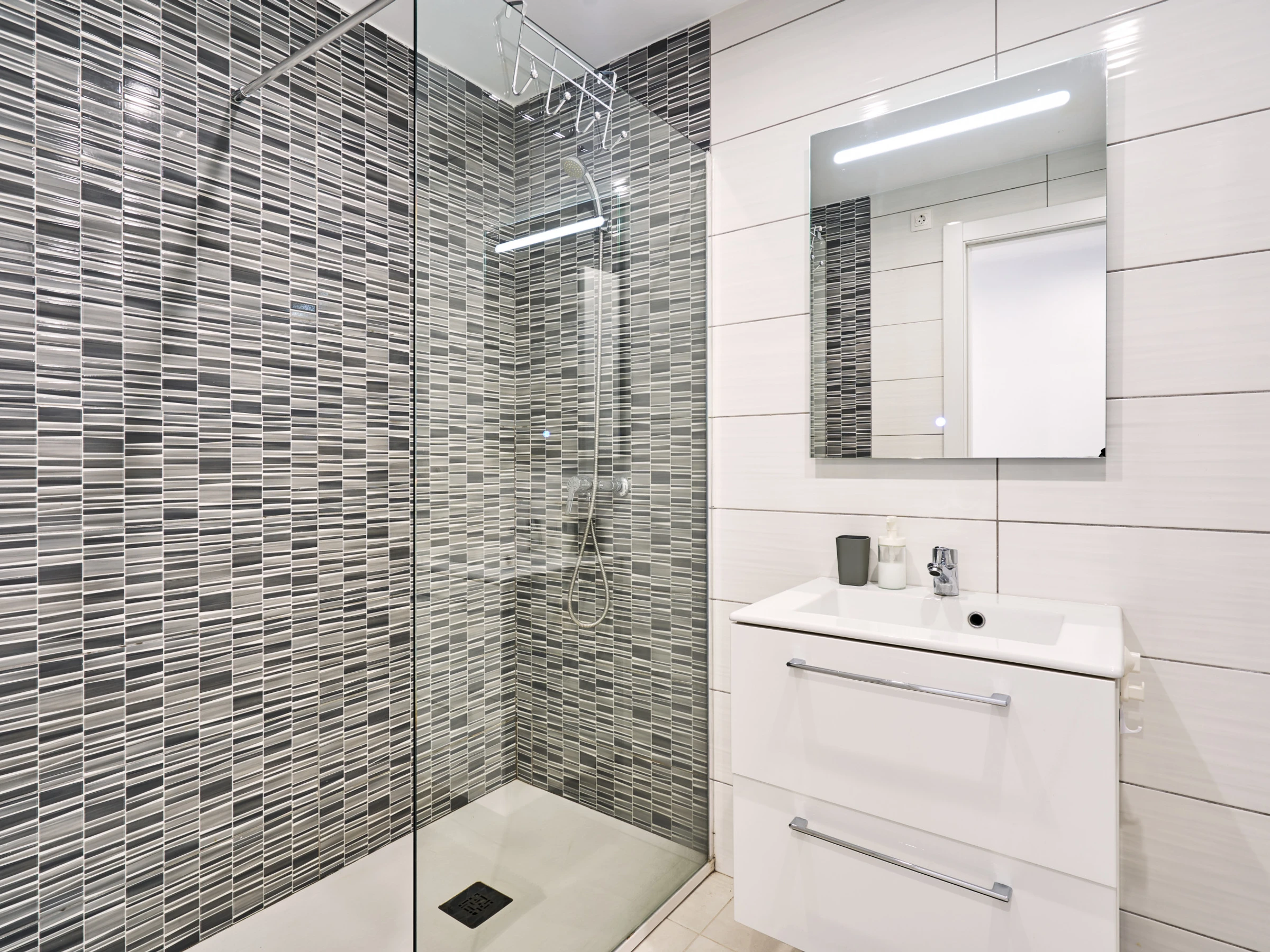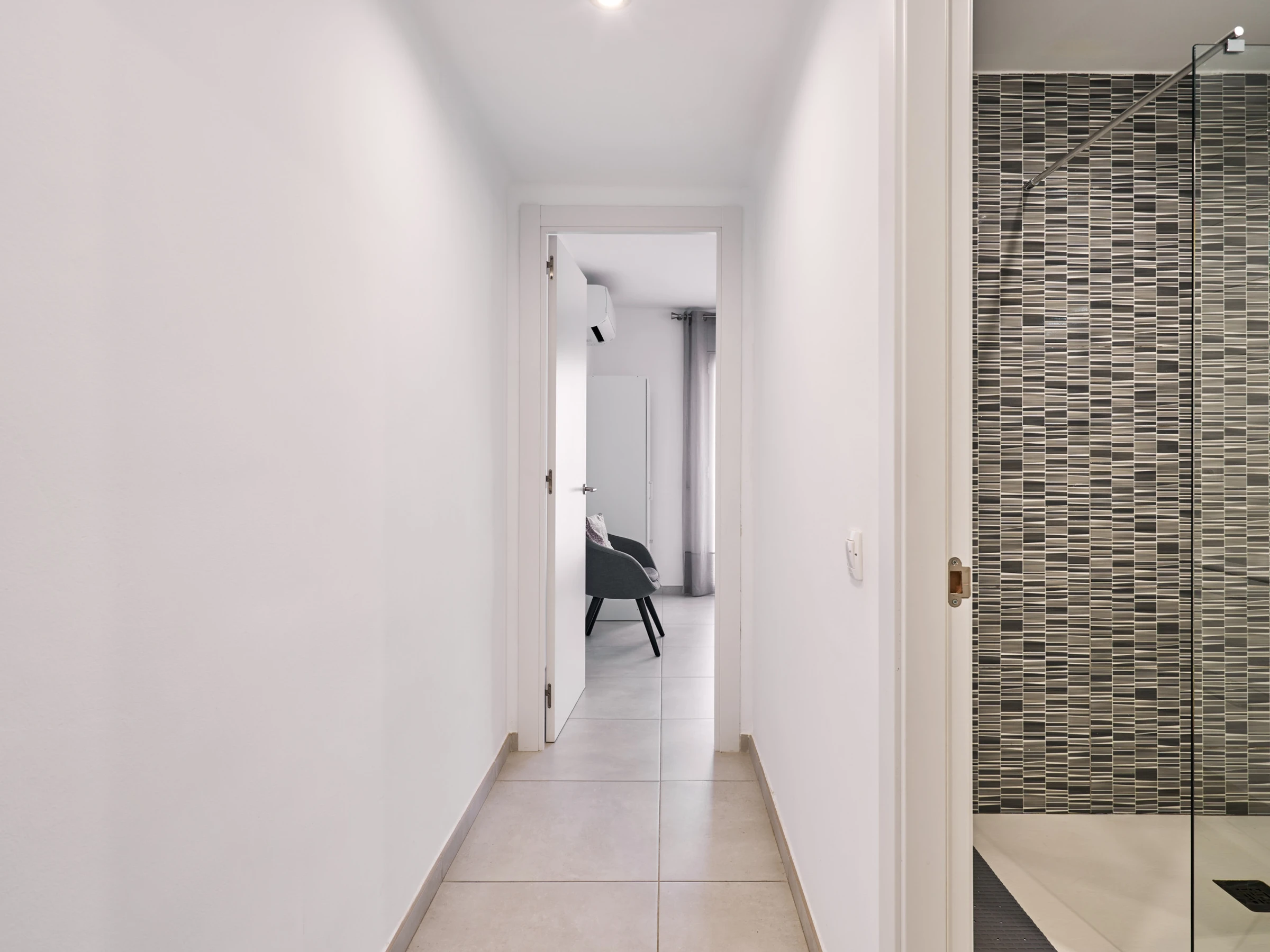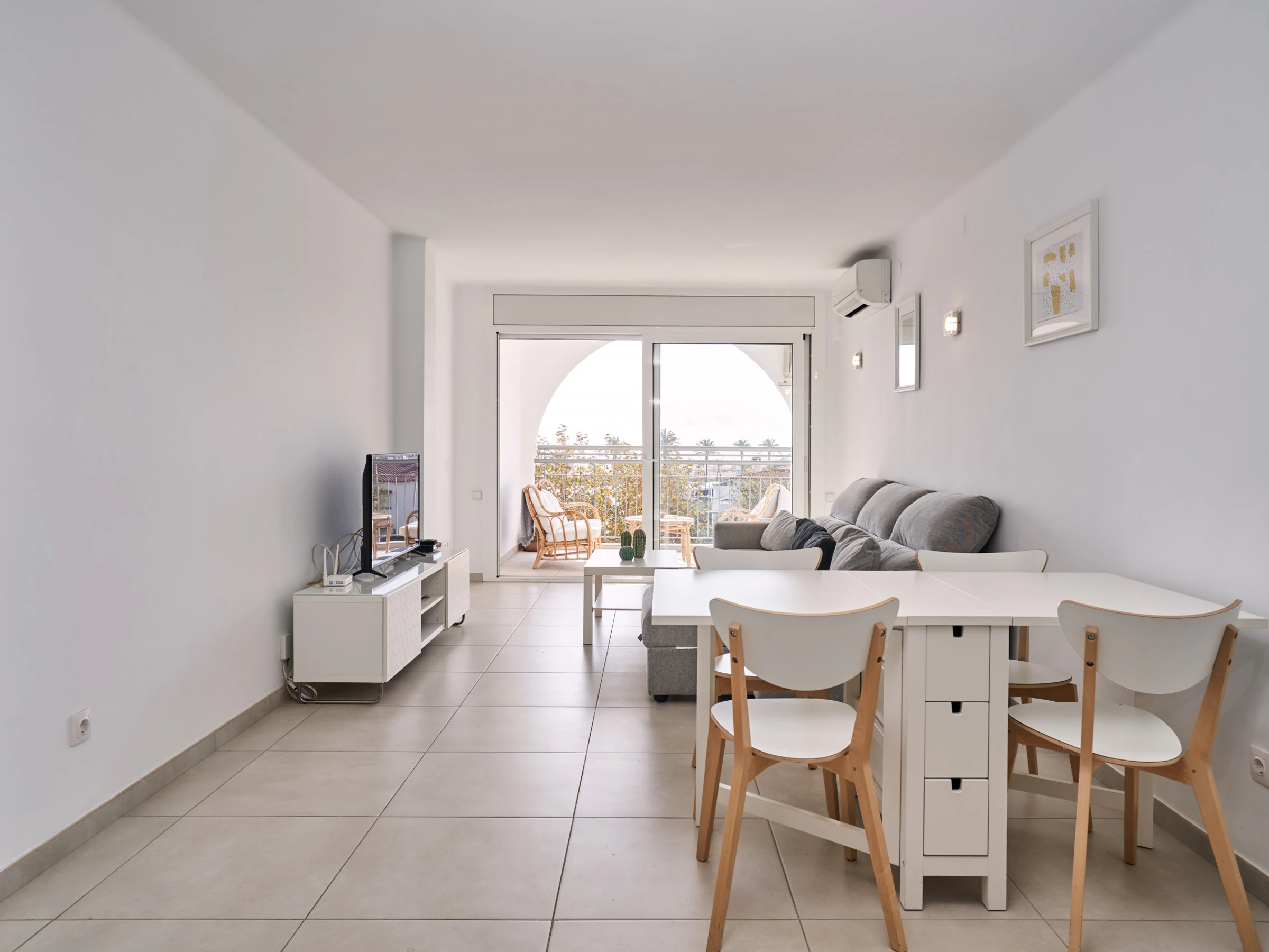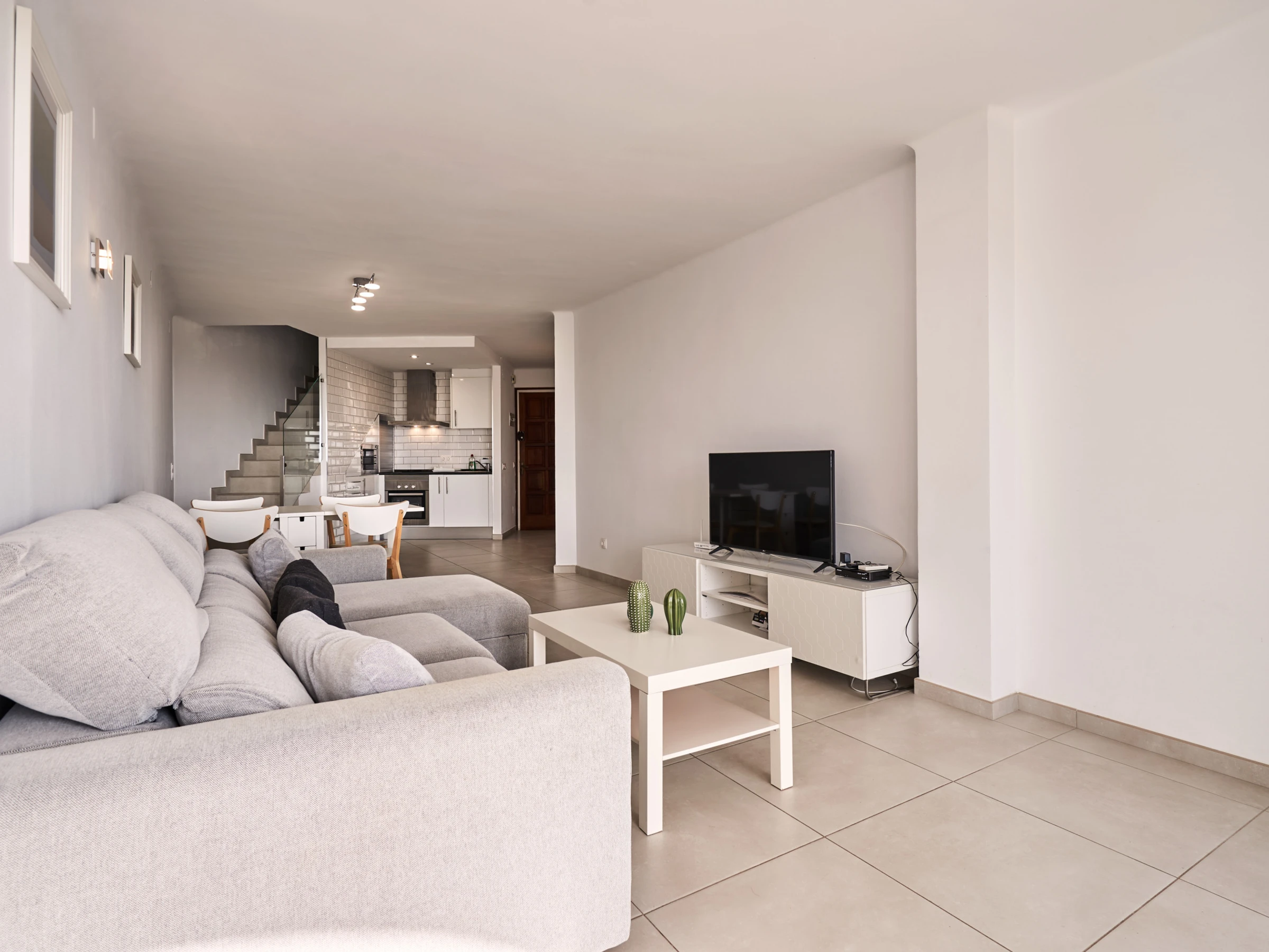 Este dúplex hermoso de 70 m² con acabados de lujo y materiales de alta calidad, diseñado para 4 huéspedes, tiene un dormitorio con una cama king-size de 160 cm x 200 cm con colchón ortopédico. Desde el dormitorio hay salida a una terraza con vista panorámica a la bahía de Rosas y las montañas de los Pirineos. En esta misma terraza puede desayunar, almorzar o cenar al aire libre con vista al mar. En la sala de estar hay un sofá-cama, muy cómodo y fácil de usar, adaptado para estancias largas. El televisor está conectado a internet, por lo que incluso durante las vacaciones podrá continuar viendo sus series y programas favoritos. La cocina de planta abierta está hecha de materiales de la más alta calidad y está equipada con todo lo necesario para preparar cualquier plato.