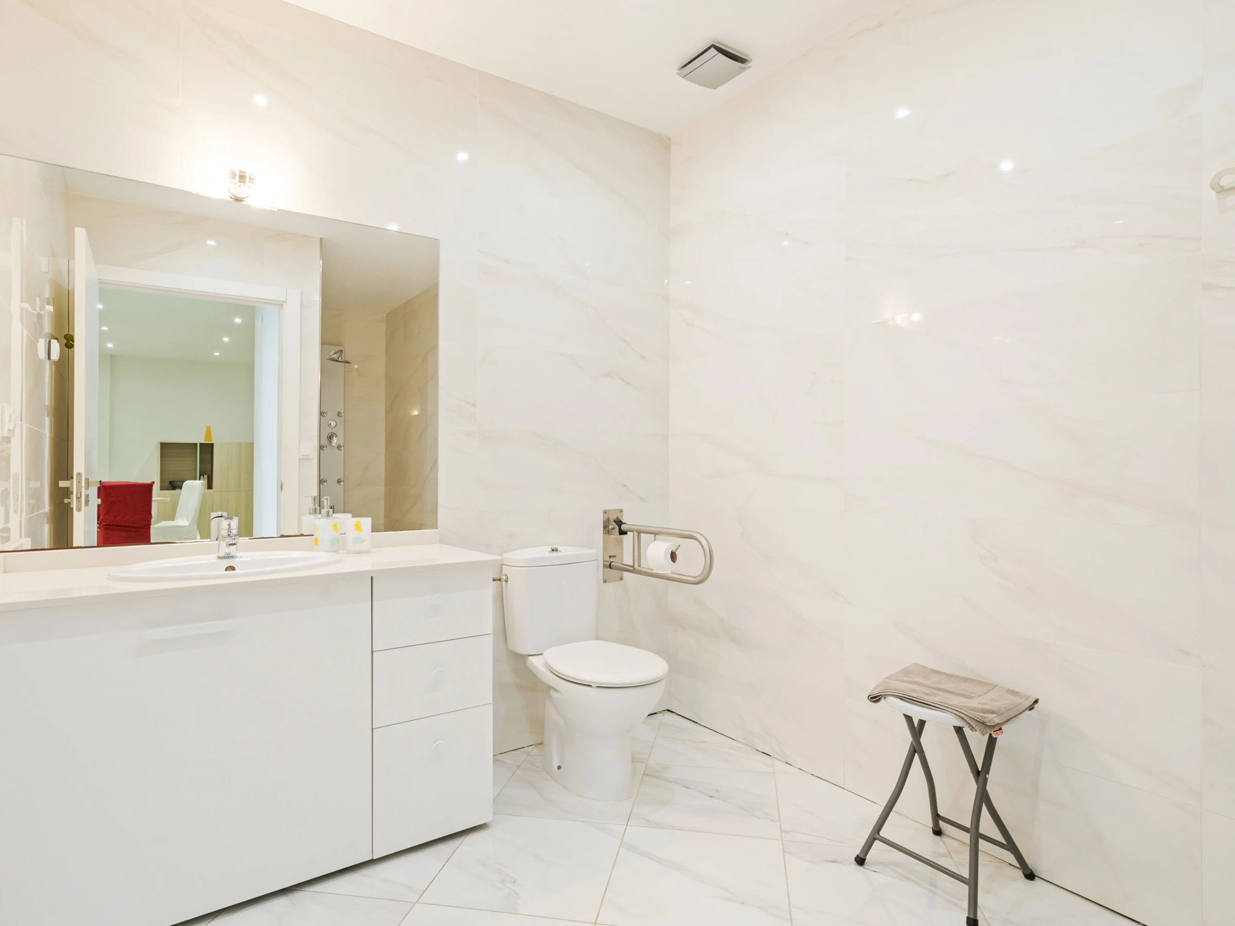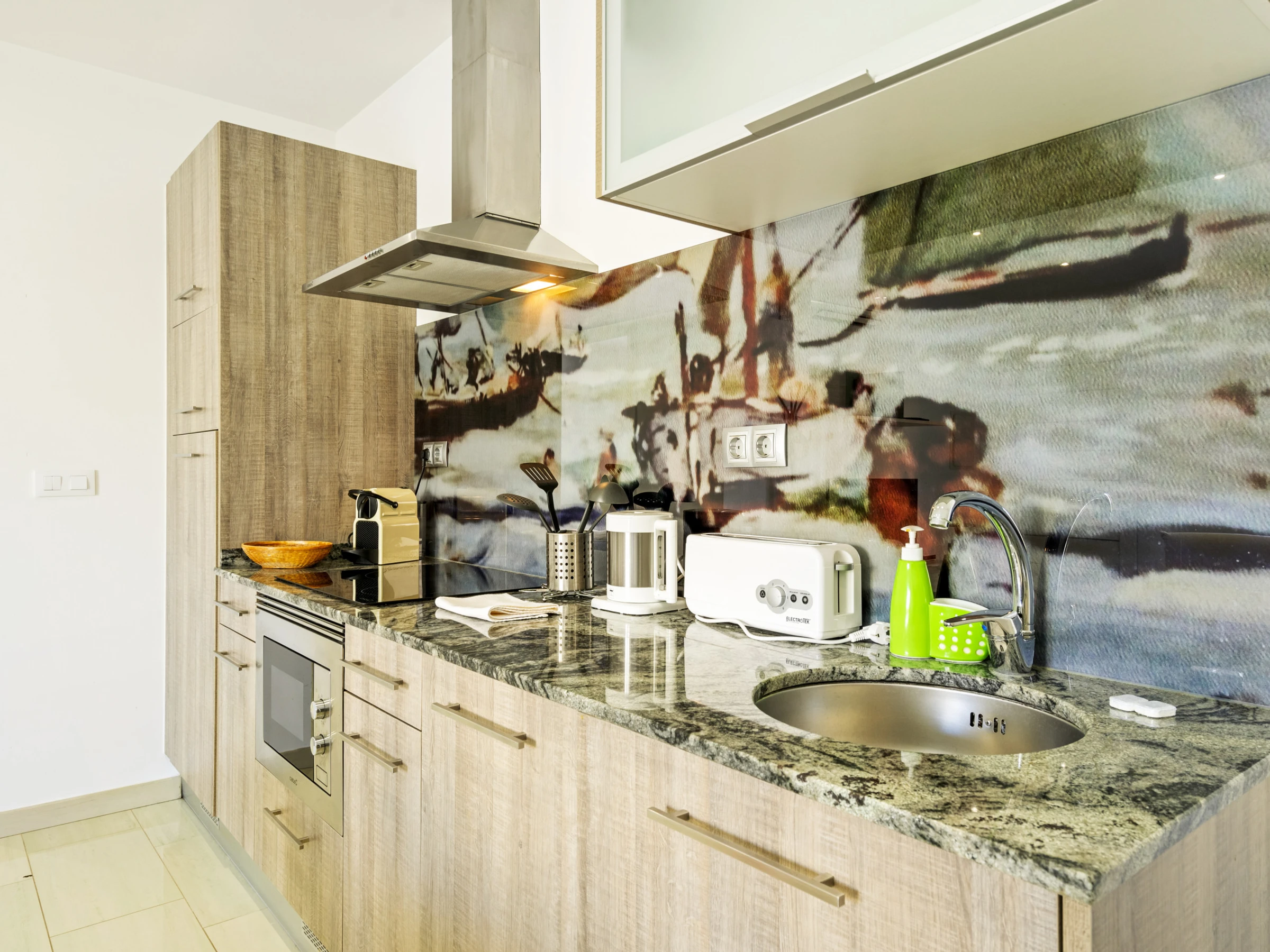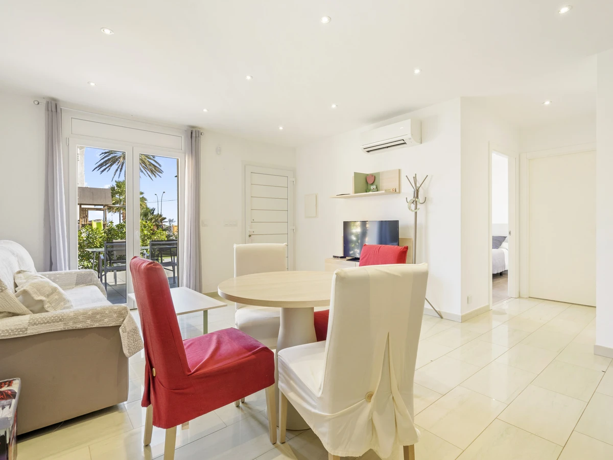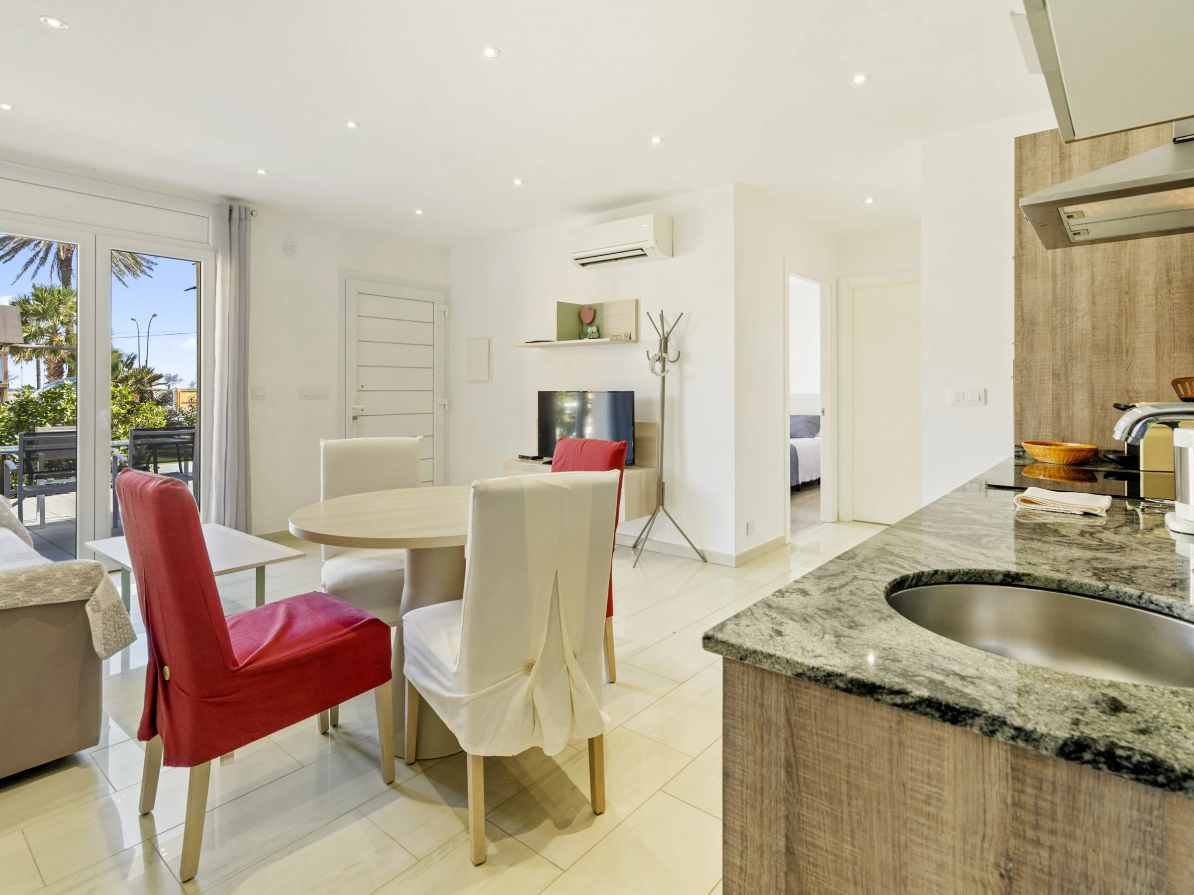 Cómodo apartamento con capacidad para cuatro personas. Cuenta con una espaciosa habitación de matrimonio, con amplio armario y gran cama de 160 cm y 190 cm con colchón ortopédico. En el salón encontramos una Smart tv con canales con todos los idiomas y un cómodo y fácil de usar sofá cama de 160 cm, ideal para relajarse, dormir o pasar un rato en familia. El cuarto de baño está pensado y adaptado para personas con dificultades de movilidad, favoreciendo así su estancia y asegurando su comodidad. El apartamento es de planta baja pues el acceso es óptimo para cualquier persona. La cocina americana cuenta con diversos electrodomésticos como cafetera, hervidor, tostadora, microondas, nevera, horno, vitrocerámica y lavavajillas. Está hecha con materiales exclusivos y perfectamente equipada, con mucho espacio para preparar los mejores platos los cuales podrá disfrutar en la sala de estar o al aire libre, en la terraza privada con la que cuenta el apartamento, escuchando las olas del mar.