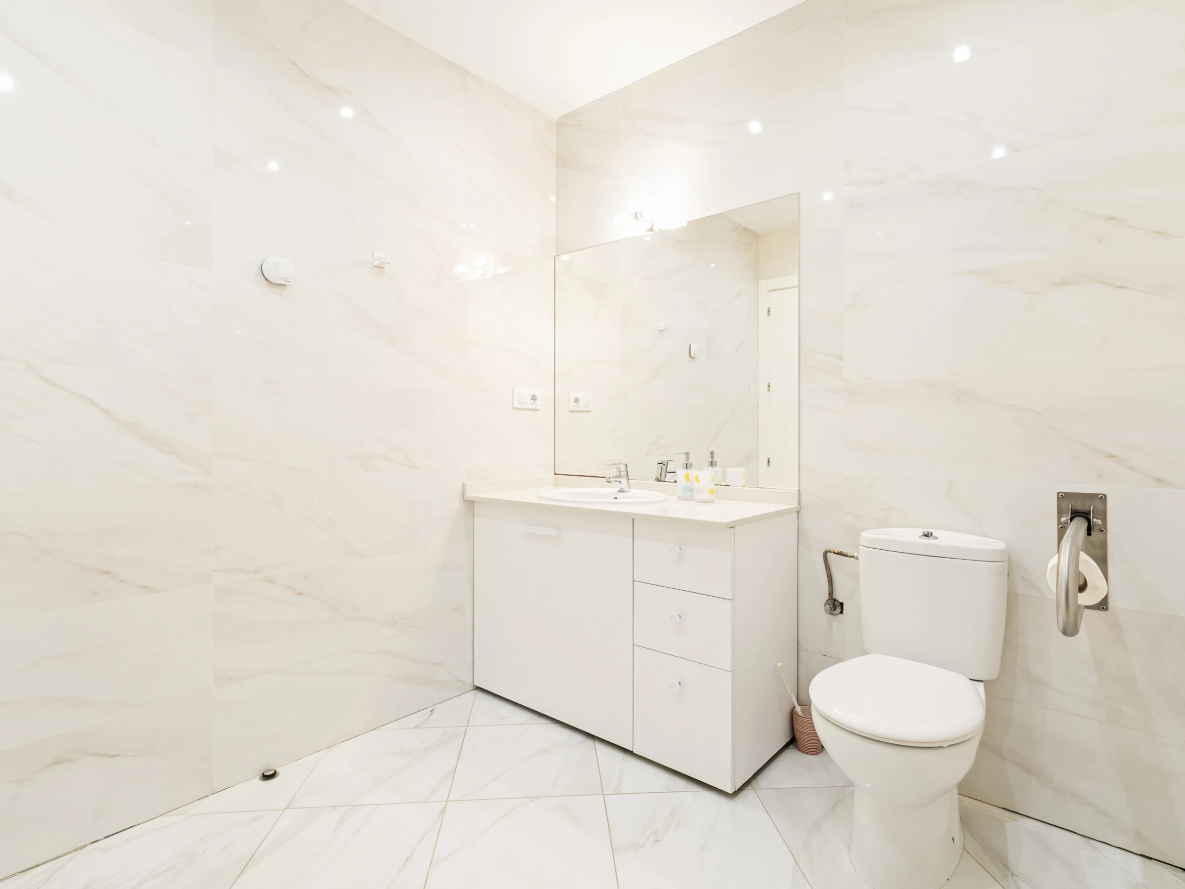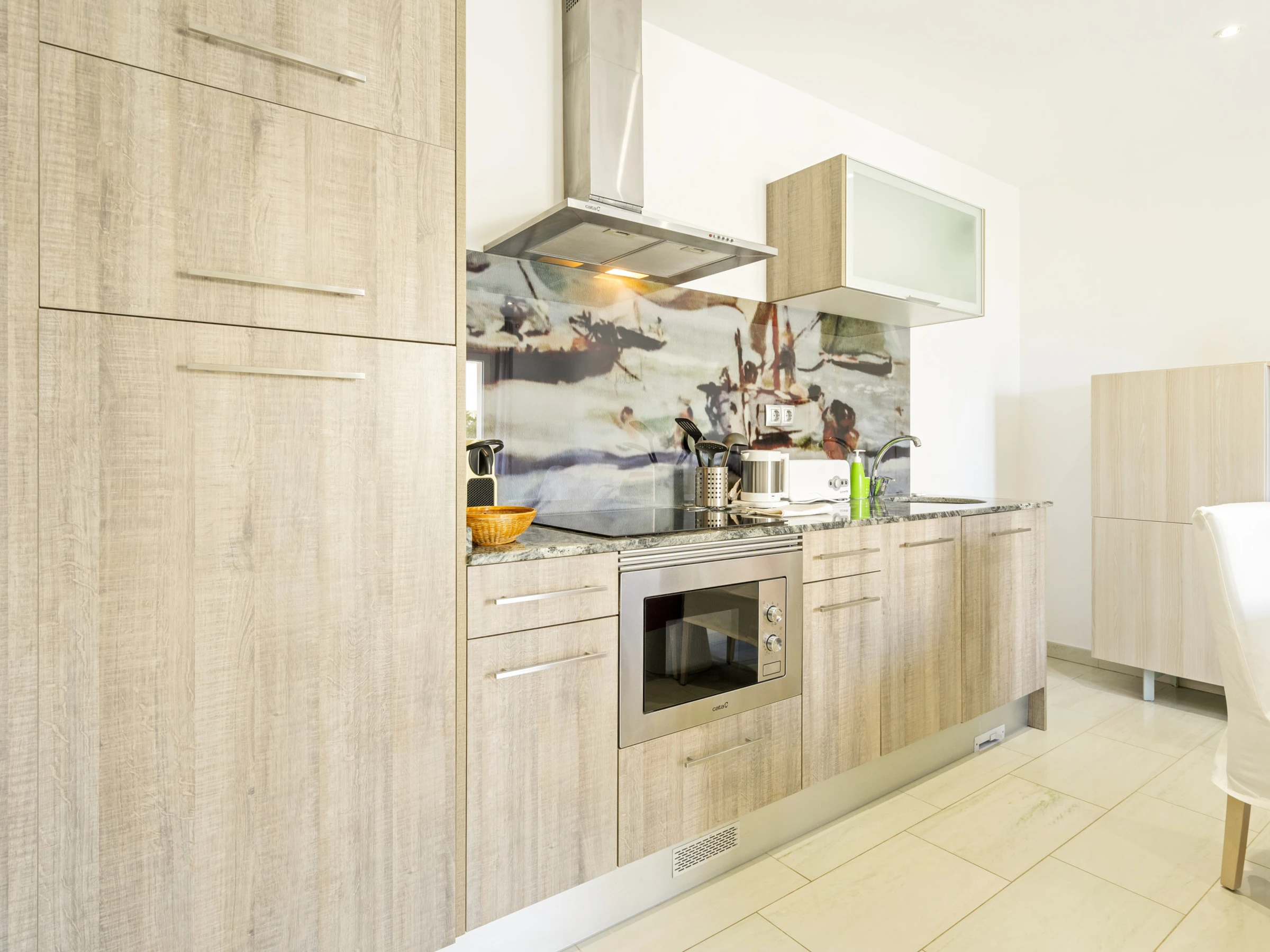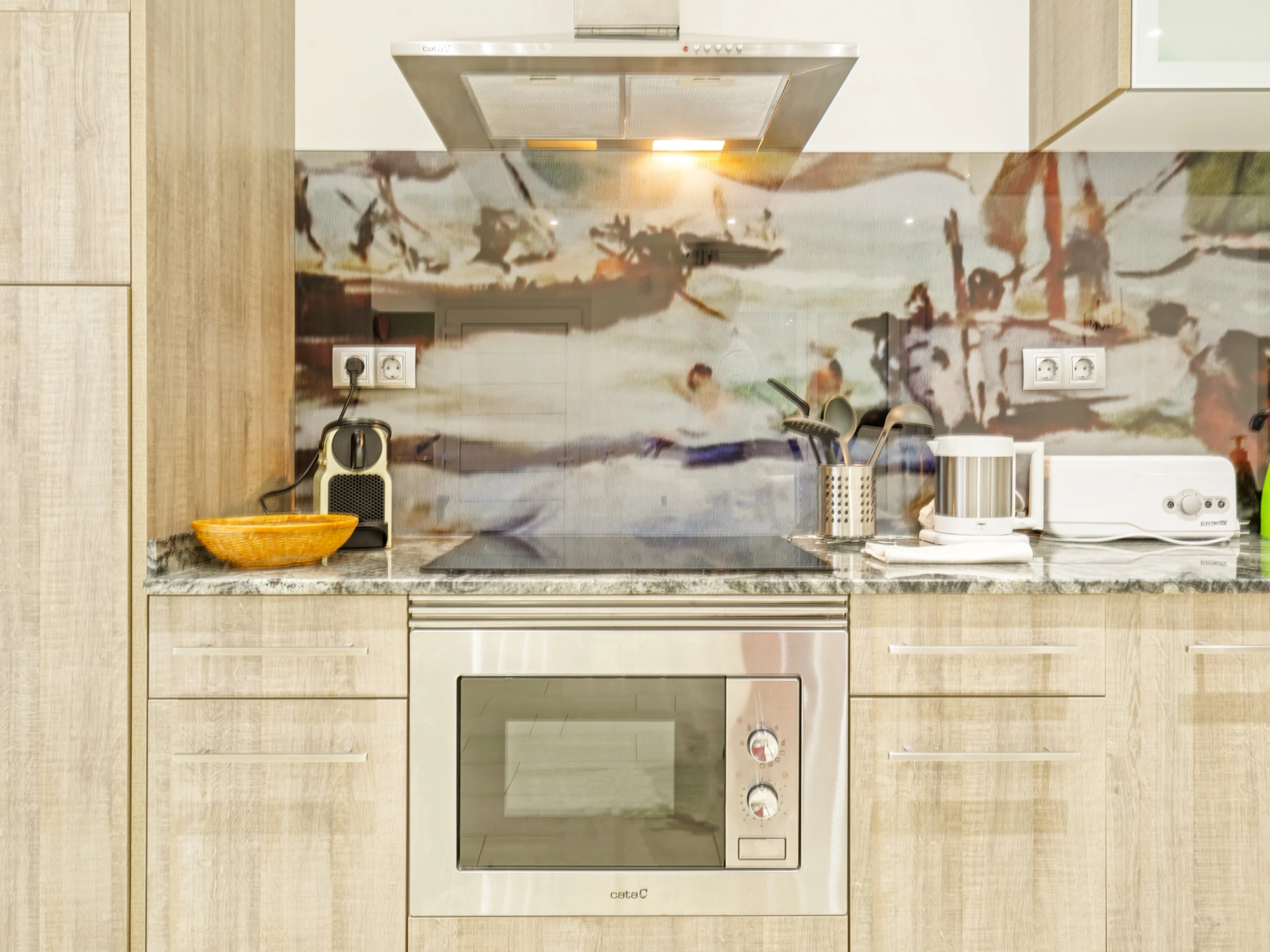 Cómodo apartamento con capacidad para cuatro personas. Cuenta con una espaciosa habitación de matrimonio, con amplio armario y gran cama de 160 cm y 190 cm con colchón ortopédico. En el salón encontramos una Smart tv con canales con todos los idiomas y un cómodo y fácil de usar sofá cama de 160 cm, ideal para relajarse, dormir o pasar un rato en familia. El cuarto de baño está pensado y adaptado para personas con dificultades de movilidad, favoreciendo así su estancia y asegurando su comodidad. El apartamento es de planta baja pues el acceso es óptimo para cualquier persona. La cocina americana cuenta con diversos electrodomésticos como cafetera, hervidor, tostadora, microondas, nevera, horno, vitrocerámica y lavavajillas. Está hecha con materiales exclusivos y perfectamente equipada, con mucho espacio para preparar los mejores platos los cuales podrá disfrutar en la sala de estar o al aire libre, en la terraza privada con la que cuenta el apartamento, escuchando las olas del mar.
