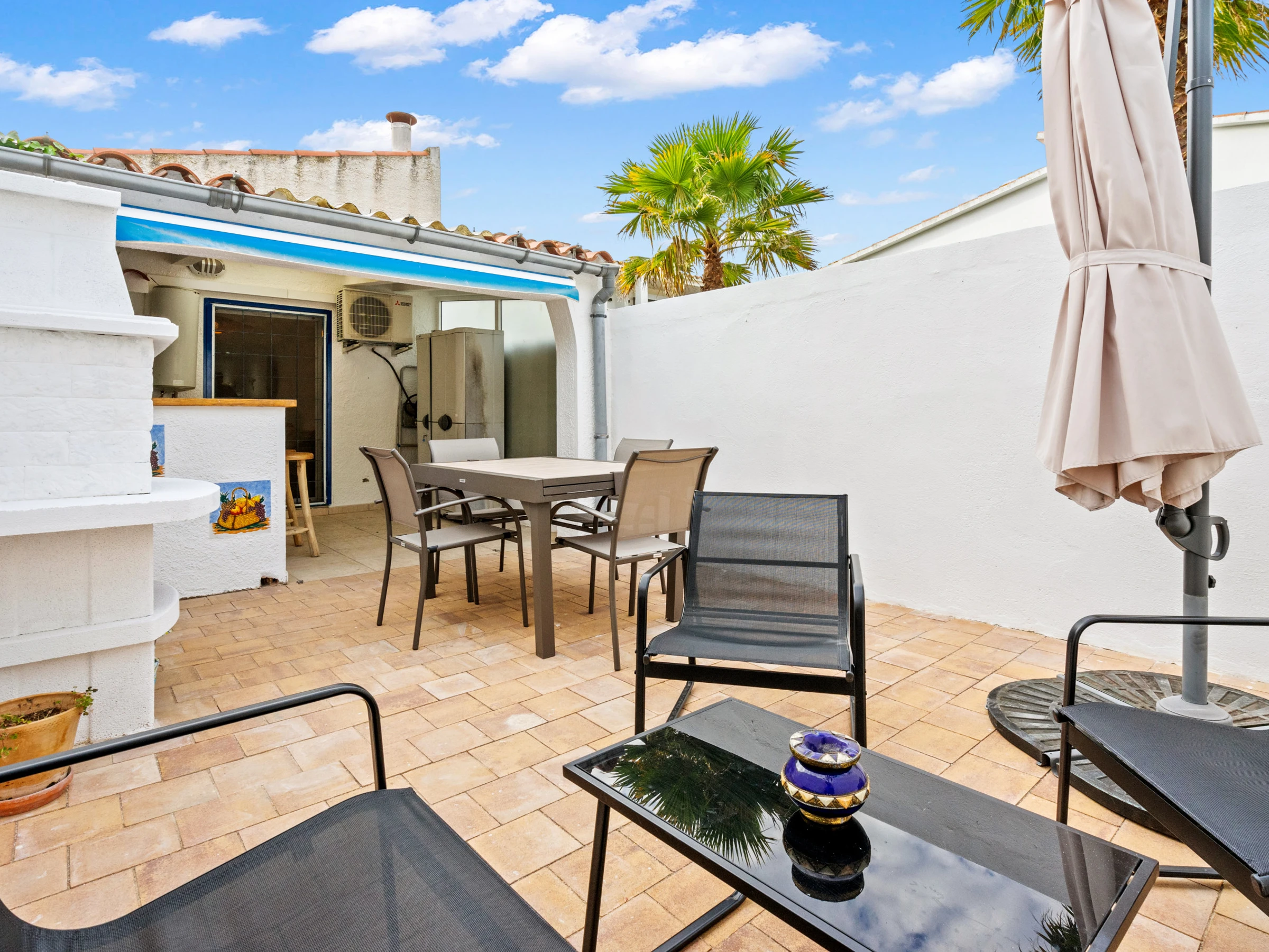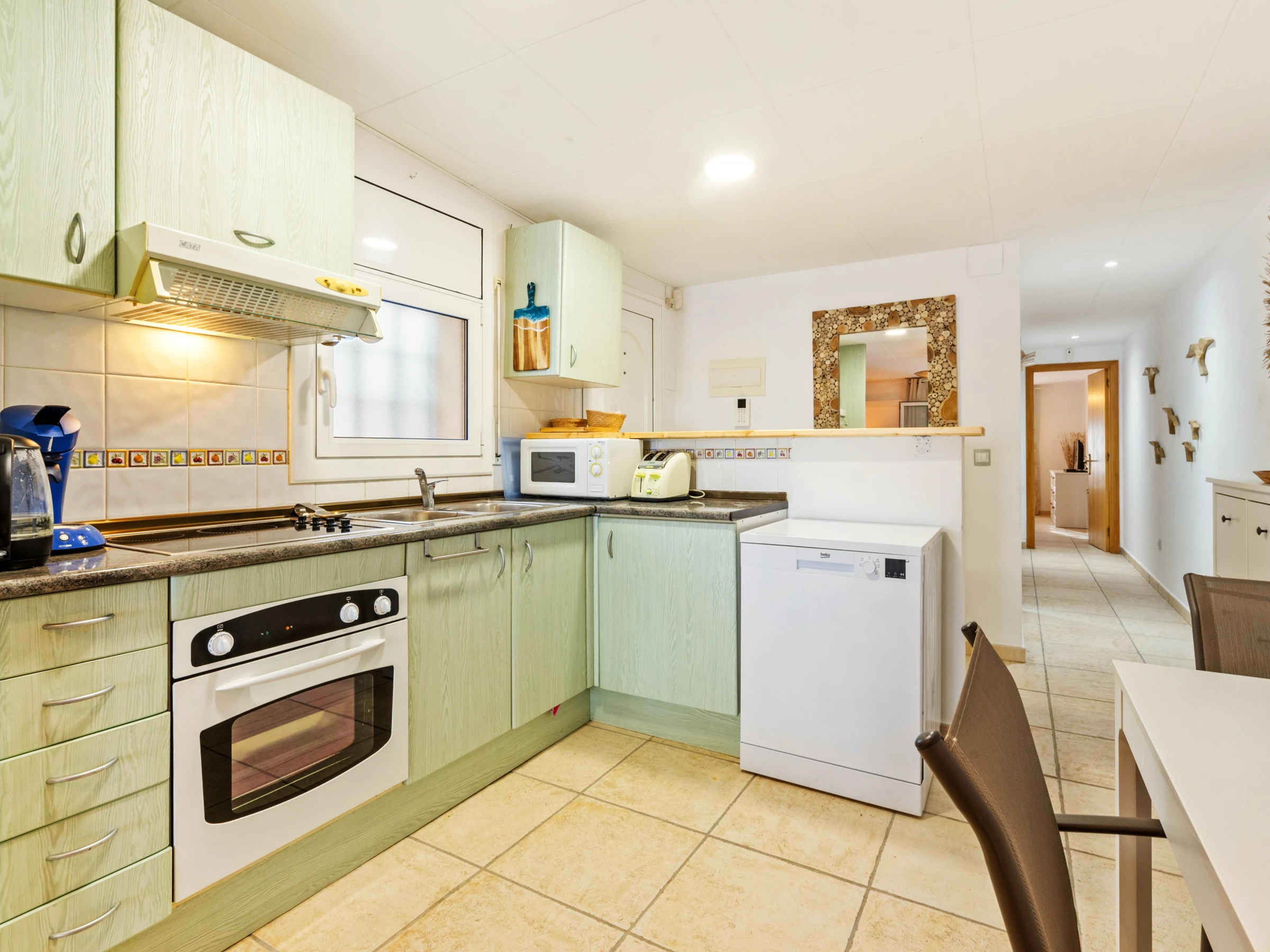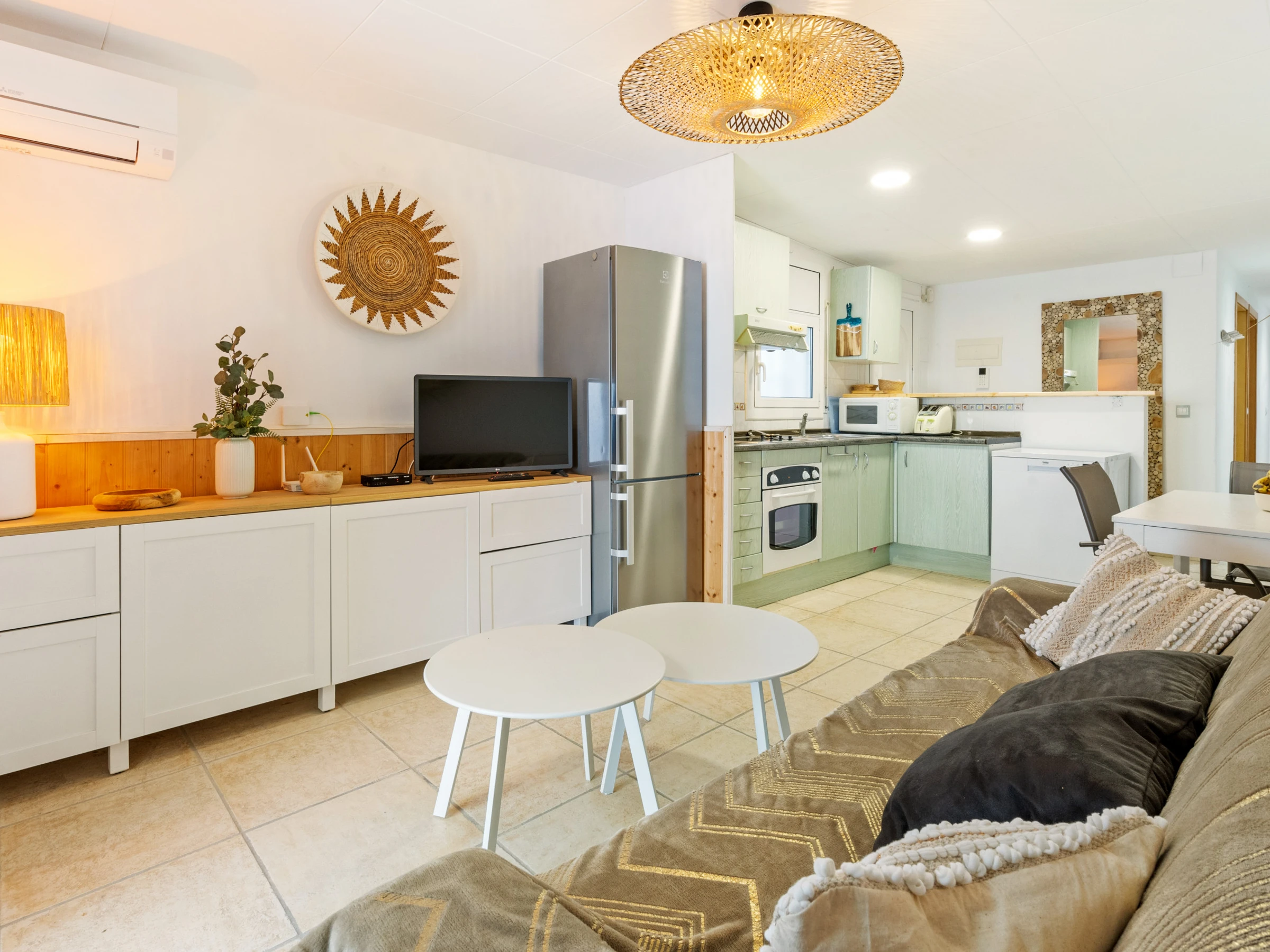El espacio cuenta con una amplia terraza de 20 m² ideal para disfrutar de comidas al aire libre con barbacoa, así como un balcón, calefacción por radiadores eléctricos y aire acondicionado para tu comodidad. Además, dispone de dos televisores y televisión satelital en español y francés, así como una cocina completamente equipada.