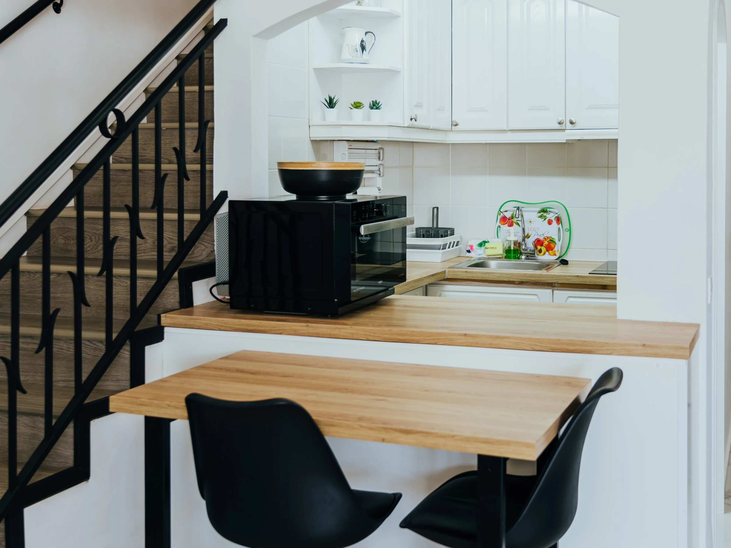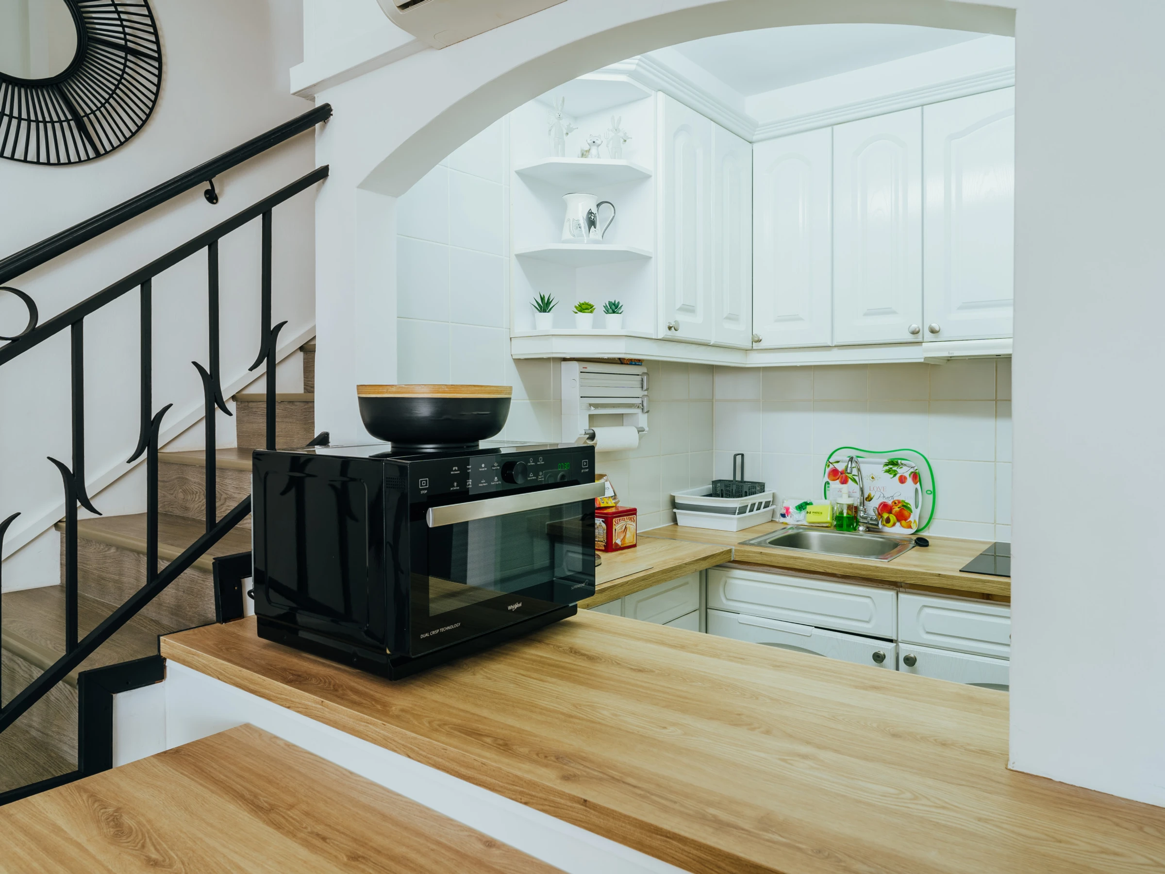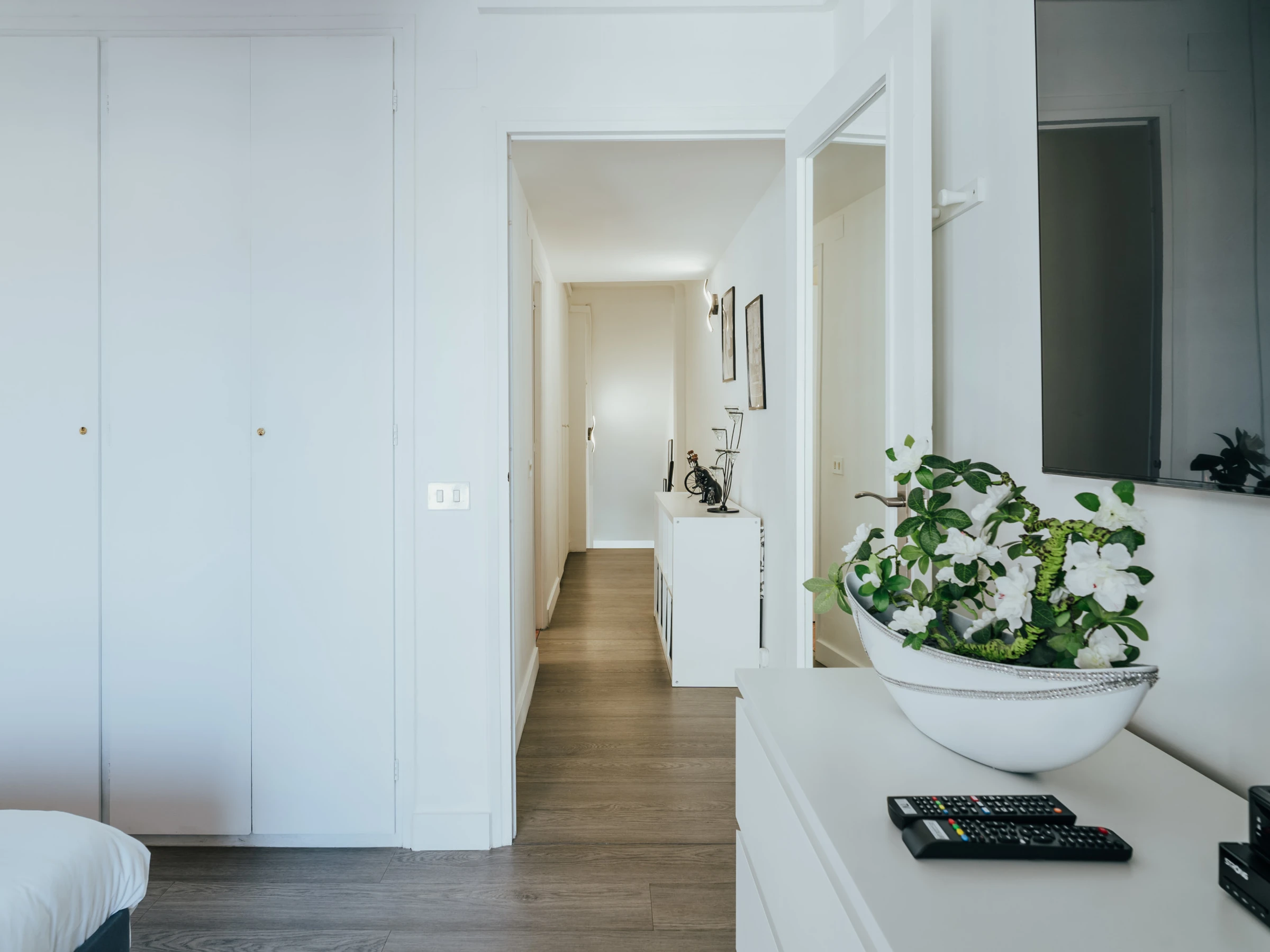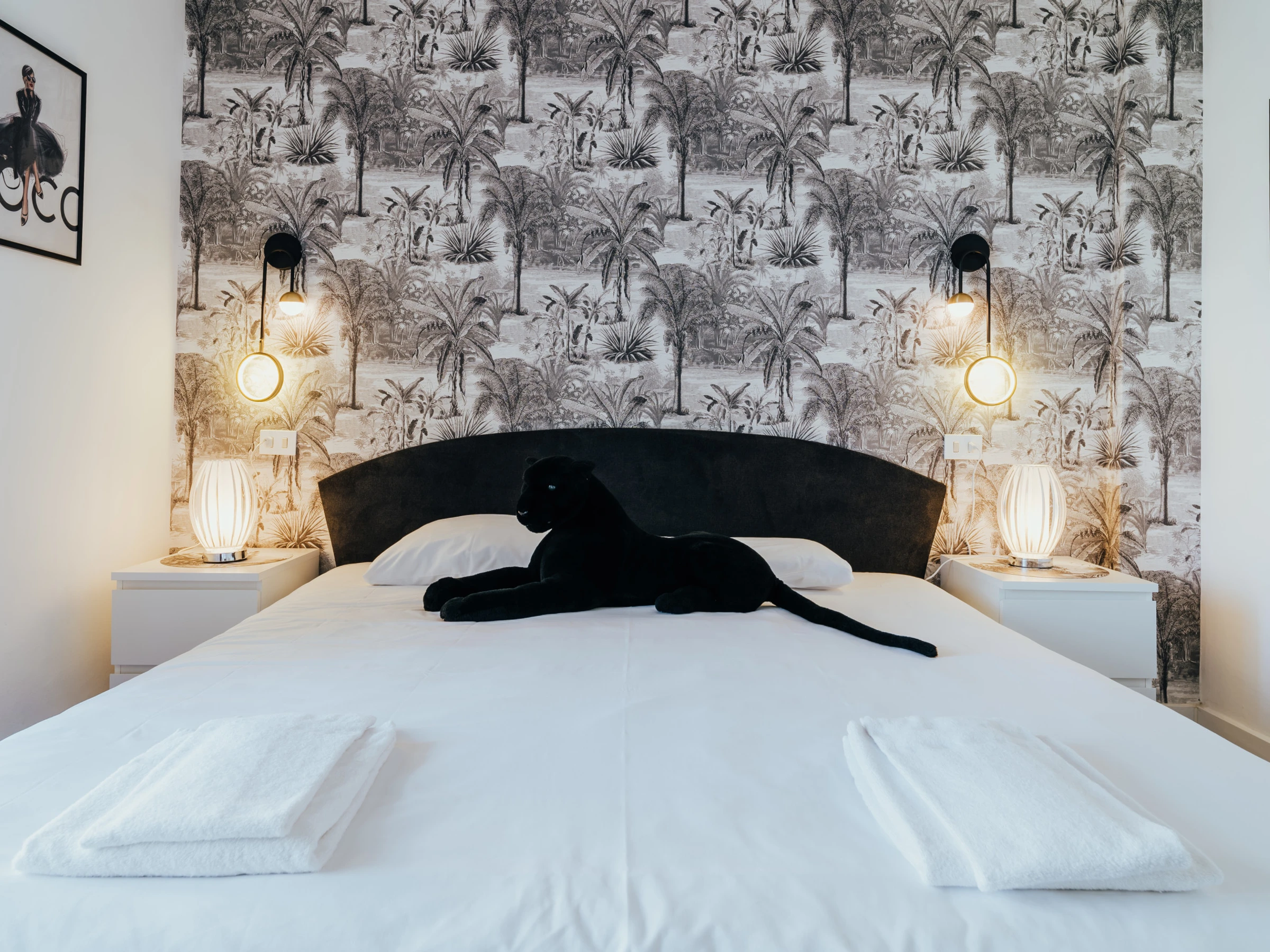 La zona de dormitorio incluye una cama doble, muebles elegantes, un televisor y aire acondicionado. Además, el apartamento cuenta con lavavajillas y lavadora, garantizando comodidad durante su estancia.