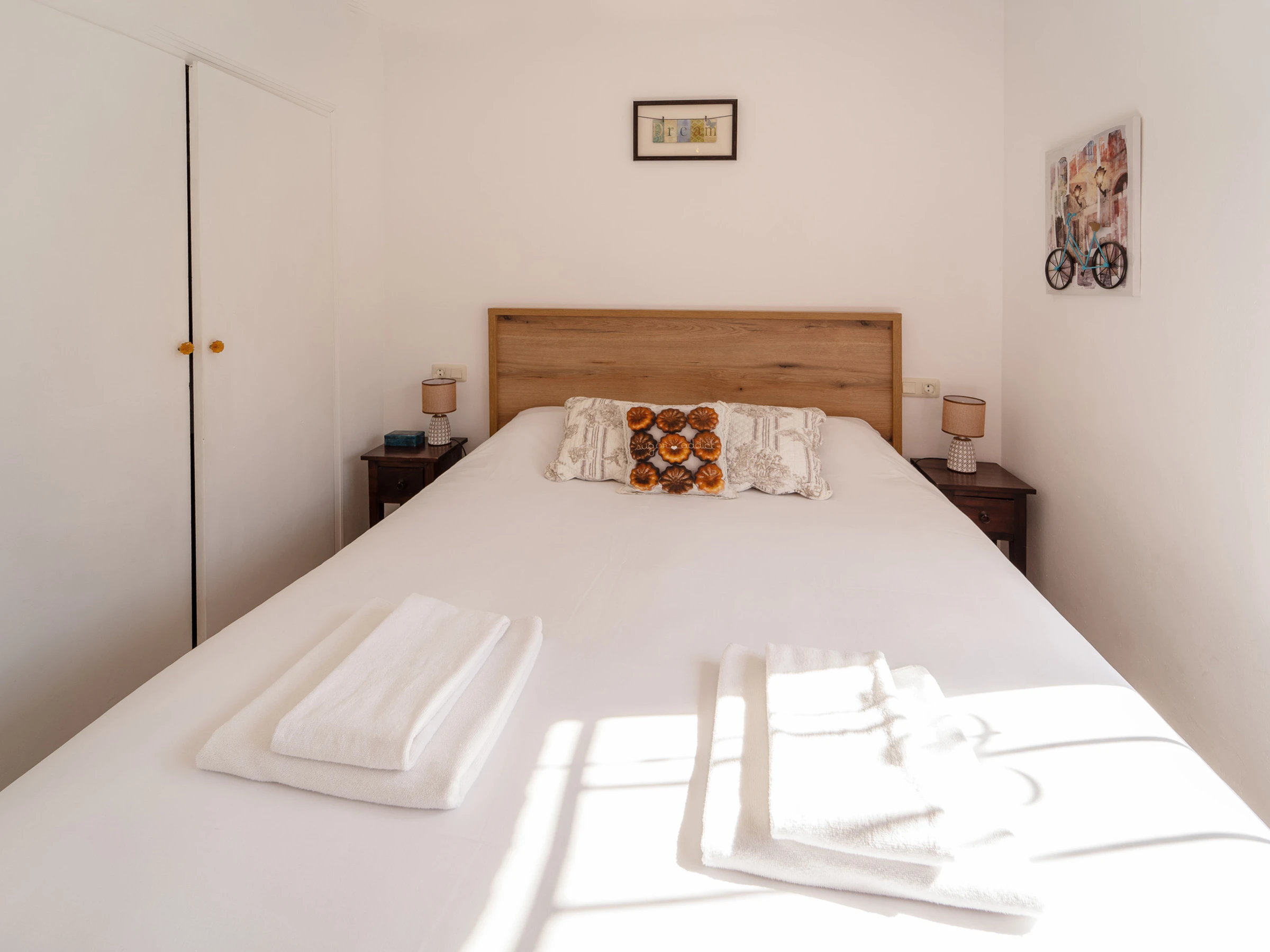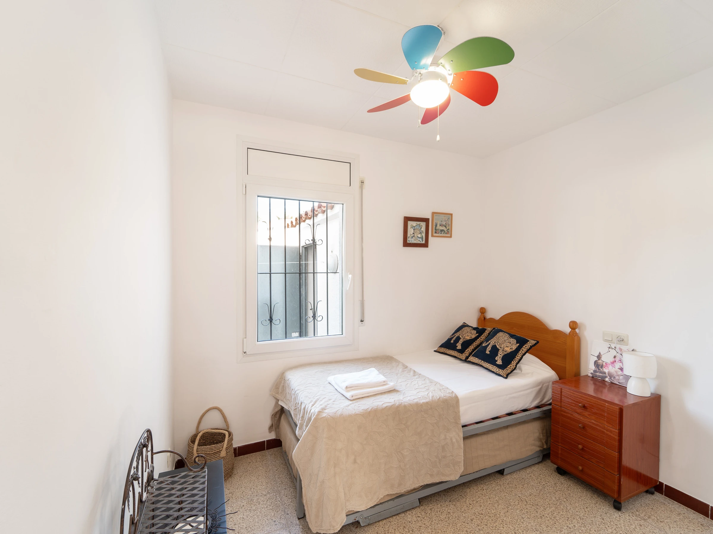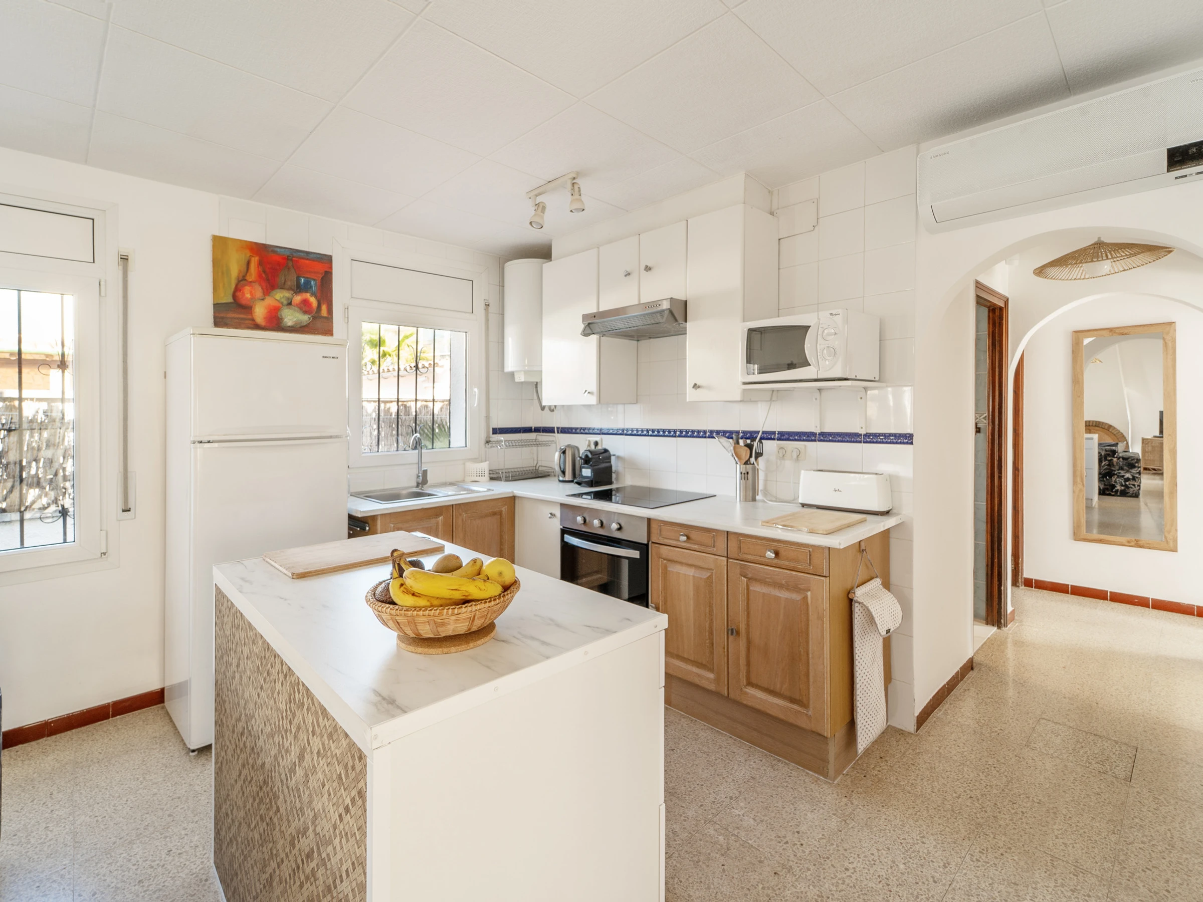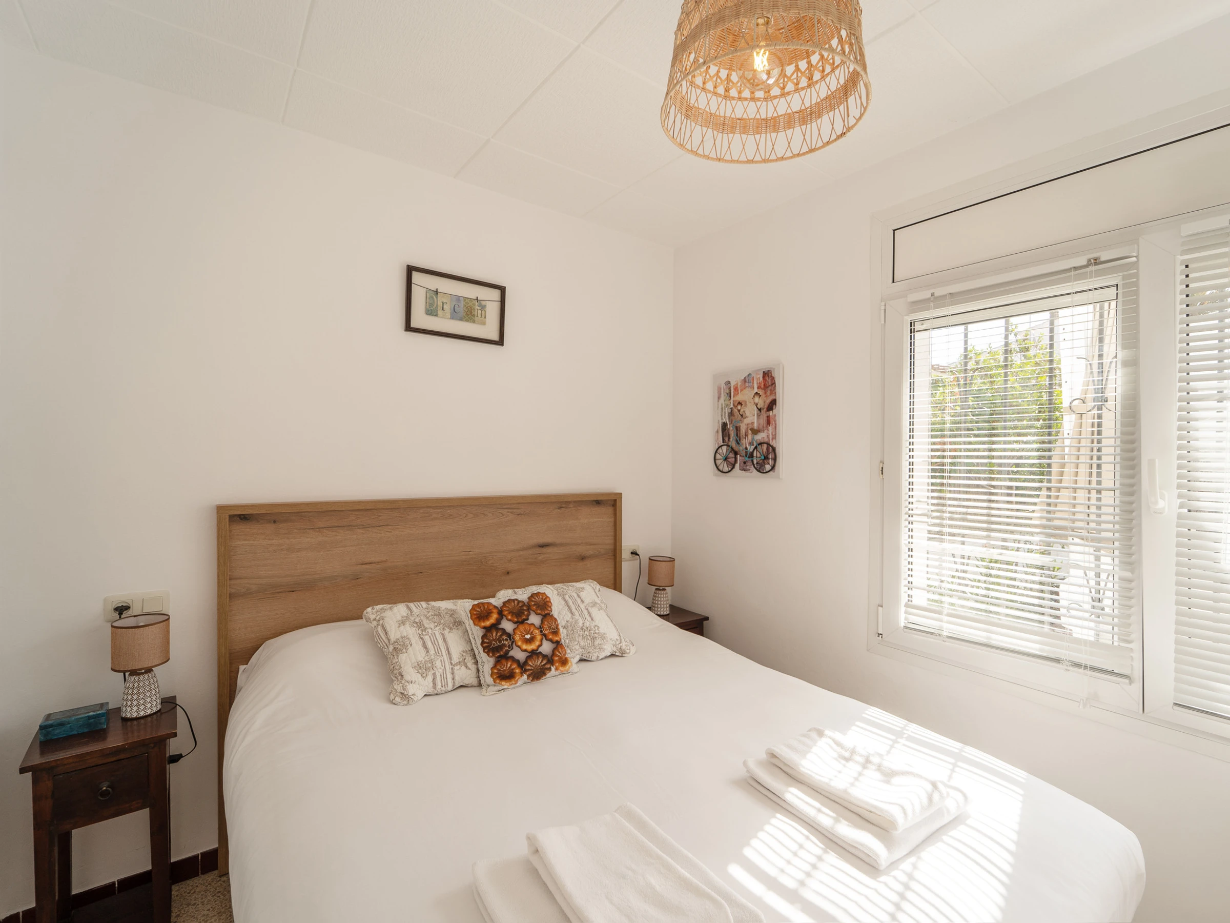 Dispone de 3 dormitorios: dos con camas dobles y uno con dos camas individuales. También hay un cuarto de ducha y la casa está equipada con aire acondicionado.