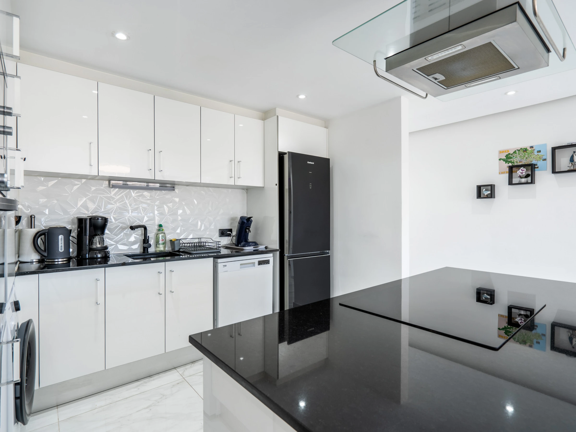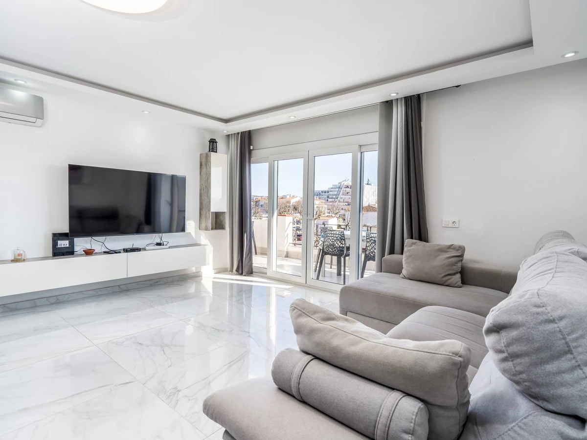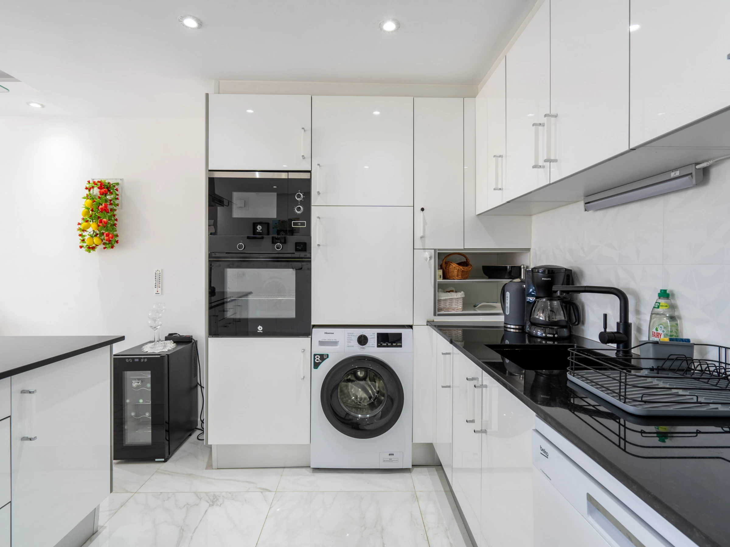 Al entrar en el apartamento, se encuentra en la sala de estar, armoniosamente unida a una cocina completamente equipada. El interior está decorado en tonos neutros suaves que crean una atmósfera de comodidad y relajación, mientras que los acentos brillantes añaden un toque de estilo y modernidad. Grandes ventanas panorámicas llenan el espacio de luz natural y ofrecen una magnífica vista de la ciudad. Desde la sala de estar hay una salida conveniente a la terraza, donde se puede disfrutar del aire fresco y descansar, admirando los paisajes circundantes.