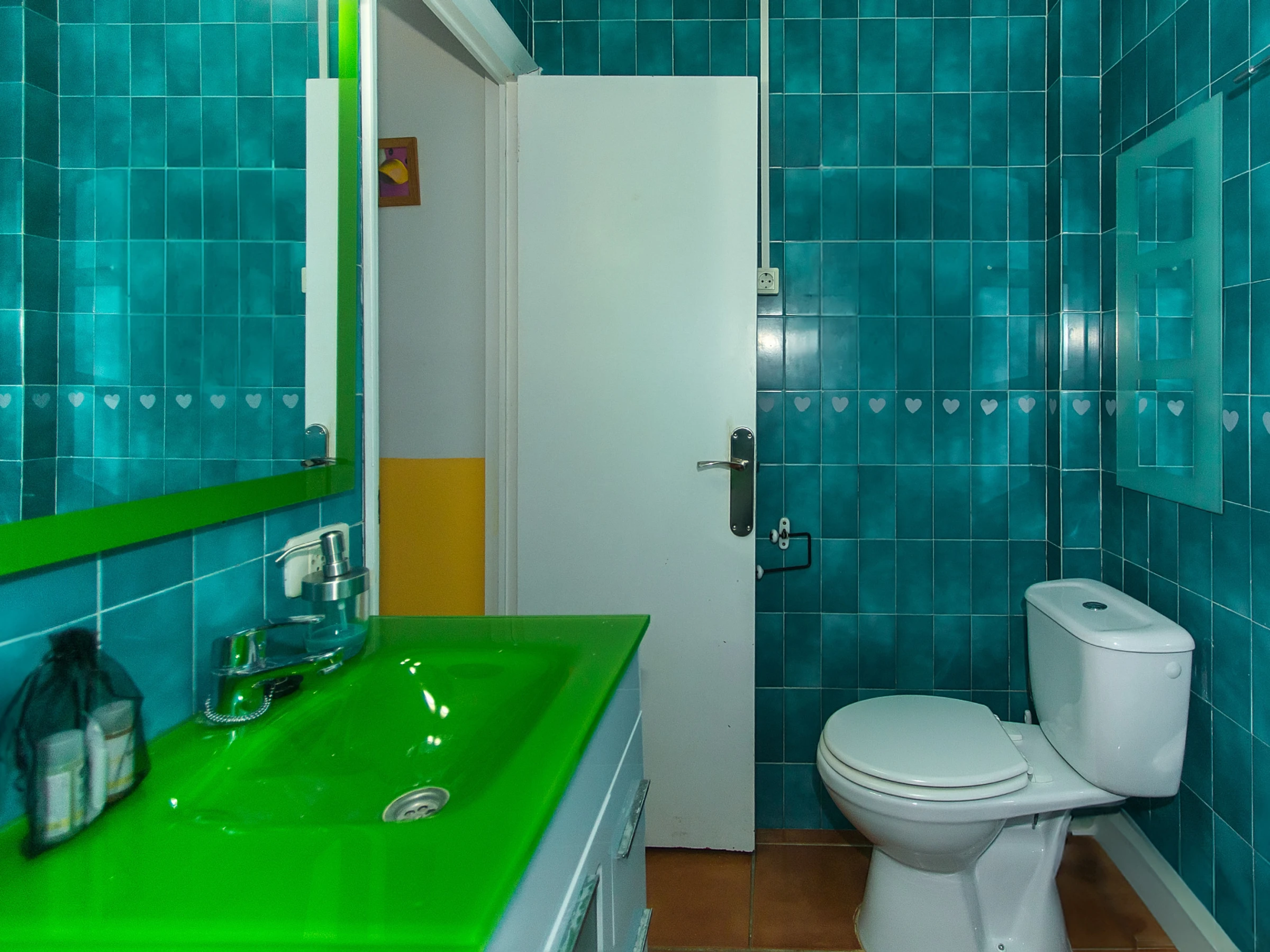 Al subir al segundo piso, encontrará tres dormitorios. Dos de ellos están equipados con un par de camas individuales, y el tercero con una acogedora cama matrimonial. La casa también cuenta con dos baños: uno con una ducha moderna y otro con una lujosa bañera. Ambos baños están decorados en tonos verde-turquesa refrescantes, creando una atmósfera de calma y armonía.