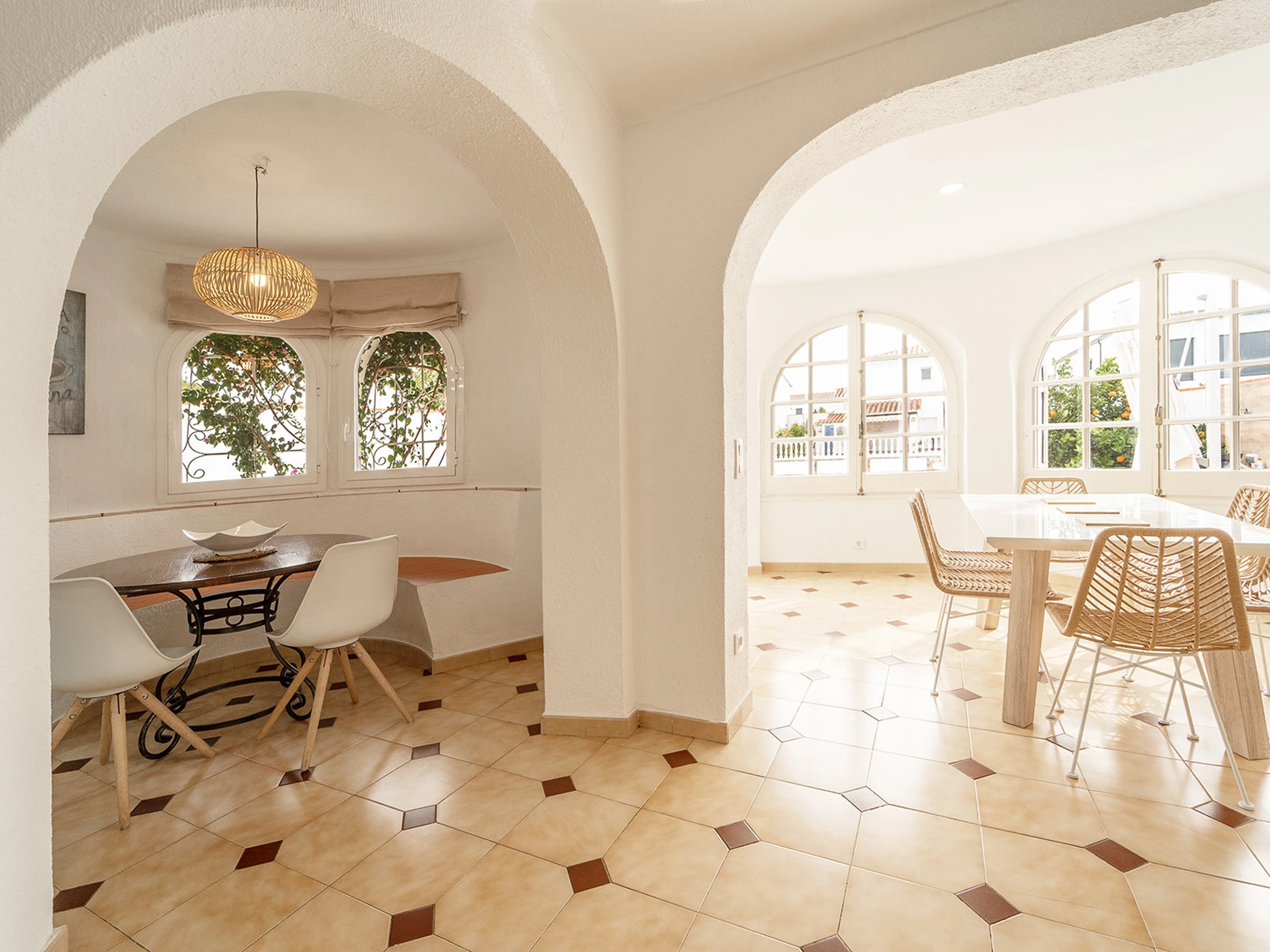 Le ofrecemos en alquiler una magnífica casa de 117 m² con piscina y vista a los famosos canales de Empuriabrava, a solo unos minutos de la playa. Esta casa, ideal para unas vacaciones con familia o amigos, está diseñada para 8 personas y cuenta con todas las comodidades necesarias para una estancia inolvidable.