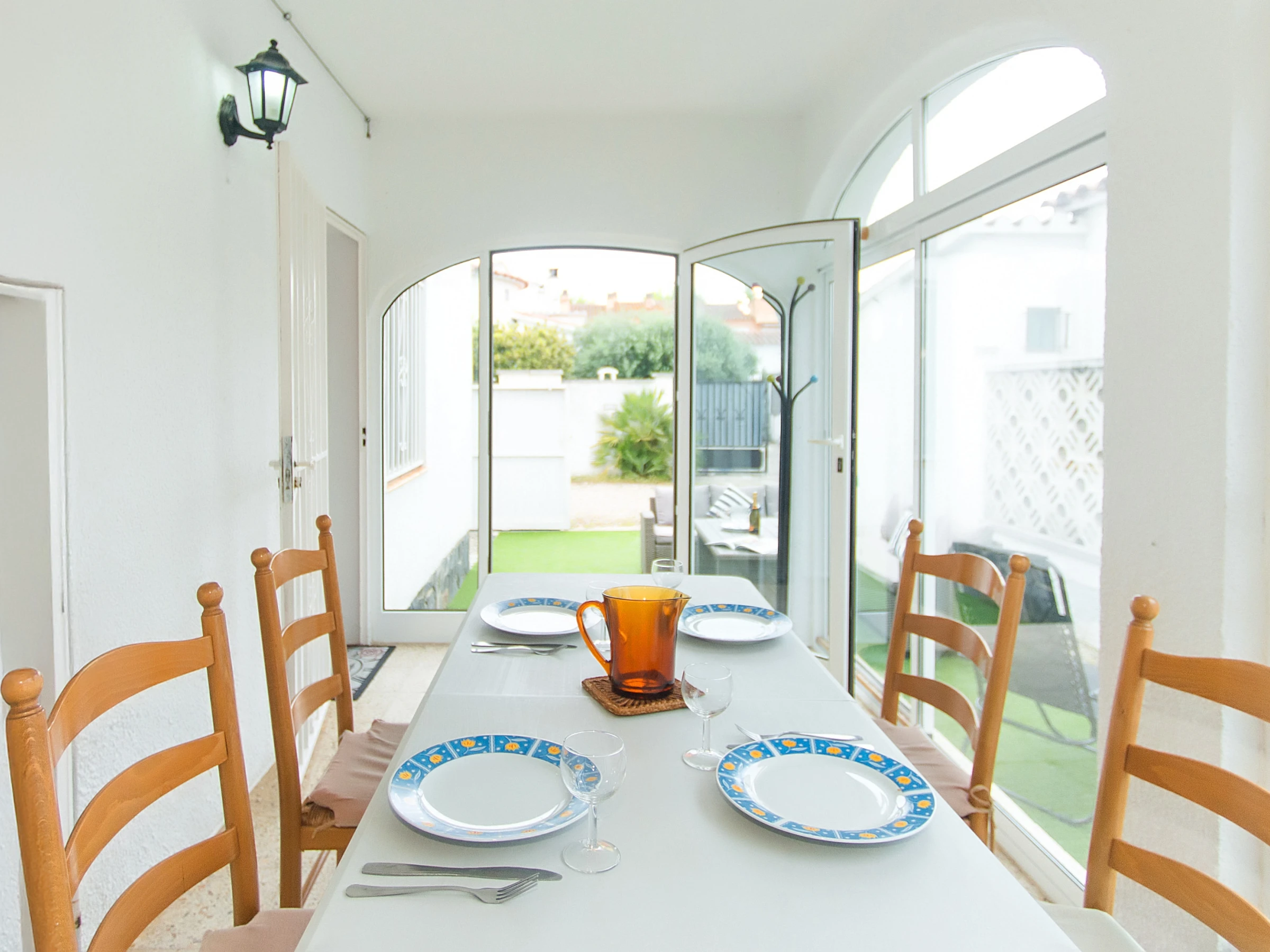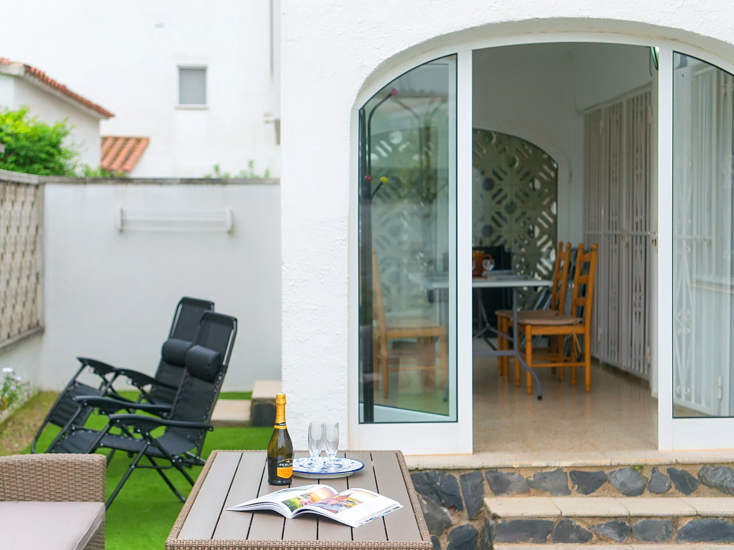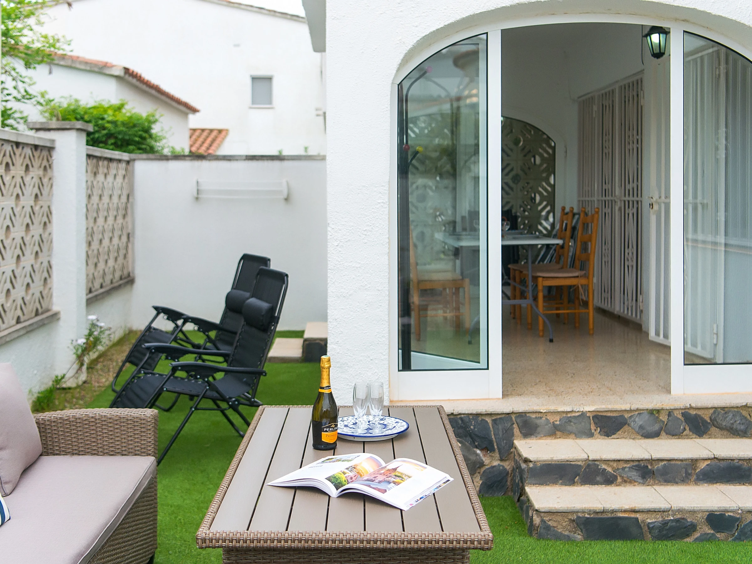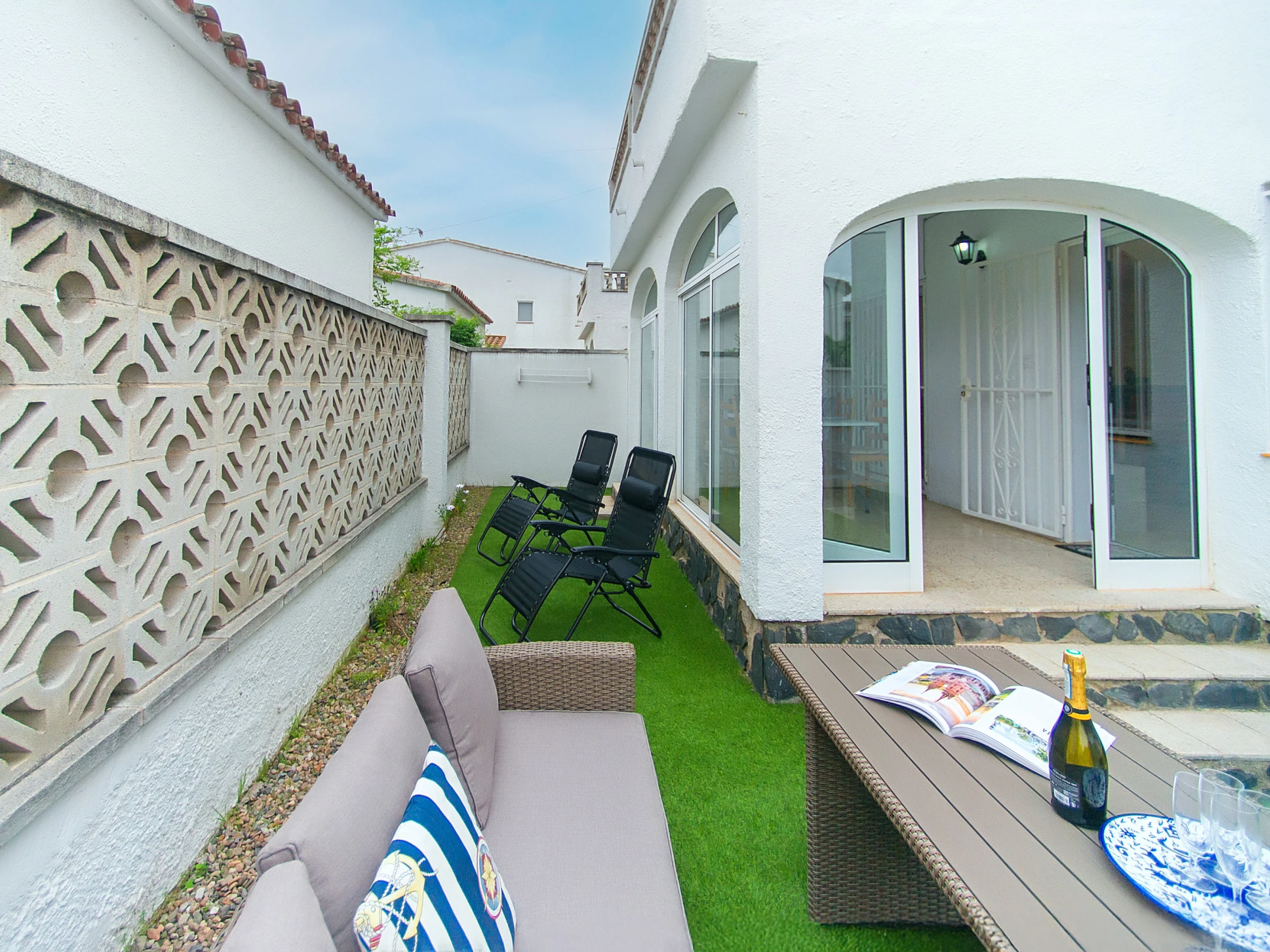 Casa amplia en Empuriabrava para hasta 5 huéspedes, ubicada a unos 10 minutos a pie de la playa. Dispone de 3 dormitorios, patio con zona exterior, WiFi, aire acondicionado en el salón y en 2 dormitorios, además de parking dentro de la propiedad. Es una opción práctica para familias o grupos pequeños.