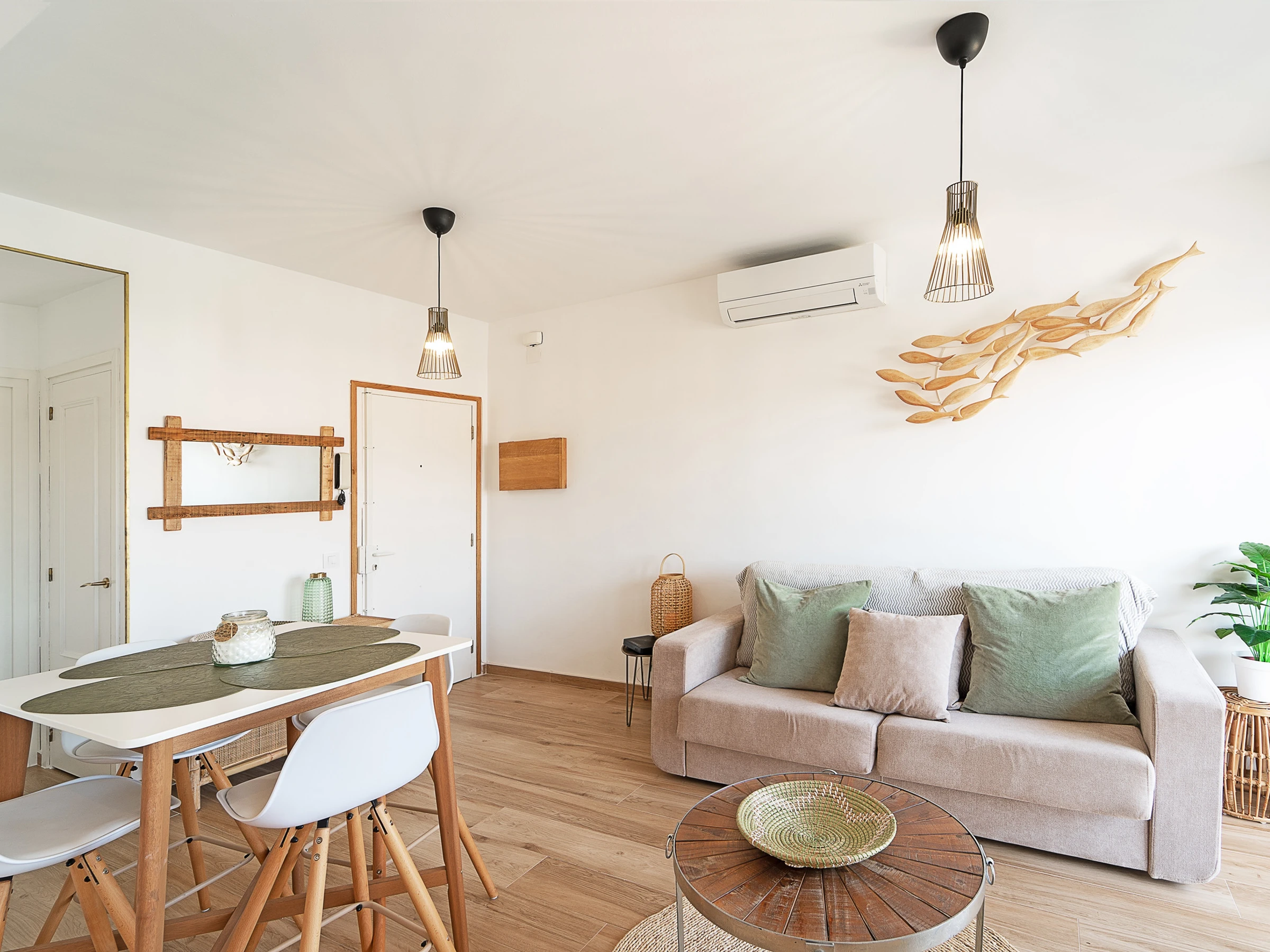Alquila un moderno apartamento en Empuriabrava, Costa Brava, ubicado en los famosos canales de Empuriabrava, ideal para unas vacaciones inolvidables. Este apartamento de 1 dormitorio (36m²) tiene capacidad para 3 personas y está completamente equipado. Cuenta con una cocina moderna con electrodomésticos completos (nevera, hervidor, vitrocerámica, horno, microondas, cafetera, tostadora). La acogedora sala de estar tiene Smart TV, aire acondicionado y acceso a una terraza perfecta para relajarse. El dormitorio incluye una cama doble y el apartamento dispone de plaza de aparcamiento privada (nº7).