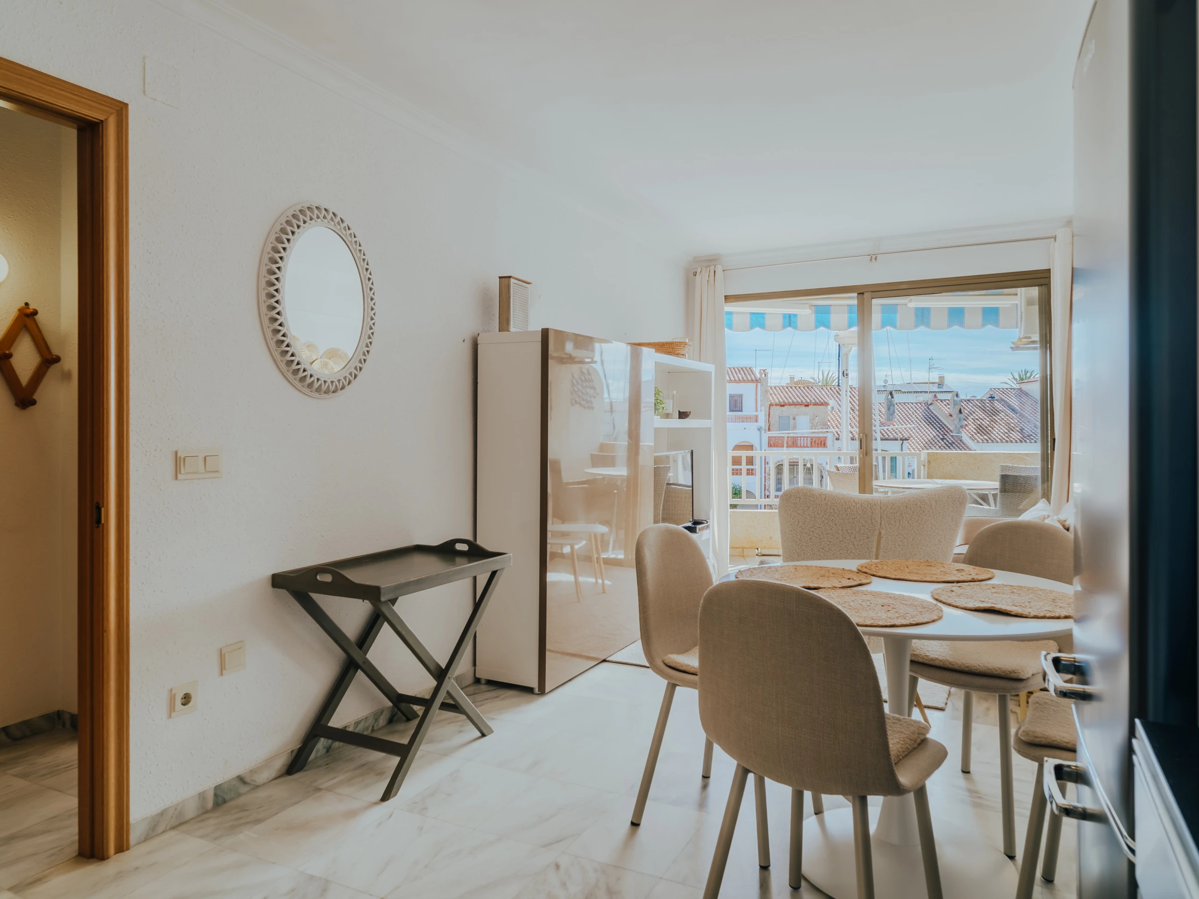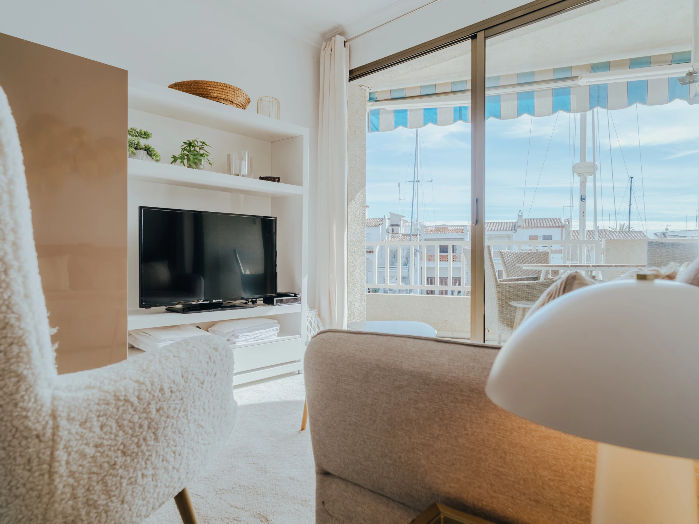 Acogedores apartamentos de 30 metros cuadrados en Empuriabrava, decorados con los colores de la cama, crean un ambiente de calidez y tranquilidad. La puerta de entrada conduce a un pequeño pasillo donde se puede dejar la ropa de abrigo y los zapatos. Inmediatamente detrás se encuentra el salón combinado con la cocina, donde cada rincón está pensado hasta el más mínimo detalle.