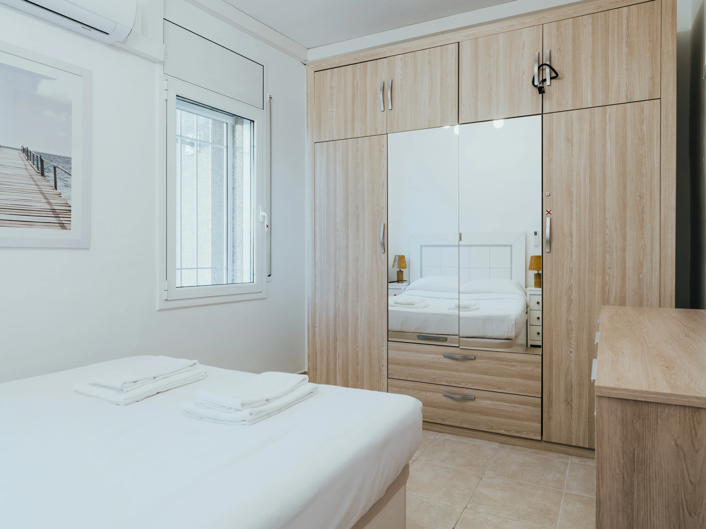 El apartamento incluye dos dormitorios con camas dobles, muebles y aire acondicionado. Además, hay un cómodo baño.
